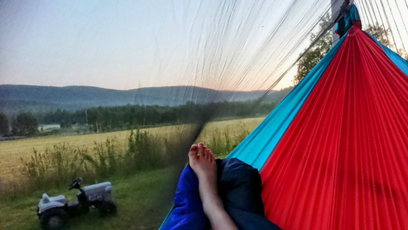 Jeg fikk hengekøye i julegave i 2018. Jeg testa ut konseptet i januar 2019. Å begynne med hengekøye i januar var kanskje ikke noe genistrek. Det ble fort både tarp og vintersovepose. Heldigvis var behovet for liggeunderlag dekket. Jeg startet med Bamse + Downmat 7, og endte opp med reinskinn og Bamse (synes Downmat bygde for mye). Til slutt investerte jeg i en billig underquilt på eBay (OneTigris). Første natta i hengekøya var det -12, andre og kaldeste natt var -18. Da hadde jeg heldigvis fått tak i vinterpose. Det verste de første nettene var å få alt til å ligge der man ville. Med flere underlag, flere soveposer, så var det litt kaos i køya til tider. Hengekøya ble flittig brukt i 2019, men så har jeg gått mer og mer tilbake til telt, og det siste året har jeg kun brukt hengekøye i nærheten av hus og hytte. De aller beste hengekøyeopplevelsene jeg har hatt, har vært de nettene om sommeren, der man ikke får sove på grunn av at det er så varmt på soverommet. For deretter henge opp køya (med myggnett!!) under åpen himmel er noe av det deiligste som finnes! Bilde: 23:55 - nesten midnattsol, garantert kokvarmt (ligger oppå soveposen). Her er det ingenting som slår hengekøye! Selv ikke en 180 cm kontinentalmadrass.. Konklusjon: Jeg kommer fremdeles til å bruke hengekøye fremover. I mindre grad enn jeg så for meg i 2019, da jeg investerte i ganske mye utstyr beregnet til køye. Noen ganger synes jeg at hengekøye er uslåelig, andre ganger er det rett og slett enklere med telt. Jeg liker tross alt best å være på snaufjellet!2 poeng
