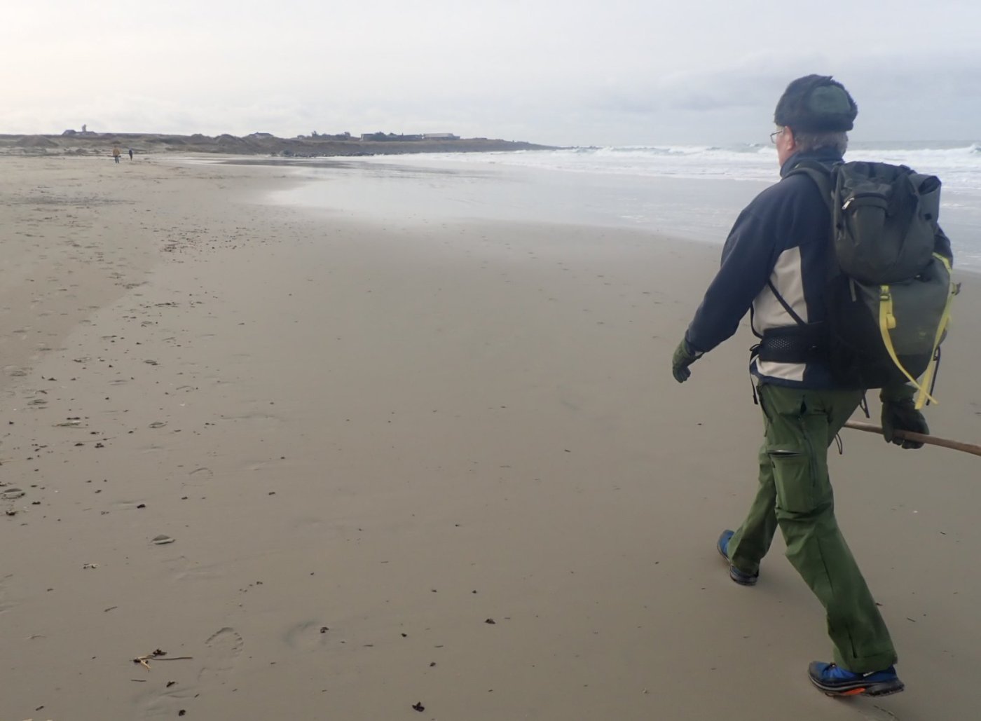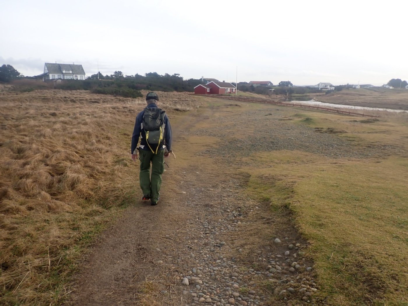Broderen var med på deler av turen. Det var en av de dagene det det fullt opp av nyheter om biler og folk som skled ut på glattisen. Hjemme var det bare så vidt varmegrader, men ikke langt vekke lurte vinteren. Det måtte igjen bli en strandtur. Når var det en stund siden broderen og jeg hadde vært på tur sammen, og jeg lurte på om det ikke ville være mulig å kombinere en tur med broderen og en litt lengre tur. Vi kunne jo ta følge et stykke. Kysten langs Jæren er lang og det er en del turmuligheter. Vi som bor i nærheten ha ikke lang vei til strand og sjø. Denne dagen foreslo jeg at vi skulle treffes på Hellestø og at vi gikk sørover. Det var meldt litt sol fra morgenen av, og gikk vi sørover ville vi få sola i ansiktet. Det er nesten like bra som å ha medvind hjemover. Det ble en sen start denne dagen. Vi hadde ikke noe spesielt program for ettermiddagen, og kunne ta en rolig morgen. Da vi kom til Hellestø, var sola alt bak et tynt slør og ute i sjøen var det en vegg av skyer. Det så likevel ut til å bli opphold på vår tur. Det er ofte mye mindre nedbør helt ende i sjøkanten enn bare noen ganske få meter lengre inne i landet. Det var ganske mange andre på tur dennedagen, selv om det var midt i uka. Andre enn oss utnyttet denne dagen på stranden, uten regn på morgenen og uten frost nær sjøen. Første «målet» var Sele havn, hvor vi vanligvis parkerer for «dagligturen» frem og tilbake til nettopp Hellestø. Det er bare 3,5 kilometer fra Hellestø til Sele, og vi fortsatte videre mot brua over «Figgen». En kilometer lengre. Her bestemte broderen seg for at det var langt nok. Han kjenner fortsatt at foten ikke er helt i orden, og har blitt rådet til å ta det rolig en stund til. For min del ble det tur ut på Borestranden og fra munningen av elva, kunne jeg se til forbi «Fuglingene» hvor jeg hadde tenkt å snu. Det er bare tre kilometer, men det virker jammen langt nok uten noe i mellom, kun sjø og strand som er flatt. Denne dagen var det helt greit å gå i sjøkanten. Sanden var fast og fin å gå på og jeg kunne holde bra fart – til meg å være. Det blir likevel ikke over seks kilometer i timen. Det ble ingen lang pause halvveis. Jeg snudde og gikk tilbake. Ved «Fuglingene» tok jeg stien innenfor sanddynene. Her er det litt – ørlite – kupert, men med gressteppet er virkelig greit å gå på. En jogger vi traff, mente dette stykke natur var skapt av «vår herre», nettopp for joggere. Nå jogger ikke jeg, men jeg tenker «vår herre» tillater at folk går også. Jeg fusket mellom Bore og Elvenes, og fulgte veien. Det er det kjappeste, og enkleste. Det tok i hvert fall ikke lange tiden før jeg igjen sto på brua og kunne ta fatt på stykket mot Sele havn og videre tilbake til Hellestø. Turen dra Hellestø til «Fuglingene» er ganske nøyaktig dobbelt så lang som fra Hellestø til Sele. Siden halve turen er litt over 7 kilometer, blir denne turen på omtrent 15 kilometer. Normalt ville 15 kilometer være en skikkelig langtur, men 15 kilometer helt uten bakker er ikke spesielt «tungt». En flott tur i sjøkanten likevel.2 poeng