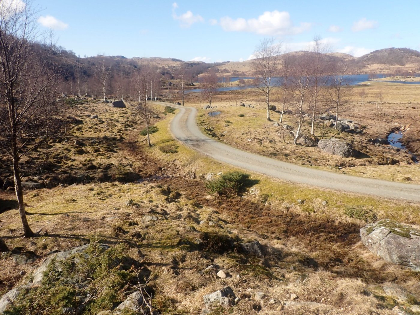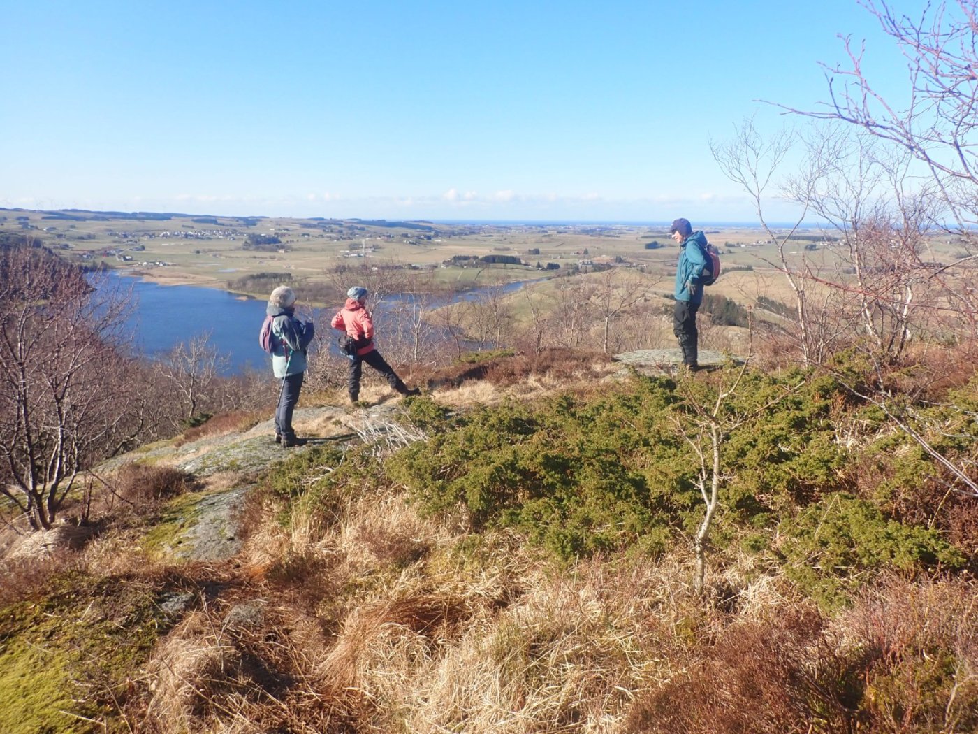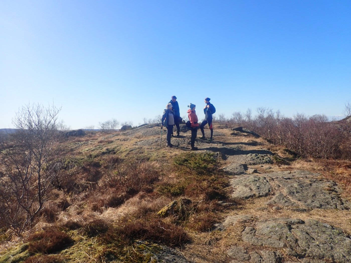 En langtur fra Sælandsskogen Bestyrerinnen ville på søndagstur, men jeg hadde tenkt meg på en litt lengre tur. Jeg så for meg å gå innom fire støler og gårder fra Sælandsskogen. Turen til Bjødnali, Ristøl, Lauvlia og «Skogen», er omtrent 13-14 kilometer og det er en del bakker opp - og ned. Da jeg nevnte dette for Bestyrerinnen, var hun straks med på planene, og vi ble enige om å ta kontakt med Sigbjørn og Anne Lise. Det hadde ikke blitt noe av den samme turen, som de skulle ha gått tidligere i uka. De ville gjerne vare med på denne søndagsturen. Vi ble enige om å ta ut tidlig, og det morgenen etter at vi hadde stilt til sommertid. Sekken ble pakket ganske kjapt på søndagsmorgen. Hjemme var det så vidt varmegrader. Vi skulle ikke langt inn i Sælandsskogen før det ble kaldt og litt frost i bakken. Nå var værmeldingen god, med sol og lite skyer, men det skulle bli litt vind. Det ville uansett være bra turvær. Sigbjørn mente vi burde ta direkte opp mot Håfjell denne gangen, og ikke gå om Stølsletta og Ragnhildsstølen. Stien rett mot toppen starter bak orienteringsskiltet. Denne stien er brattere og antakelig ikke mye kortere enn den andre. Det er en lang bakke mot toppen. Litt spesielt er det at denne stien går forbi – rett under – den egentlige toppen på Blåfjell. Øverste toppen heter Håfjell, selv om det på skiltet står Blåfjell. Selv om det var litt is i stien, kom vi oss greit opp mot toppen. Det ble noen stopp for å beundre utsikten. Det er mulig å se store deler av Jæren fra toppen av Håfjell. (men bakken opp den veien var bratt og tung.) Denne gangen tok vi ikke oppom garden på Bjødnali. Vi gikk rett opp bakkene mot Ristølnuten. Bestyrerinnen samler fortsatt poeng, og satte pris på å få med seg selve toppen – og poengene, selv om det betydde en ekstra tur på 600 meter. Det blåste på toppen, og det var skikkelig kaldt i vinden, vi var glade for å kunne ta en pause i le av huset nede ved Ristøl. Denne gangen la vi turen rett over myrene mot Lauvlia, Vi fant til og med en god plass å komme oss over piggtråden mellom Lauvlia og Ristøl. Det tok egentlig ikke lange stunden å gå fra Ristøl til Lauvlia. Oppe på heie, ble det stopp. Midt i stien lå det en stålorm. Nå hender det at huggormer kan være uten «tegning» på ryggen, men denne var mindre og hadde mørk metallisk farge. Det var ellers en grei plass å stoppe opp. Terrenget og naturen her opp i heia, er flott, og denne dagen, med sol og blå himmel, var det kjekt å se heia igjen etter en lang vinter. Denne gangen ble det tid til en liten pause ved «Skogen», før vi forsatte rundt Engjavatnet og opp mot Jærbuskaret. Det er litt kjedelig å gå veien ned mot Sjelset og videre langs ånå mot Sælandsskogen. Fra Sjelset er det to kilometer til parkeringsplassen. På god vei og sti går det kjapt. Vi brukte omtrent fem timer på turen, i et ganske bra tempo, men med noen flotte og kjekke pauser. Denne turen er virkelig en perle, og jeg vil nok ta med meg denne flere ganger i år.1 poeng