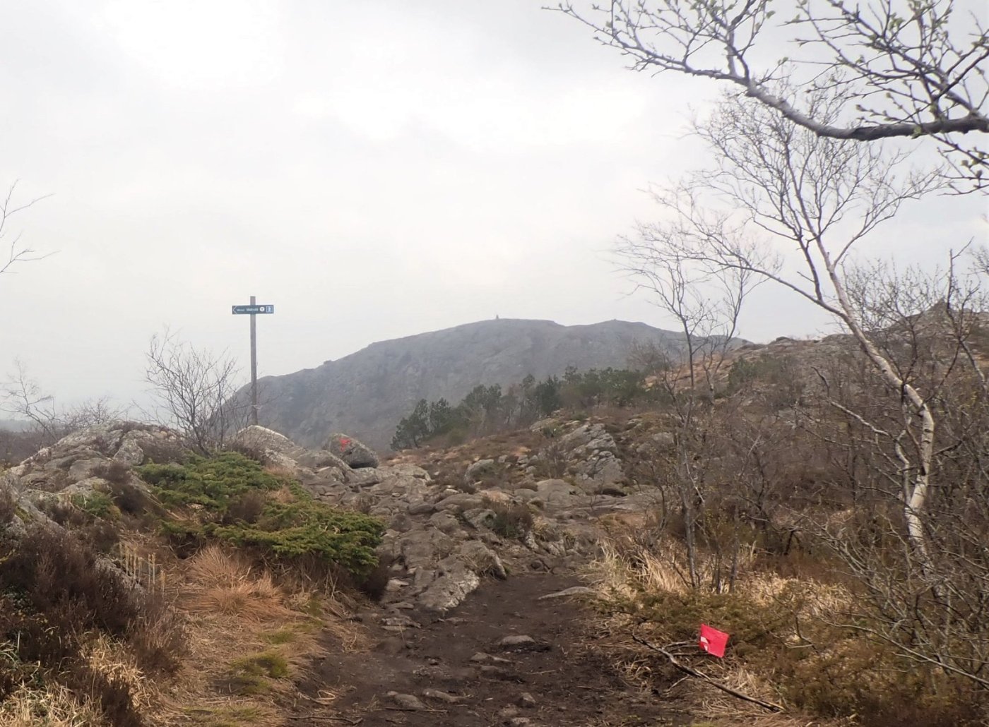 Både Bjørndalfjellet, Skjørestadfjellet og Dalsnuten på en dag. Det er ikke så veldig mange årene siden jeg første gang gikk til toppen av Bjørndalsfjellet og ned igjen til bilen. Den lille utflukten var et resultat av vonde achilleser. Etter det har turen til Bjørndalsfjellet og videre, blitt en standardtur. Den har blitt mer vanlig enn turen rundt Lifjellet. Når ble turen ganske fort utvidet til også å ta med Fjogstadnuten, og etter hvert også Mattisrudlå. De to siste årene har det blitt vanlig å gå opp Dalsnuten i tillegg. Noe som gjør turen – omtrent - like lang som turen rundt Li. Tidligere i år fant jeg på å ta over til Resasteinen og videre opp Skjørestadfjellet, før jeg tok ned om Skaret og tilbake til Revholstjørn og Gramstad. Det gjorde turen til en nesten tre-timers tur, med en god del høydemeter. Jeg mente dette lett kunne bli en ny «standard»tur, og det var på tide å ta en ny runde. Jeg pakket sekken og dro til Gramstad. Selv om det var søndag, var det langt mindre biler og folk på Gramsad enn jeg hadde ventet. Det så ut som om det var mindre folk på tur denne dagen enn lørdag. Godværet hadde tatt slutt. Det var en grå og litt trist dag, og temperaturen hadde sunket, slik at det også var kaldt. Det ble ingen tur i kortbukse og ullbluse denne dagen. Som vanlig tok jeg opp veien og stien mot Bjørndalsfjellet, men inn Bjørndalsmyra og opp mot Mattisrudlå først. Til å være søndag, var det ganske ensomt. Oppe på Mattisrudlå fant jeg det første lille røde flagget, som markerte ruta for ultraløpet. Det viste vei mot Bjørndalsfjellet, men tok av nede i bakken mot veien, og dukket ikke opp igjen før jeg var på vei oppover mot Fjogstadnuten. Da jeg tok mot Resasteinen, forsvant flaggene, og de var ikke tilbake før jeg kom til østsiden av Skjørestadfjellet. Som vanlig gikk det ikke fort opp bakkene, men etter å ha klatret opp mot Resasteinen noen ganger i det siste, så har den bakken blitt mye enklere å komme opp. Nedover mot Skaret, hadde jeg igjen følge av røde små flagg. Nede ved Restene av garden, tok jeg opp bakken og mot Sørdalsbakken og stidelet der. Det er ikke merket sti ned til stien mellom Dalsnuten og Resasteinen, men greit å finne fram. Rett før stidelet, satt det en mann og kikket mot Fjogstad og lurte på om det var mulig å komme over myra. Der har jeg gått et par ganger, og kunne fortelle at det gikk en sti fra myrkanten til veien. På vei mot Revholstjern kunne jeg se Dalsnuten foran meg. Skulle jeg prøve meg på den toppen denne gangen. Jeg var langt fra sikker på om det ville være lurt. Det hadde alt vært noen bakker både opp og ned. Det ble til at jeg tok med Dalsnuten også. Det gjorde turen til en ganske tung og lang tur på omtrent 12 kilometer og det tok meg tre og en halv time. Tilbake ved bilen, kunne jeg kjenne at det hadde vært mange timer på tur. Likevel var jeg overrasket over hvor lett det egentlig hadde gått. Bakkene gikk sent, men jeg hadde tross alt vært innom fem topper. En flott tur, men jeg er ikke sikker på om Dalsnuten blir tatt med hver gang jeg tar ut på denne rundturen.1 poeng