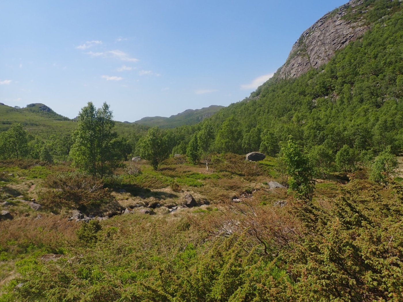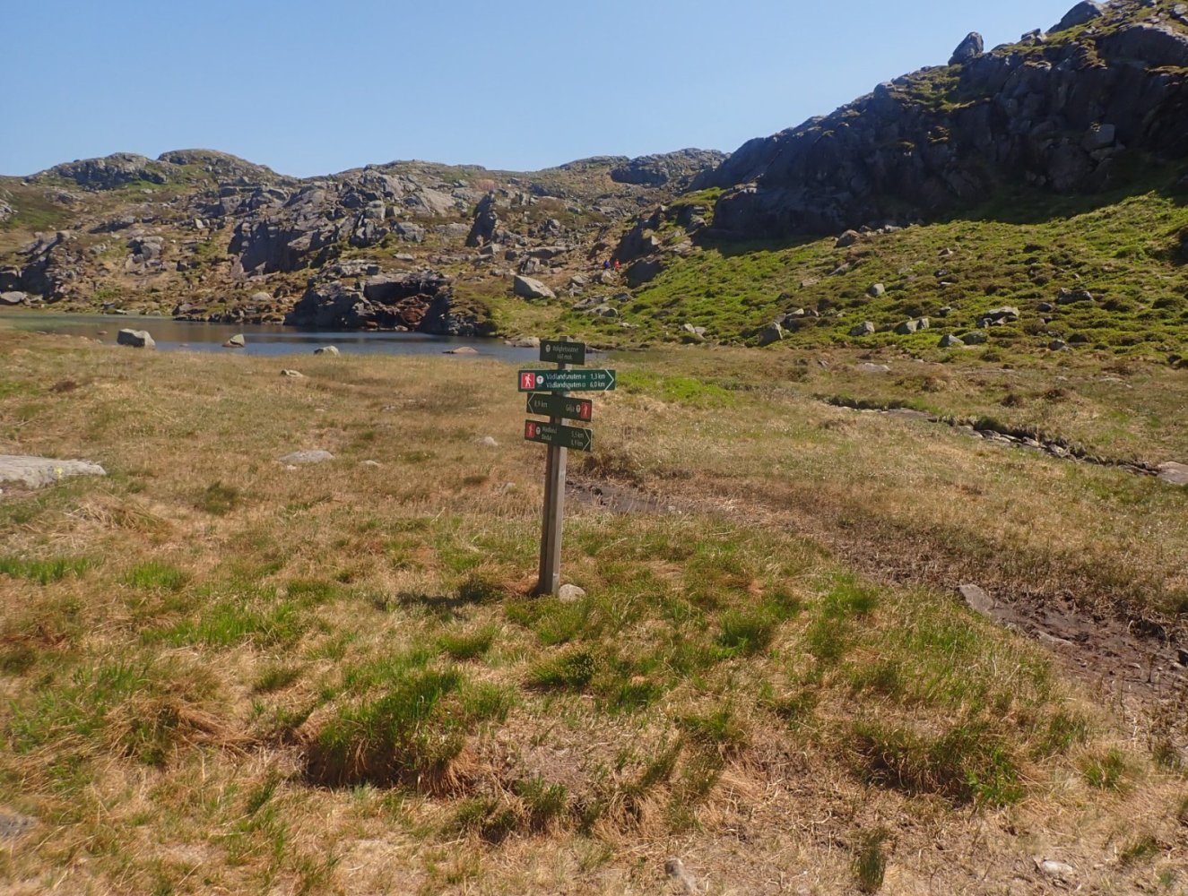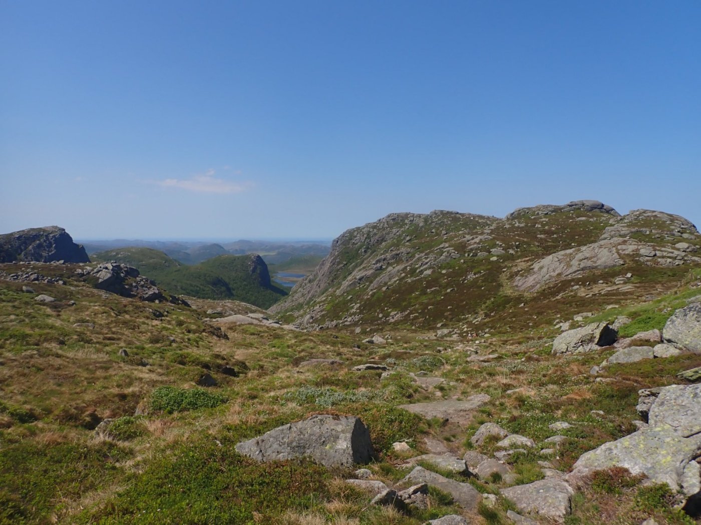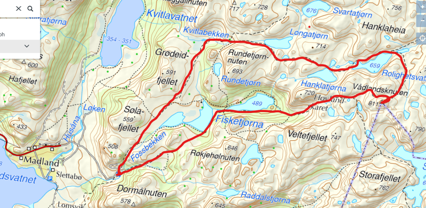 Første turen til Vådlandsnuten dette året. Fortsatt er været det aller beste for tur, og værmeldingen fremover er heller ikke dårlig. Med flott vær blir det mye tur. Likevel var planen denne søndagen nok en langtur. Til og med en tur som har vært «langtur» i ganske mange år. Nesten helt fra jeg startet å gå turer, har Vådlandsnuten vært et greit turmål. Til å begynne med holdt det å gå opp og ned. En tur på et par timer, eller helst litt mer. Det ble også til at jeg tok rundturen om Maribakken og Rolighetsvatnet før Vådlandsnuten etter hvert, og denne turen har blitt en nesten fast vårtur. En tur opp i høyden, før sesongen i heia starter. Dette året har det ikke blitt en tur opp til Vådlandnuten. Det har vært så mange andre kjekke og nesten nye turer. De «gamle» har nesten blitt glemt. Det var så avgjort tid for en tur til Vådlandnuten. Hele 802 moh, og en av de høyeste toppene nærmest sjøen. I tillegg ville jeg ta med turen ned til Rolighetsvatnet og videre til Hanklatjørnene og ned Maribakken og tilbake til bilene. Rundturen er ikke på mer enn 12 kilometer , men med 4-500 høydemeter, og i et ganske vanskelig terreng med mye stein og huller. Turen kan lett ta ganske lang tid, men alene med tørr bakke burde det gå litt kjappere enn om vi hadde vært flere i følget. Nå har Gjesdal kommune lagt sin dagturhytte til Madland. De har tatt i bruk tomta til den gamle STF hytta Fisketjønnbu, som brant for noen år siden. Dagturhytta er populær, og det ville antakelig være en del folk innover på en så pass flott dag. Det var i hvert fall mer biler på parkeringsplassen enn jeg hadde sett på mange år. Det var folk på vei oppover, men ved Fisketjønnbu kunne jeg ikke se eller høre folk. Det var flere som hadde slått opp telt rett over elva for Fisketjønnbu. Like ved siden av stien mot Vådlandsnuten. I bunn av bakken opp mot Høylandsskaret ble det en liten stopp for å smake på vannet i bekken. En tradisjonell stopp, og vannet var like godt som alltid. Rett under de siste bakkene under toppen kom det to karer i god fart. Jeg pekte på bakken rett opp mot toppen og forklarte at jeg hadde brukt å gå opp der – i gamle dager. De tok rett opp, og det så ikke ut som om pusten hindret farten. På toppen var det en god del folk. Både de to karene som hadde kommet opp den bratte veien og en del andre. Det startet tre stykker nedover mot Rolighetsdalen samtidig med meg og vi holdt sånn noenlunde følge til bilen. Det var kjekt å være tilbake på Vådlandsnuten, og det var flott å gå videre nedover mot den gamle drifteveien fra Madland til Gilja. Det er fortsatt hei her oppe. Trær og småbusker har ikke så langt etablert seg, selv om bjørka «kryper» oppover både mot Høylandsskaret og oppover i Maribakken. Det er ganske store endringer fra de første årene jeg gikk her. Som vanlig hadde det vært en virkelig flott tur. Varmen gjorde at jeg nok ikke hadde drukket nok, og da jeg først heiv innpå en halvliter, kunne jeg kjenne at gjorde godt. En flott og kjekk tur3 poeng