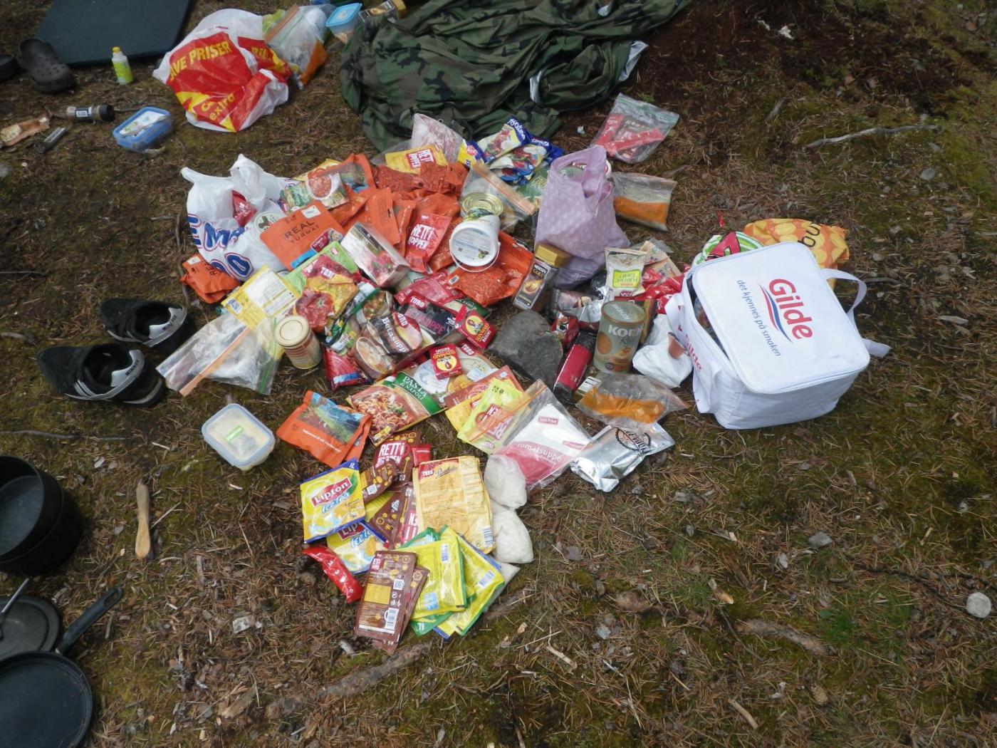 Knekkebrød og pålegg. Pannekaker stekt hjemme. Kald taco, med kjøttdeig som er stekt hjemme. Eller en av mine favoritter er forskjellige frokostblandinger med tørrmelk, nøtter og tørket frukt. Tilsett bare kaldt vann. Eller så får man tørrmat som tilberedes ved å bruke en slik varmepose i en annen pose, sammen med litt vann. Det blir ett slags vannbad. Tactical Field Meal eller hva det het igjen.1 poeng