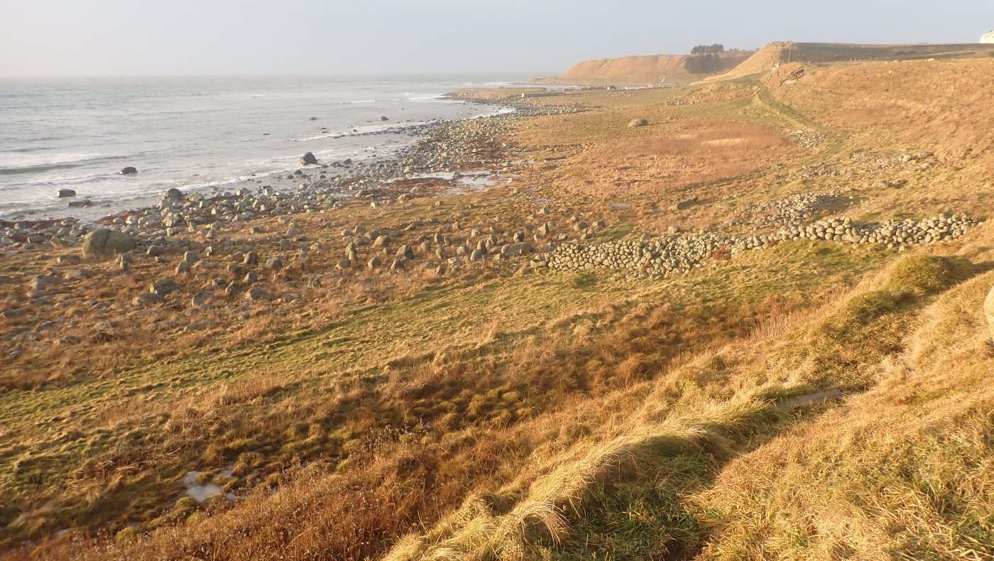 En lang tur langs Nordsjøen. Sola var bare så vidt over kanten ved Obrestad fyr, da jeg kom til Hå gamle prestegård for å gå ned til Varhaug gamle kirkegård. Antakelig samme vei som presten gikk i gamle dager. Selv om klokka var godt over elleve, var det likevel morgenlys og ,selv om sola etter hvert kom fram, så var den ikke langt over horisonten. Det er ikke mange dagene til vintersolverv, og dagen blir ikke stort kortere enn nå, og sola er omtrent på sitt laveste. Turen fra Hå til Varhaug er en vintertur, jeg bruker når det ellers er snø og is andre plasser. Nå ville det denne dagen være mulig å gå på stranden, men jeg tenkte på en litt lengre tur denne dagen. Det er nesten en mil – eller mer korrekt 9 kilometer, mellom Hå og Varhaug. 18 kilometer er en helt grei tur, som nåe er blitt en langtur. Siden turen for en stor del går litt inne i landet, innenfor stranden for det meste, så er den ikke helt uten noe opp og ned, men det er ingen skikkelige bakker. Det er lengden som gjør denne turen til en liten utfordring. Siden det er flate Jæren på innsiden, er det ikke mye forskjell på naturen. Det mangler likevel ikke på ting å se på. Fra starten så er det Hå gamle prestegård som nå er en kulturell institusjon. På vei sørover går stien under Obrestad fyr, som i seg selv er greit å ta med seg, men rundt fyret – og videre langs stranden, er det også mange «minner» fra krigen. Det er til og med et felt med «Hitlertenner» ved Kalvabuktå – rett før Komedelen. Obrestad havn er også kjent fra krigshistorien og fra sagaen. Det er rester etter båthus fra vikingtiden like ved, og i havna ligger det fortsatt fiskebåter. Det er noe å se på for de fleste. I Reimebukta er det velholdte sjøhus, men også en «stolpebu» som holder på å falle sammen. Det er snakk om restaurere denne bua, men det ser ikke ut som det vil være mulig å bruke mye av det gamle – utenom steinmuren. Det er litt synd at turen kan bli litt ødelagt av lukta fra destruksjonsanlegget på Grødaland, men det går kjapt å komme forbi, og ned mot skipsopphuggingsplassen ved Bodle og videre mot Varhaug. Sjøhusene til Varhauglosene er merket med en plakett, og det virker litt utrolig at de kunne dra ut i nordsjøen fra dette stedet. Her går bølgene ofte store. Det ble som vanlig en stopp med kapellet, med 12 sitteplasser, som har erstattet kirka. Det ble også det tradisjonelle bildet av kors mot horisonten. Denne dagen var det lyden av bølgene som fulgte meg både sørover og nordover. Det har ikke blåst spesielt mye den siste tiden, men ute i sjøen må det ha vært vind, for bølgene slo virkelig innover. Med frost i bakken og så vidt tinvær ble det sleipt i stien. Det ble litt forsiktig gåing, og noen steg utenom noen issvuller. Yr mente det ville bli lett nedbør og mye skyer. Jeg hadde ikke dråpen på meg, og store deler av turen gikk i solskinn. Hjemme var det skyet. Det ble morgen lys fra starten, og sol et stykke underveis, men mot slutten av turen – like før tre på ettermiddagen, ble det solnedgang. Det er ikke mange timene med dagslys nå, men denne dagen fikk jeg utnyttet lyset bra. Som vanlig kunne jeg kjenne at jeg hadde vært på tur da jeg nærmet meg bilen, men likevel var jeg i god form og det hadde egentlig gått lett «nedover» og tilbake. En flott vintertur, nesten uten is.3 poeng
