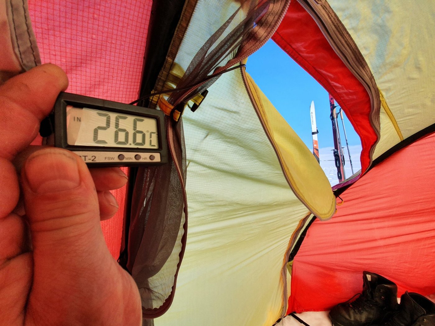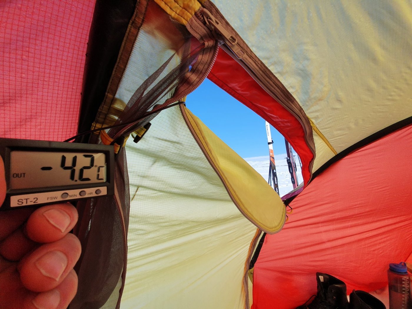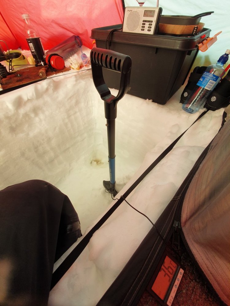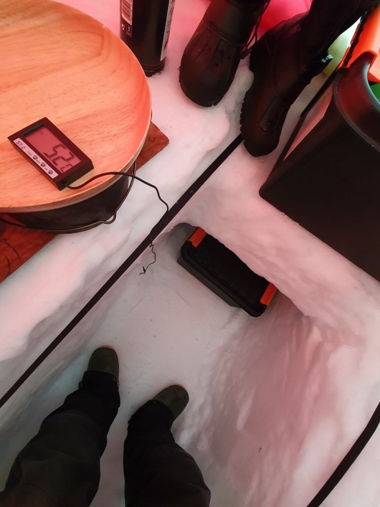 Kjært barn - en bøtte med navn. Jevnlig nevnt i forbindelse med vintertelting. Av undertegnede såpass høyt elsket at hadde det ikke vært for at det blir så mye jobb og jord så hadde vi gravd grop i forteltet også om sommeren. Mange tror kuldegropa skal gjøre at den kalde lufta forsvinner dit og at det dermed blir varmerr i selve teltet. Vi kan ikke gå god for teorien, men vi kan greit skrive under på at det er det kaldeste stedet i teltet. Spesielt på vårturene kan forskjellen være stor og vi bruker det gjerne aktivt til å holde maten kjølig. I helgen hadde vi litt tid til overs så vi tok noen "vitenskaplige kontroller" av de forskjellige antatte temperaturene i teltet da det har vært ymse diskusjoner hvor dette har vært tema. Vi fant blant annet ut: Inne i innerteltet lå temperaturen på kvelden på akseptable 10 grader mens kveldstemperaturen ute hadde sunket til -6 grader. Uten noen spesiell aktivitet enn at vi hadde en kjele på putring med finnbiff. Dvs en Primus Optimus titan Ti Lite på lett simring -> Temperaturen ved arbeidsbenk i yttertelt lå på 5,2 grader -> Nede ved matkassa lå det stabilt på omtrent 0 grader -> På morgenkvisten hadde vi koslige -4,2 grader utendørs -> Men nuh var det vesentlig færre elementer på himmelen til å bremse UV-strålene så det ble kjapt t-skjortevennlige 26 grader i ytterteltet -> Likevel hold det mer kurante 16 grader langs gulvet i innerteltet -> Nede i kjøleskpaet helt akseptable 3,6 -> Av ting som ellers er verdt å nevne så vil jeg nevne at et eller annet underlag som passer i trappa gir en ekstra ettertraktet sitteplass hvor kokken kan hvile ryggen og ta et glass rødvin mens maten er på kok. Fortsatt god vinter!!1 poeng