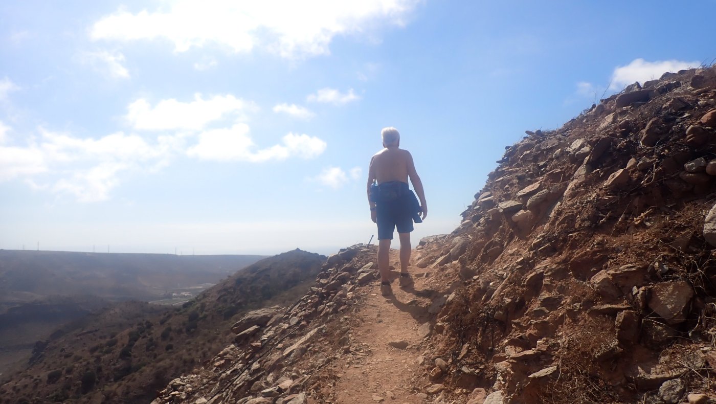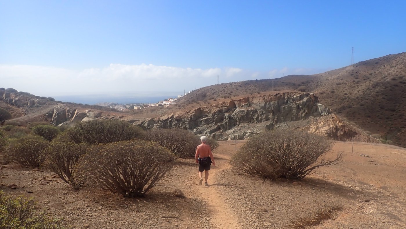 En grei langtur, med kjekk lunch. Det ble omsider til at vi satset på Miljøløypa. I ganske mange år var turen fra Norskeplassen og ned til Arguineguin på Miljøløypa den første turen vi gikk, Søndagsmorgen har Norskeklubben en tur som går enten fra Norskeplassen og til Puerto Rico eller Arguineguin. For oss passet det slik at i noen år gikk vi sammen med Norskeklubben til Arguineguin og tok i tillegg strandpromenaden og opp Balitobakken. De siste årene har vi gått samme løype på første søndag, men da på egenhånd. Dette året ble den tradisjonsrike turen først satt på programmet på torsdagen. I tillegg var det bare oss «gutta» som stillet til start ved Natural Park på morgenen. I tillegg skilte vi lag i starten. Edvin ville opp den lange bakken, mens vi tok opp den vanlige veien, opp den bratte bakken. Edvin sto og ventet på oss oppe på flaten innover mot Norskeplassen . Vi var ikke alene som var på vei innover. Det var langt flere på tur enn dagen før. Dette var en dag helt uten Calima. Vi hadde god sikt bakover på vei innover, og sola fortsatte å skinne da vi gikk nedover mot Arguineguin. En liten vind gjorde det ganske behagelig, og varmen var bare plagsom i sol, i le for vinden, Det er ikke helt lett å finne Miljøløypa, om du står på Norskeplassen og kikker gjennom porten, så begynner Miljøløypa helt øverst oppe i mot himmelen. Det går en vei der opp, men den skal bare passeres, i likhet med et vannrør på andre siden av veien. Stien gå så nedover i kanten av gjerdet. Det første stykket går stien mellom gjerdet og kanten ned mot dalen. Det er egentlig flott utsikt mot Arguineguindalen. Lengre ned går stien på toppen av åsryggen og med havet – og Arguineguin rett fram. Denne dagen måtte vi stige over to små – og søte – kattepuser. De var ikke gamle, og mjauet for oppmerksomhet – eller mat. Tydeligvis forlatt av mora ganske nylig. Vi forlot også dyra – uten å gi noe. Miljøløypa er enkel å gå, og det er ikke mulig å ta feil av veien, når du først finner stien på andre siden av åsen og gjerdet- Det tok oss omtrent en og en halvtime å gå fra Norskeplassen og ned til Arguineguin. Det er ikke mange vanskelige partier underveis, selv om det er litt bratt ned på venstre siden. Helt nede ved Arguineguin er det mulig å ta forskjellige stier, men alle ender ut på en stor slette ved siden av kanalen, hvor vi tar sykkelstien nedover langs kanalen. Det var fortsatt mye igjen av dagen, og denne gangen ble det et besøk på Norskeklubben, for rekesmørbrød og øl. Det ble en hyggelig lunch, der også den kvinnelige delen av gjengen dukket opp. For en del av oss, ble det den vanlige turen langs sjøen mot Balito og Balitobakken opp til Natural Park. Det er nesten 6 kilometer, og denne dagen ble det varmt i sola. Heldigvis forsvant sola etterhvert bak noen mørke skyer, og det gjorde antakelig at bakken opp gikk lettere enn den ellers ville ha gjort. Det ble omtrent 15-16 kilometer totalt denne dagen. På tross av en litt kjedelig tur langs sjøen, hadde det vært en virkelig flott turdag.1 poeng