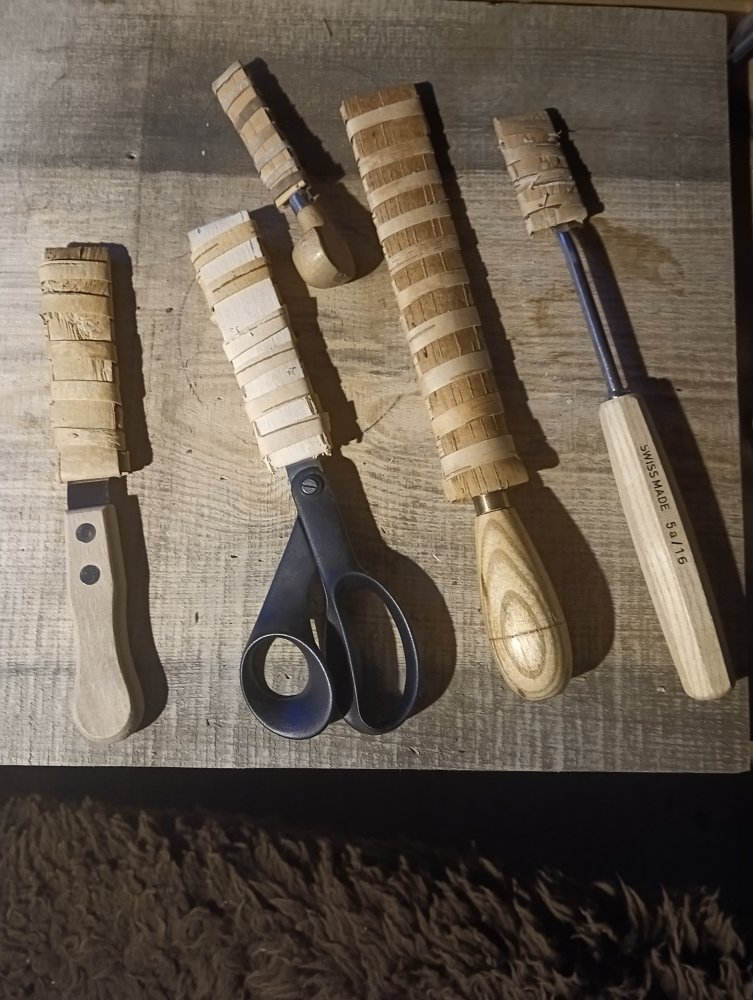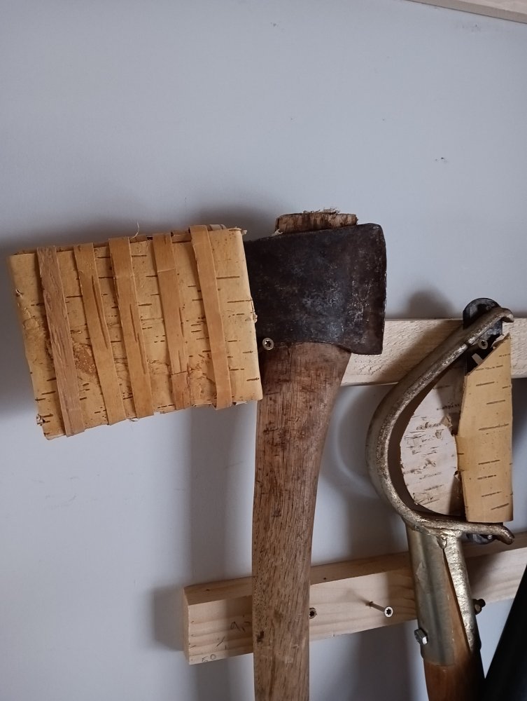 Slira til øksene har det med å gå i stykker med tiden. Landa på neverslire. Samme prinsippet bruker jeg til kniver og saks, verktøy som skjærejern, syl m.m. Ljåen fikk og ei hylse nå nylig. Da går det med en del never. Link til oppskrift der det går an å laste ned PDF fil; https://husflid.no/neverslire/1 poeng
