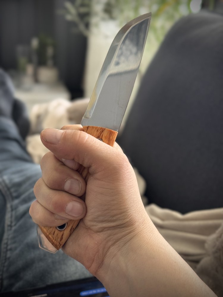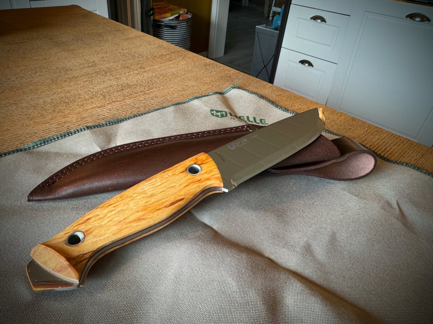 Da jar jeg fått testet Helle Utvær kniven litt vedrørende spikking og kapping av rundt 1-2 cm tykke kvister etc. Førsteinntrykket mitt når jeg åpnet esken var veldig bra. Over forventning og kniven var sylskarp rett ut av esken. Skummelt skarp faktisk. Imonerende. Håndtaket passet mine hender helt perfekt. Jeg kunne kanskje tenkt meg LITT mer markert fingervern, men ellers var den helt perfekt. Den glei gjennom greinene uten problemer. dette er sog ikke en kniv som passer til typisk hogging da den er ganske lett. Men da har jeg lappeland kniven Helle. Jeg vurderer å kjøpe Helle Mandra som minikniv. Her er noen bilder av hærligheten1 poeng