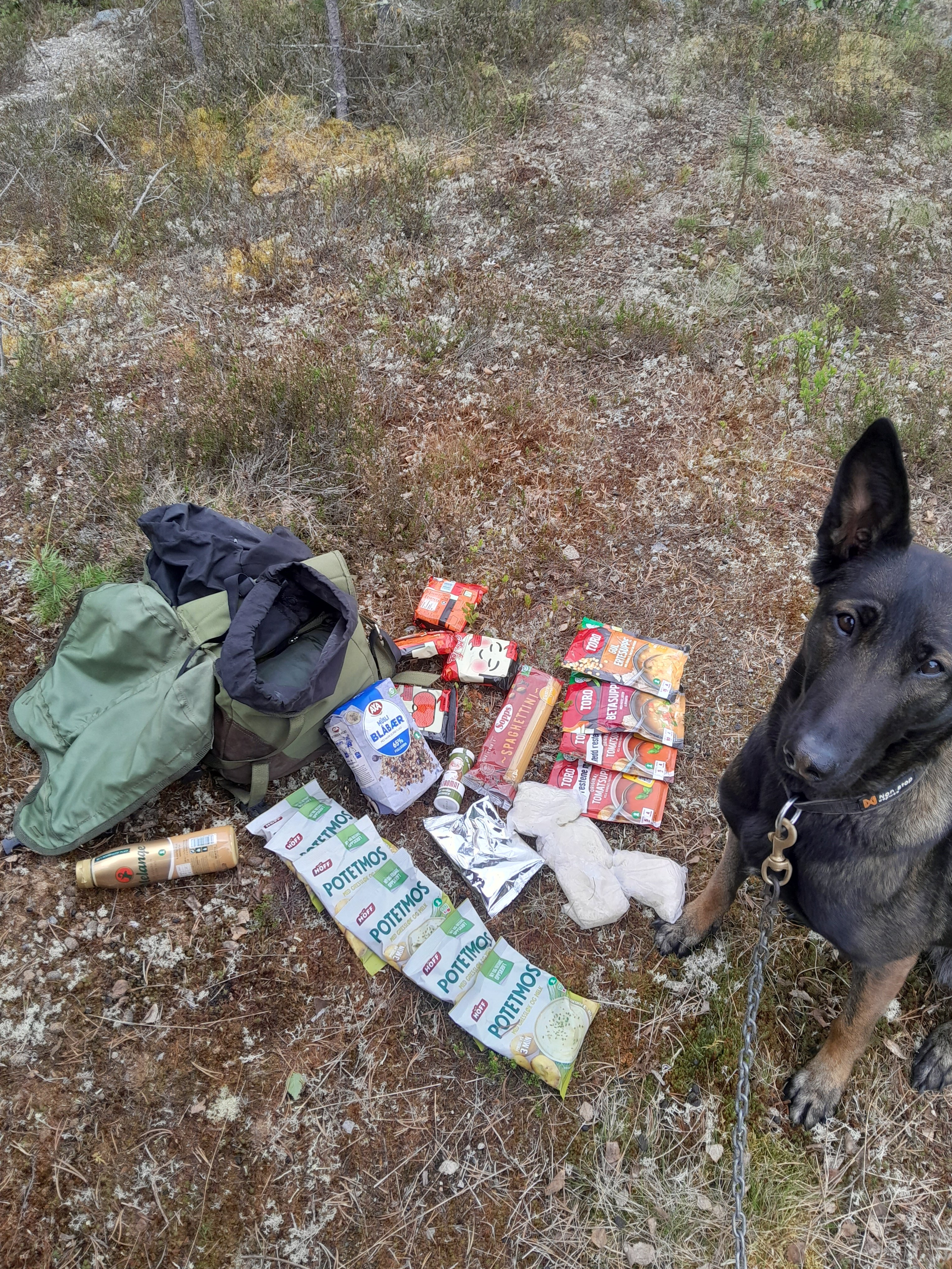 Dette teltet har god plass til meg samtidig som jeg kan ha alt av klær og ting og tang liggende ved siden av meg. Sekken havner i det ene forteltet, og sko og annet utstyr i det andre.