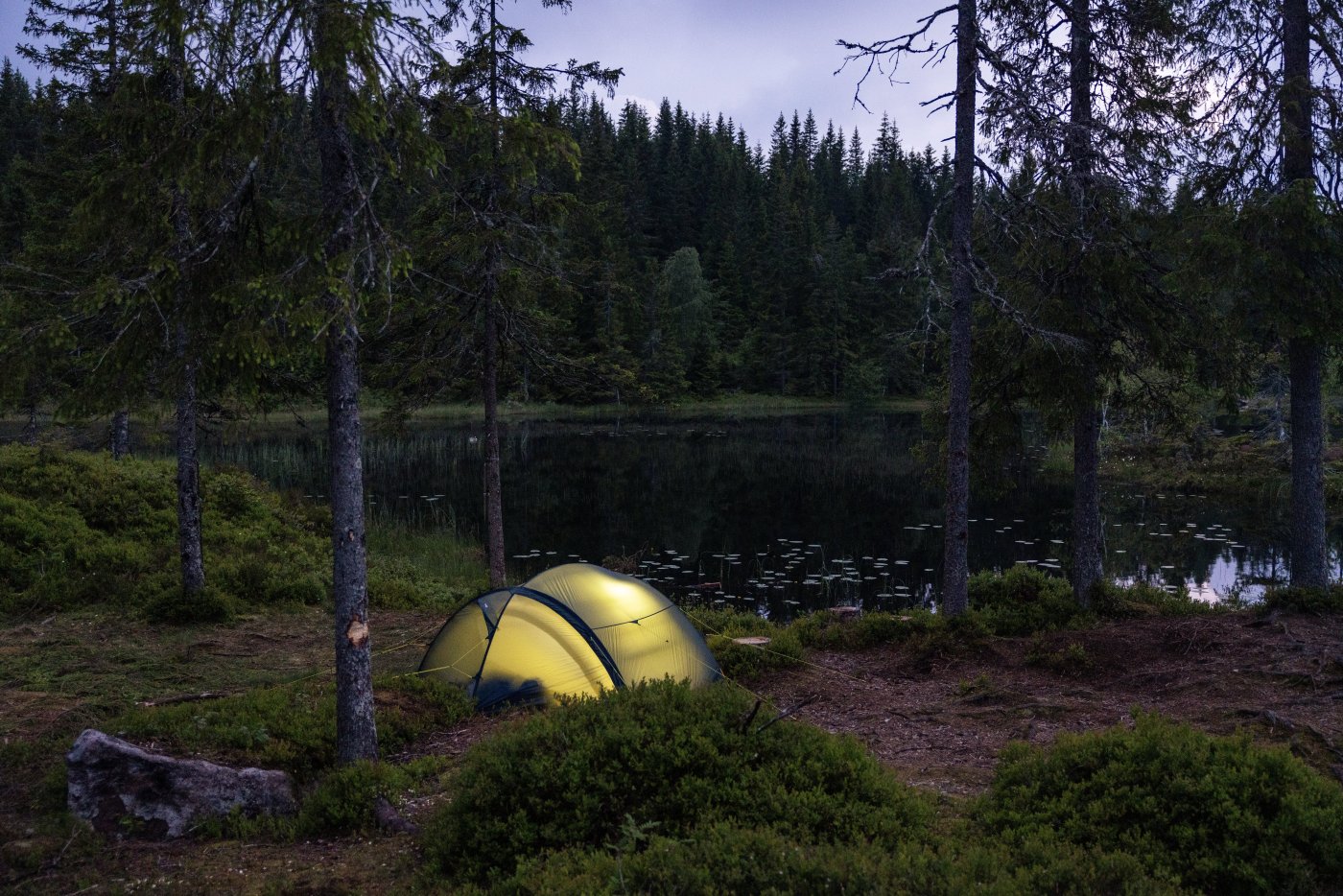 Teltet var lett å sette opp, og luftingen fremstod som god. Det var relativt bløtt der jeg slo opp teltet uten at det på noe tidspunkt ble vått i teltet. Det regnet også mer eller mindre hele natten, men det var ingen kondens å spore.