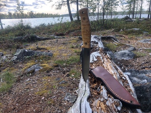 Glemte å legge fra meg telefonen før jeg dro inn i område uten dekning (Øvre Pasvik Nasjonalpark), så da kunne jeg jo alltids knips et par bilder. Men det ble lite testing av kniven der, pga skogbrannfaren. Altså, ingen bålbrenning med tilhørende splitting av ved der denne gangen . Kan dog si at den ikke ligger like godt i hånden som tidligere Nr 14 (og nr 10), da de har gjort skjefteplatene på denne utgaven en smule "slankere" på denne. Ikke vond å holde i altså, men fyller ikke hånden like godt.1 poeng