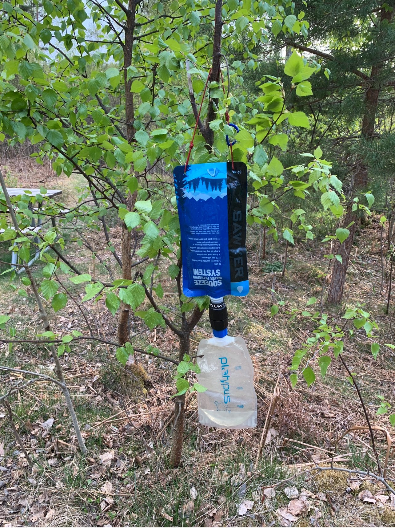 Du behøver ikke klemme i det hele tatt! Tyngekrafta gjør jobben for deg🤩. Du får kjøpt koblinger for å sette filteret inn i slangen på feks et camelbacksystem. Du bruker dette på en annen måte med en slange mellom, pluss lager et oppheng på «dirty» posen. Er filteret i god stand trengs ikke slangen heller, bare opphenget. Med slange På høyfjellet; Bruk stavene eller fiskestanga. Er det første jeg gjør ved pauser etc og da er det klart når du er gjort resten klart. Ikke noe bruk av ekstra energi, og systemet varer mye lenger.1 poeng