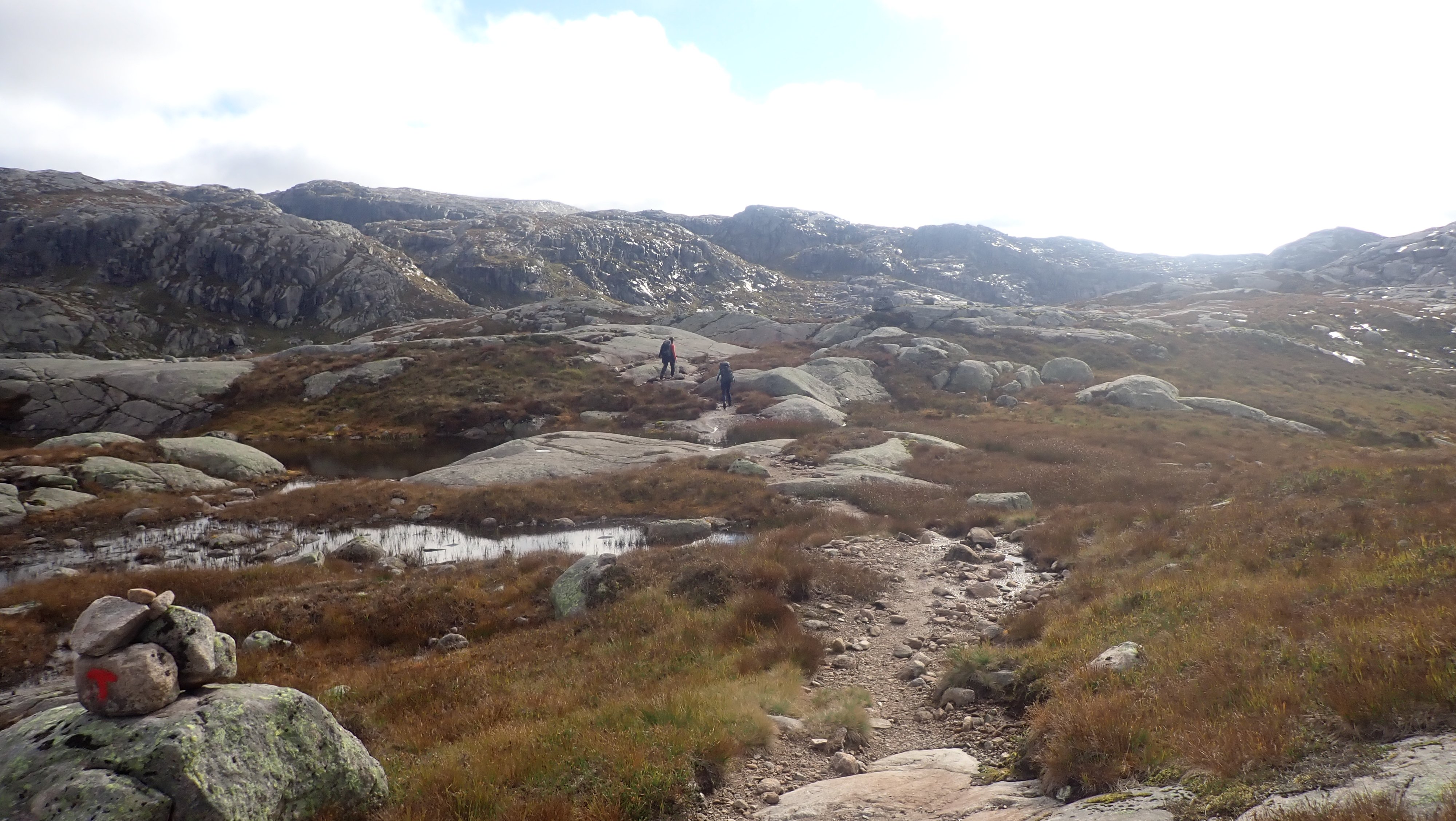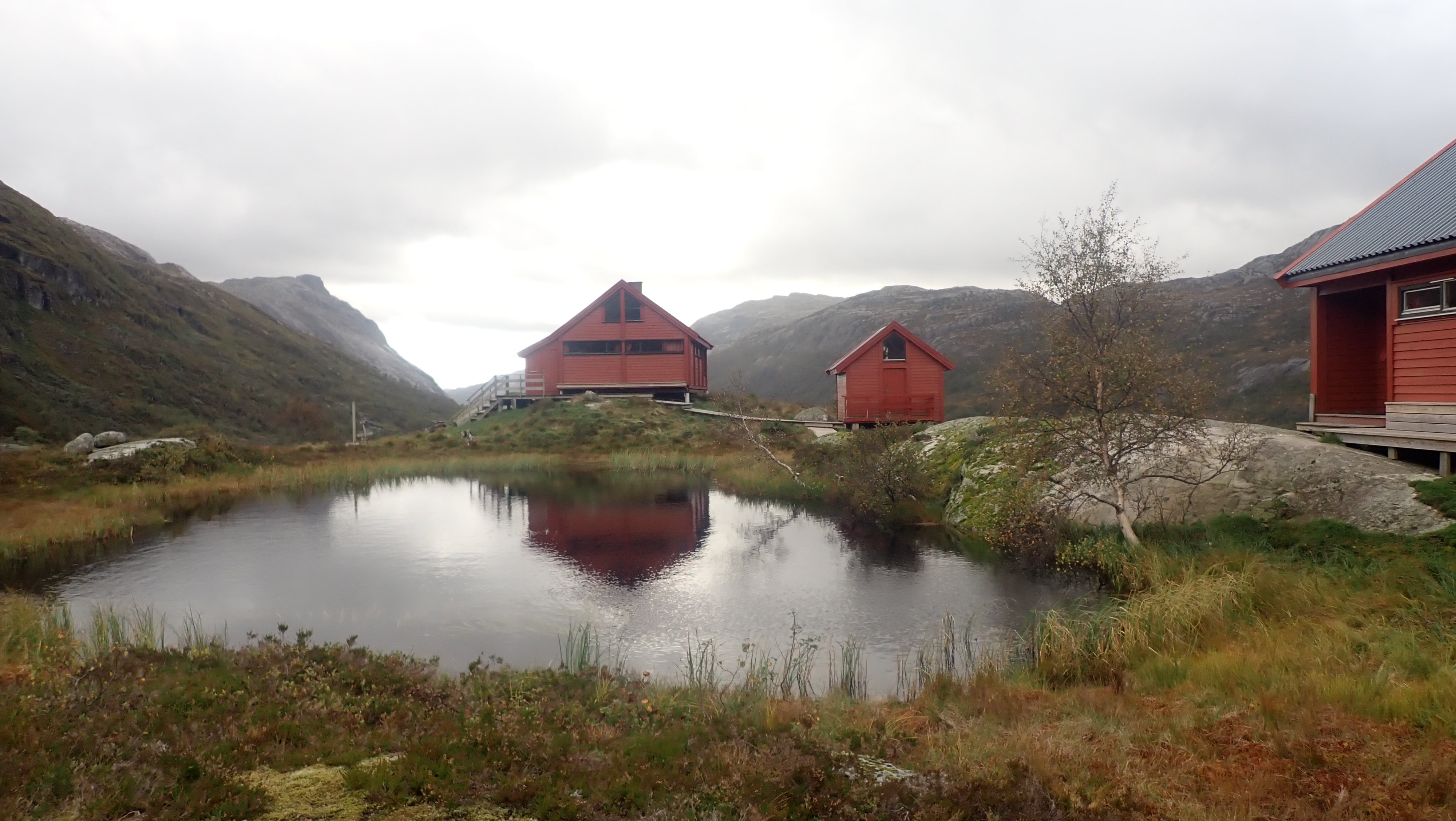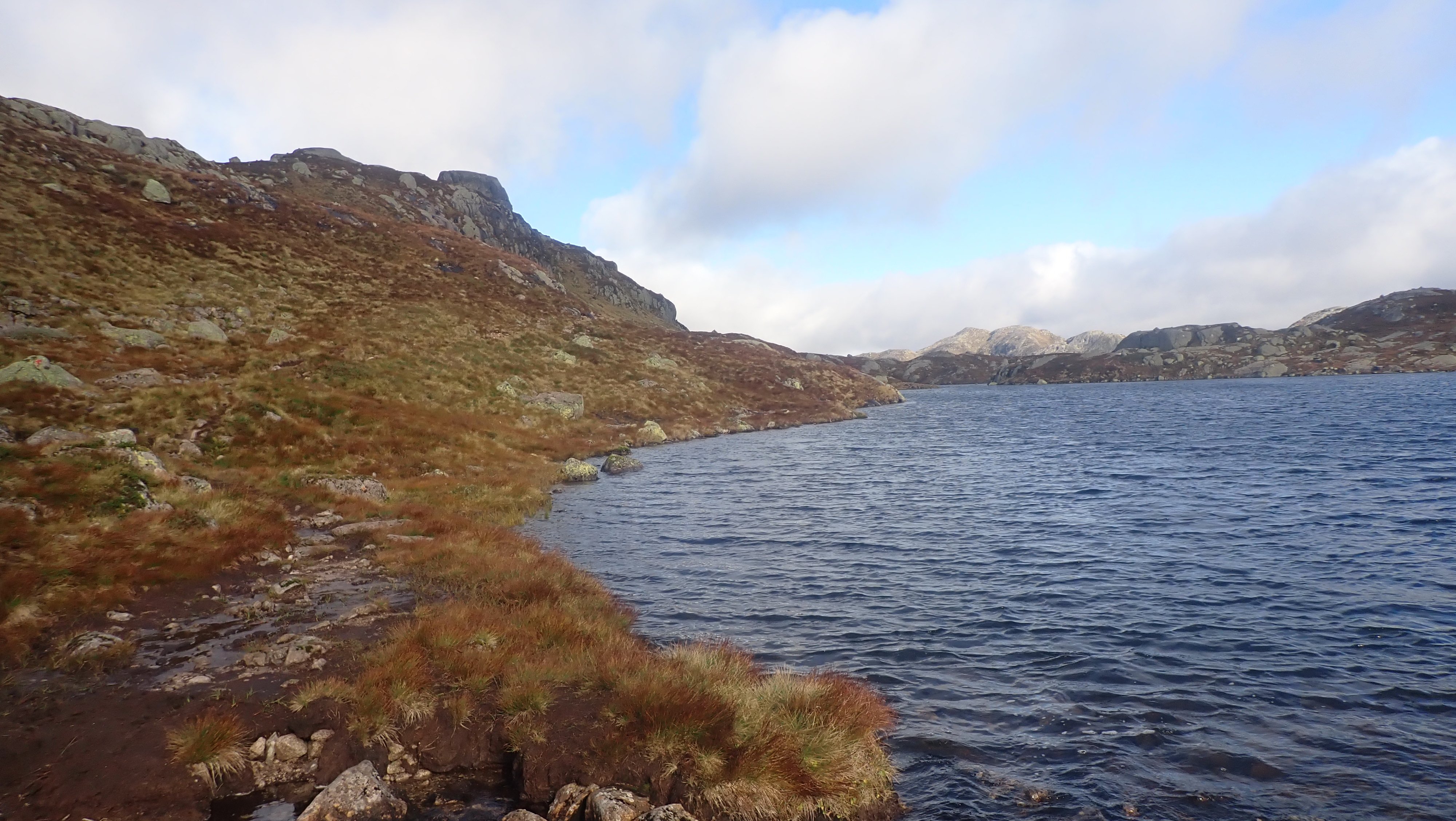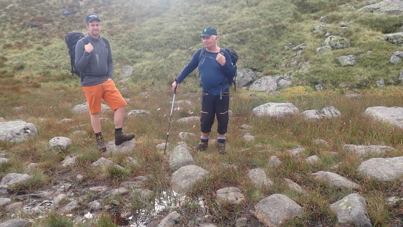 Det ble en slik tur i år også. Det begynner å bli mange år siden første gang jeg gikk innover til Blåfjellenden. Nesten 40 åt, og siden den gang har det blitt antakelig omtrent 1000 turer frem og tilbake på stien mellom Hunnedalen og Blåfjellenden. Det har alltid blitt en del overnattinger på hytta. Til å begynne med ble det to-tre netter, samt en del turer der jeg gikk frem og tilbake på dagen. Den gang, en helt grei tur på så vidt 4 timer med en god pause på hytta. De siste årene har det blitt mange turer med overnatting – og litt jobbing. Fortsatt ble det en tur eller to frem og tilbake på dagen. Etter hvert tar slike turer litt lengre tid... I fjor ble det en tur frem og tilbake på dagen. Til nå i år har jeg ikke tatt en slik tur. Den gang – i fjor – lurte jeg på om det ikke snart var siste gang jeg gjorde dette. Dette året hadde jeg ikke helt planer om en slik tur, men med nesten alle andre planlagte turer i boks, så kunne jeg muligens forsøke meg på denne en gang til. Yr og Storm var enige om at det denne dagen ville være bra vær. Det var snakk om sol, og selv om det ville være kaldt på morgenen, 4 grader ble nevnt, så ville det bli behagelig temperatur ut over dagen. Hele 16 grader var varslet. Skulle jeg prøve meg på en slik tur, var det bare å pakke sekken – lett – og ta ut. Det ble en tidlig start. Ikke mye over 8 satt jeg i bilen på vei oppover – i regn. I siste liten, det var kaldt utenfor døra hjemme, tok jeg med en lett jakke i tillegg til den lette Gore-Tex jakka. Det var meningen å legge denne igjen i bilen, men da jeg kom til parkeringsplassen var det 4 grader og vind. Jakka ble med på hele turen, både fram og tilbake, over den tynne ullblusen. Jeg måtte også finne fram et par tynne vanter, og capsen på vei over heia. Det var så pass kaldt at jeg savnet den lange under et lite øyeblikk. Nede ved hytta viste termometeret 5 grader og da var klokka omtrent 12. YR hadde nevnt 16 grader og sol. Det kom noen solglimt inne i mellom, men det ble aldri det gode været som var lovet. Det holdt seg kaldt og det blåste mer enn meldt. Det ble en ganske lang pause, hvor jeg fyrte opp i ovnen, og lukta av bjørka gjorde godt. Varm te og tørking svettevåte klær, var omtrent det jeg fikk gjort denne dagen. Godværet kom aldri og i tre-tiden tok jeg fatt på hjemveien. Oppover bakken fikk jeg til og med regn på meg. Ikke mye, og jakken ble værende i sekken. Med en mye svakere vinden bakfra, ble det en helt grei tur mot Hunnedalen. Det kom folk i mot. Hyttene på Blåfjellenden ville ikke stå tomme. Turistforeningens hytter, ville få ganske mange gjester, men det ville langt fra være fullt. Nesten nede ved Hunnedalen, gikk jeg på gamle kjente. Det var folkene på Fidjastølen som skulle inn for å prøve å få med seg flere sauer ned fra fjellet. Olav og sønnen, har jeg truffet mange ganger, og det er like hyggelig hver gang vi treffes, og får en kjekk prat om sau og hei. Litt senere kom det en kar oppover. Han skulle til stølen på Blåfjellenden, og være med på ettersankingen. Det er en jobb som betyr mange timer og mange kilometer i heia. Dette året i ganske bra vær. Onsdag var det sludd på Suleskard ikke mange kilometerne lengre nord. Vinteren er ikke langt unna. Det kan likevel bli mange flotte5 poeng