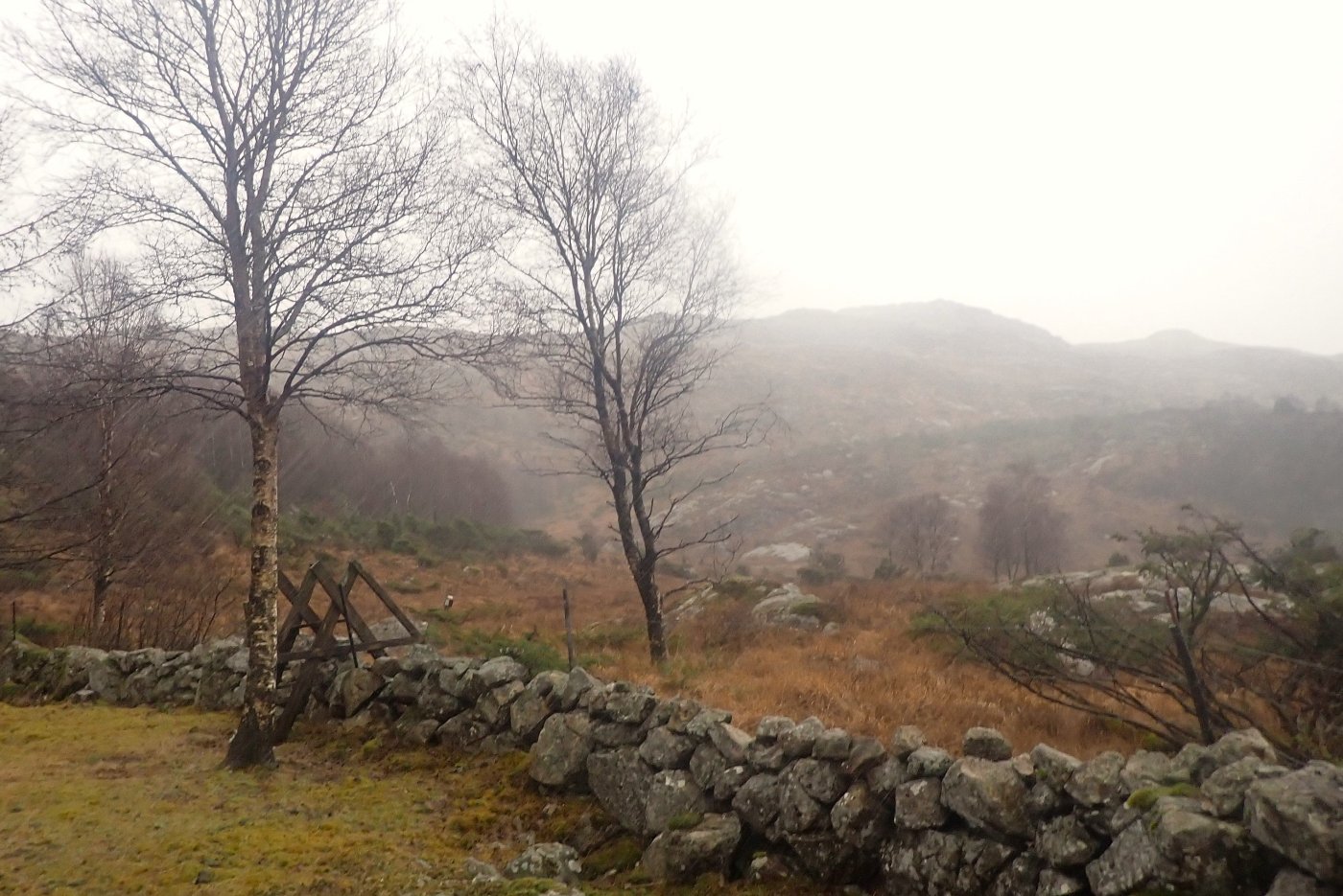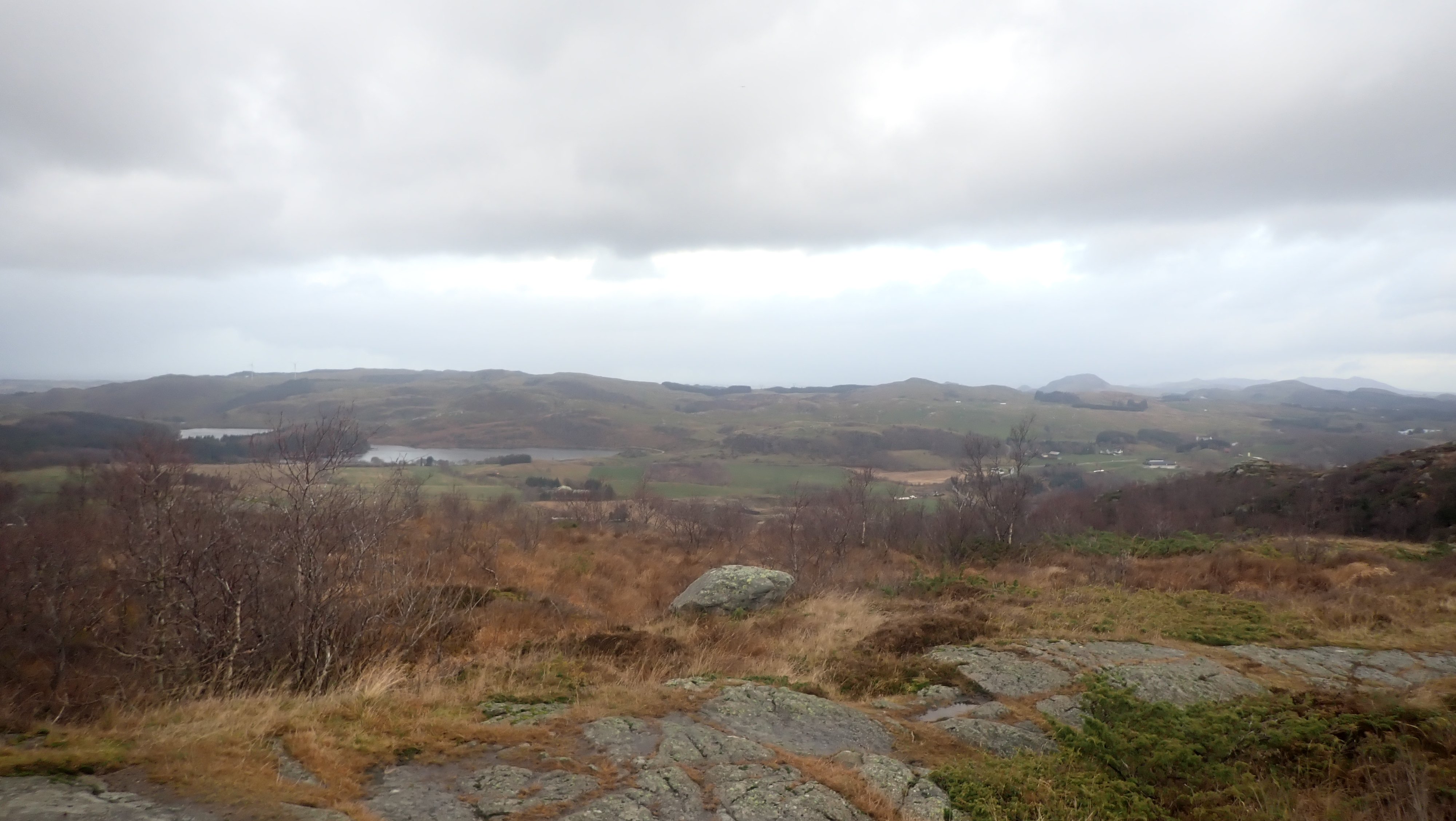 Det var likevel egentlig en grei tur. Denne dagen ble en tur i vintervær. Slik vi vanligvis har det, med temperatur så vidt over null, vind og nedbør. Det er ikke det beste turværet, og denne dagen ble det i vinterklær. Selv om det ikke helt er frost og is, så er det likevel forhold for skikkelige klær. For meg vil det si Alfa Impact sko. De bruker jeg egentlig hele året, men det er under vanskelige forhold de virkelig gjør nytten. De henger på våte steiner og vått fjell. De er vanntett selv om sålene nesten er nedslitt etter to år. Sist men ikke minst, de passer på min fot. Det finnes billigere sko, og jeg har brukt ganske mange par med Walk King. Impact gir mer «bruk» for pengene, og er på den måten «billigere» enn Walk King. Jeg bruker Recon jakke og bukse fra Norrøna. Så avgjort ikke de billigste klærne som er å få tak på, men blant de som holder lengst og som virkelig holder vind og nedbør på utsiden. Det siste er grunn til at jeg bruker disse klærne. Gjennom en del år har jeg også forsøkt andre bukser og jakker, men ender ut med å bla opp en anseelig bunke tusenlapper for å kunne bruke Recon fra Norrøna. Nå holder buksa ikke mer en omtrent et år før Gore-tex`en på lårene ikke holder vannet ute, og til det er hull nede ved anklene, der skomaljene tar borti. Det finnes «noen» som tviler på at Gore-Tex virkelig er «vanntett». De skulle ha vært med på dagens tur. Selv om det er langt fra kuldegrader så blir det «lang under» i tillegg til gore-tex buksa. Det blir uansett kaldt i regn og vind om Gore-texen ikke har et mellomlag. Nå bruker jeg noen tynne «greier» i kunstfiber – kjøpt på Sports-outlet. De duger greit nok og holder noen sesonger. På overkroppen, er det innerst alltid ull – hele året. I dagens vær ble det en «bestefartrøye», men med en tynn kunstfiber jakke som mellomlag. Jeg har forsøkt mange forskjellige ting som mellomlag. Skjorter i ull, bomull (fusj) og forskjellige syntetplagg. Jeg har endt opp med å kjøpe fem-seks like Norrøna lette jakker i kunstfiber. Denne dagen var verken ullblusen eller den tynne jakken spesielt våt av svette. Som nevnt er det Norrøna Recon jakke som gjelder i skittvær. Det er ikke lenger så ofte jeg går i dårlig vær, men dette året har det blitt noen turer der jeg har satt pris på å ha godt utstyr. Det er spesielt hetta som gjør jakken bedre enn andre i dårlig vær. Jeg har andre jakker, men der blåser hetta av om jeg går i mot vind. Det er ikke noe å satse på i ekstremvær... Når det gjelder vinterklær, så er hodeplagget viktig. Det kan lett bli kaldt om ille lua er varm. Jeg foretrekker et hodeplagg som er varmt, vindtett og tåler litt regn. Det må ha klaffer, og helst kunne beskytte kinn og hals om vind og vær slår seg virkelig vrangt. For meg betyr det en «loslue», god gammel,og etter hvert ganske slitt selv om jeg har fem seks stykker. Det eneste som da mangler er noe å ha på hendene. Jeg hat kjøpt minst 20 par med tynne syntetiske hansker på Rustad – for 10 kroner paret. Jeg har alltid minst tre par av disse med meg på tur. Blir de våte, skifter jeg til et tørt par, men i skikkelig regnvær har jeg også med et par med Gore-tex hansker. Gore-tex hanskene var med på turen denne gangen, men de ble liggende i lommen på jakken. Eller hadde jeg på alt av vinterutrustningen, og hadde bruk for det meste. Nå gikk turen for det meste godt beskyttet mot vinden og jeg var så heldig at hagelet stor sett kom bakfra. Det slo virkelig i hetta da det sto på som verst. Det ble den vanlige runden rundt Engjavatnet, og denne dagen var jeg helt alene. Det var få folk på tur og de andre holdt seg nede i skogen. Nå går turen gjennom Jærbuskaret, med utsikt ut over Jæren og med høghuset på Bryne som en sort stolpe midt i skaret. Denne dagen var vinden så pass sterk at jeg måtte kjempe mot vinden for å komme meg nedover bakken mot Sjelset. Ved Kleiva sto fortsatt revebjella og lyste. Det er ikke helt vinter. Frosten er meldt til uka.1 poeng