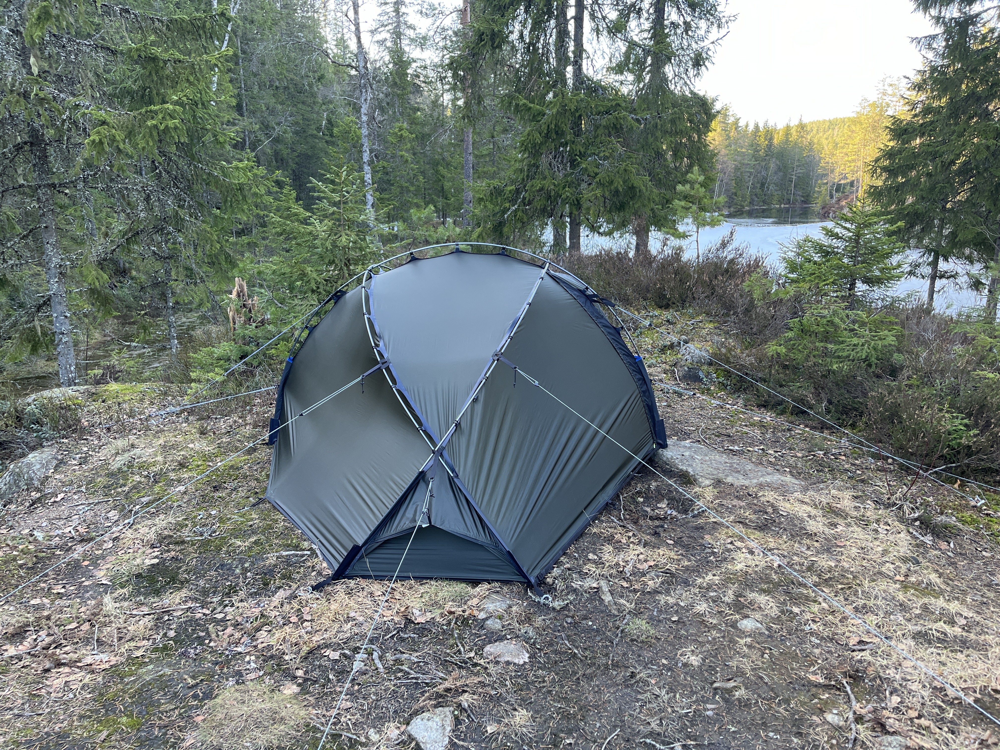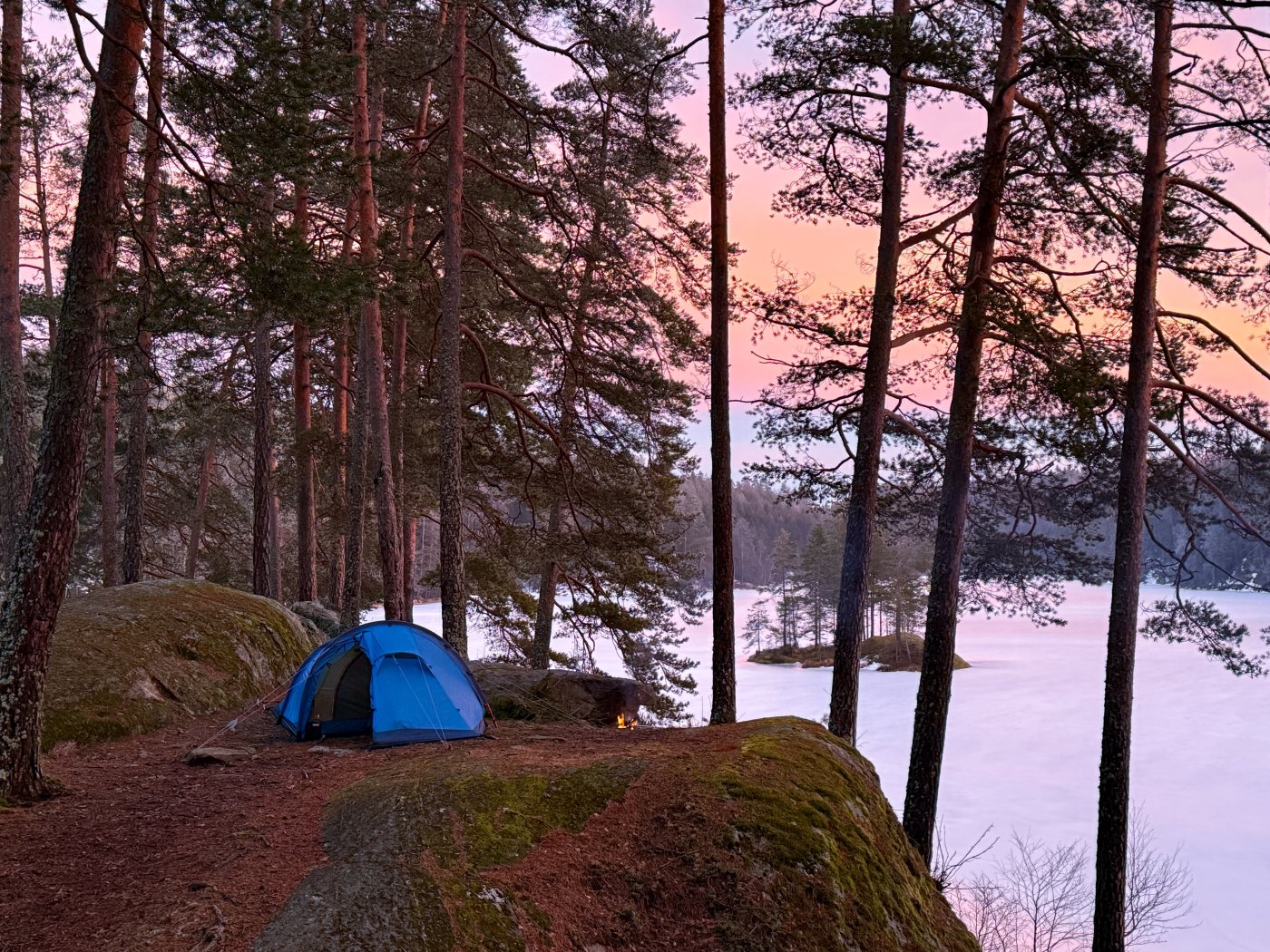 Hvis jeg ser rett, så var du på plassen jeg teltet i fjor. Det var litt ujevn bakke der, men med lite nok telt gikk det fint. Det er nok litt øvingssak å "se" en god teltplass som ikke er helt åpenbar. Generelt ved telting i marka er det vanskelig å finne perfekte teltplasser, spesielt til litt større tunneltelt. Mindre kuppeltelt er enklest. Snø kan brukes til din fordel! Da har du plutselig flat teltplass mange flere steder. Angående døde trær egnet til bål: De fleste godt etablerte teltområder i Oslomarka er så godt som kjemisk renset for det meste utenom sesongens nedfallskvist, og du må som regel lete et stykke vekk fra området for å finne noe som kan egne seg. Det gjelder å finne seg sin egne skjulte og lite besøkte plass 😅 Å bære med sin egen ved hjemmefra er uansett bare god trening ellers Jeg kan for øvrig tipse om en veldig fin plass jeg sov ved ene natten denne helgen, som jeg ikke hadde vært på før: Langvannsodden eller Langvann generelt. ~3 km å gå fra Skullerudstua. Her var det mange gode teltplassmuligheter. Antall bålplasser tilsier at dette er en mye brukt plass i barmarkssesongen, men jeg var heldig og var helt alene. Med farbar is var det en fin mulighet til å gå inn i den tette skogen over vannet for å finne bålved også.1 poeng