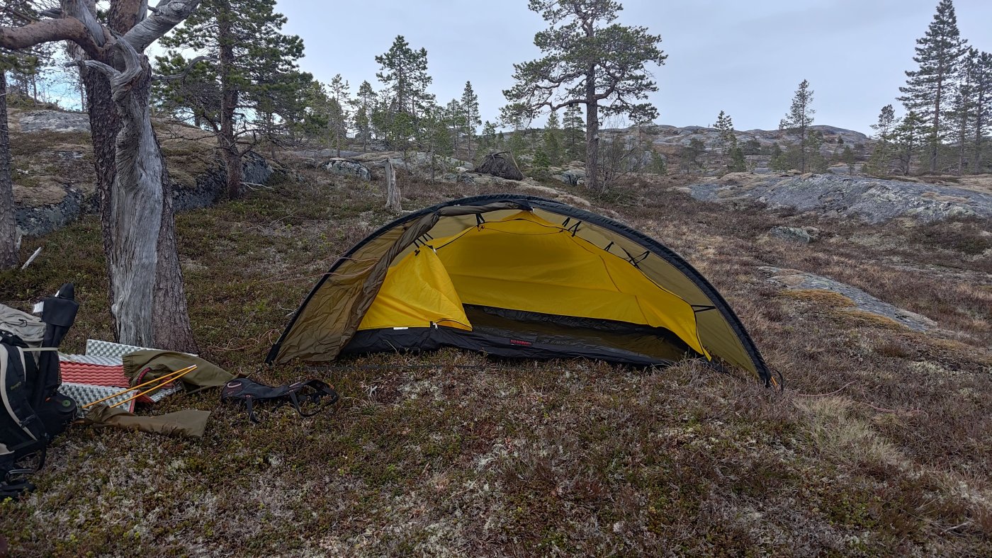 Måtte dra hjem tidligere enn planlagt på grunn av en forkjølelse, men ble noen netter ute i nærområdene mine. For de flinke kløvhundene ble det noen avslappede øyeblikk i lyngen. Hvis noen lurer på hvordan det er å slå opp et Hilleberg Unna med teltstengene fra et Allak... Jeg eier begge teltene i samme farge, så før eller siden måtte det jo skje!2 poeng