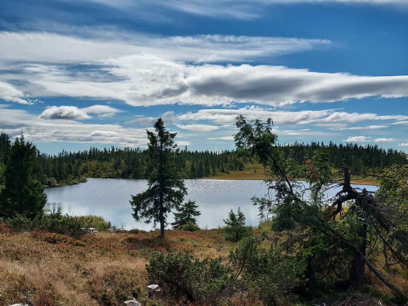 Søndagstur på Gautefall - 21. september. Kombinerte to av "løypene" jeg har gått enkeltvis der oppe denne dagen, så ble lang tur, da man hadde god tid. Satt og av tid til litt avslapping, ro og middag. 6,5 t / 25km. Første tur og test av ny dagstursekk. Kjekt med sekk med hoftebelte, når man skal gå fort og langt med litt vekt i sekken over tid. De to andre dagstursekkene, på 9l og 15l, uten hoftebelte merkes godt på nakke og skuldre etter en del timer på tur om de veier litt for mye. Denne på 26l passer perfekt til dager der man må både kunne pakke genser og jakke, slik som på senhøsten, samt ha plass til utstyr for å lage mat. Reinsvatn og Reinsvassnuten i bakgrunnen:7 poeng
