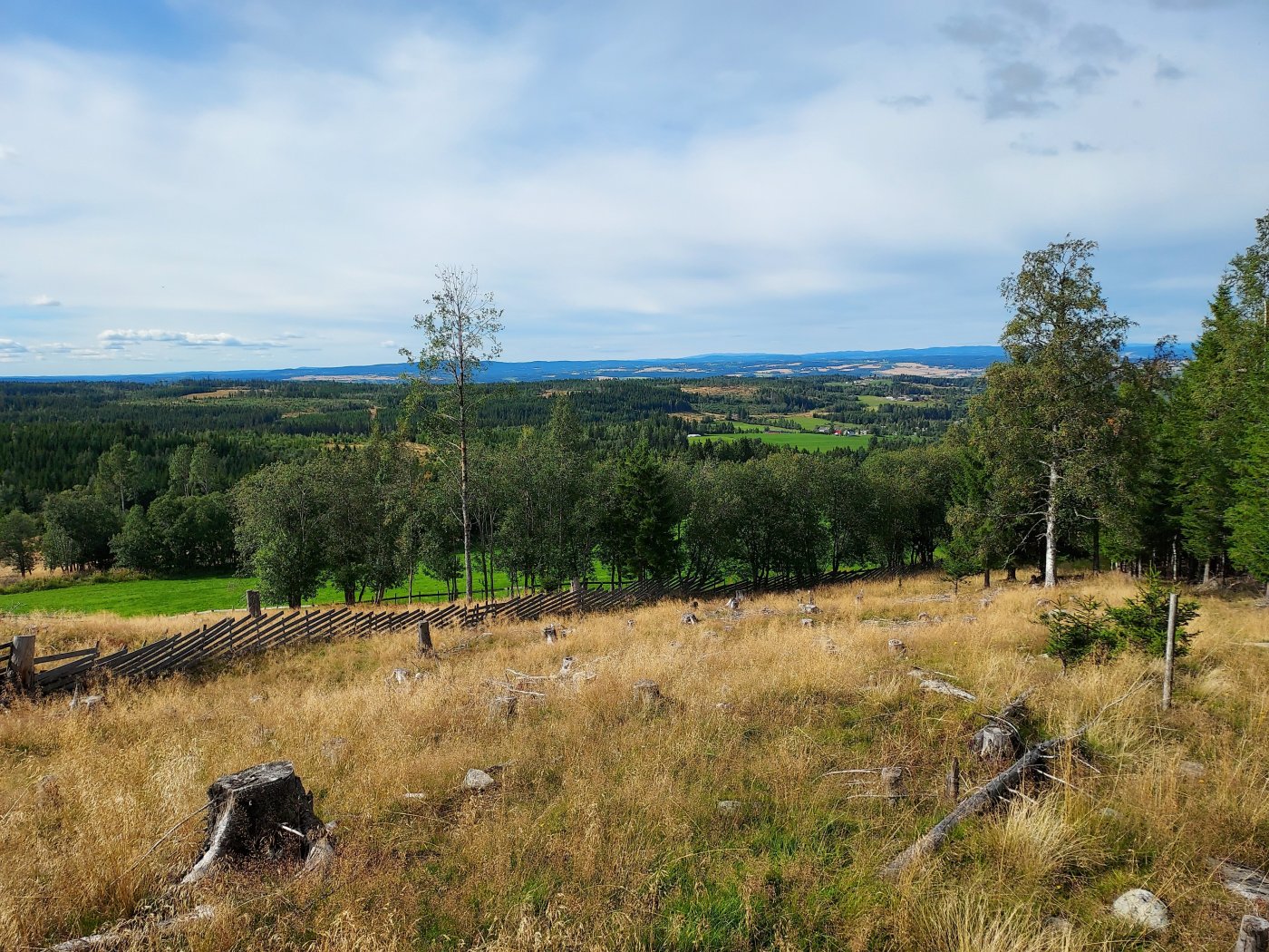 For tida er jeg stasjonert på Starum ved Gjøvik i forbindelse med et kurs i Sivilforsvaret. I dag gikk derfor ferden inn i de totenske skoger, og Rausteinhytta. Vi startet å gå fra Skjeppsjødammen (for dere lokalkjente). Starten av turen gikk gjennom et område med hogstfelt og kultivert granskog, men jo høyere vi kom, jo mer "natulig" ble skogen. Utsikt mot Mjøsa og Hamar i det fjerne. Når vi kom inn i Torsæterkampen naturreservat ble skogen veldig spennende, og "trolsk", som ei i turfølget så fint kalte det. Det var mange stier på kryss og tvers i området, men hovedstiene var godt merket. Oppe på Torsæterkampen åpnet landskapet seg mer, med myrer sammen med en mer glissen skog ble det litt mer luftig. Oppe ved Rausteinhytta lå det et lite tjern, som også åpnet opp landskapet. Rausteinhytta. Ikke akkurat den typen DNT-hytter jeg er vant med oppe i nord. Returen til Kronborgsætra var ikke like naturskjønn. Enda mer kultivert skog, hogstflater, og hytter. Litt flere beitedyr, var jo litt trivelig å snakke med. Mot slutten var det mye beitemark og åkre. Finfin tur i et skogsområde på Toten. Jeg må innrømme at forventningene var lave, men at jeg måtte bite i det sure eple og tilstå at det var litt fint på toppen.1 poeng