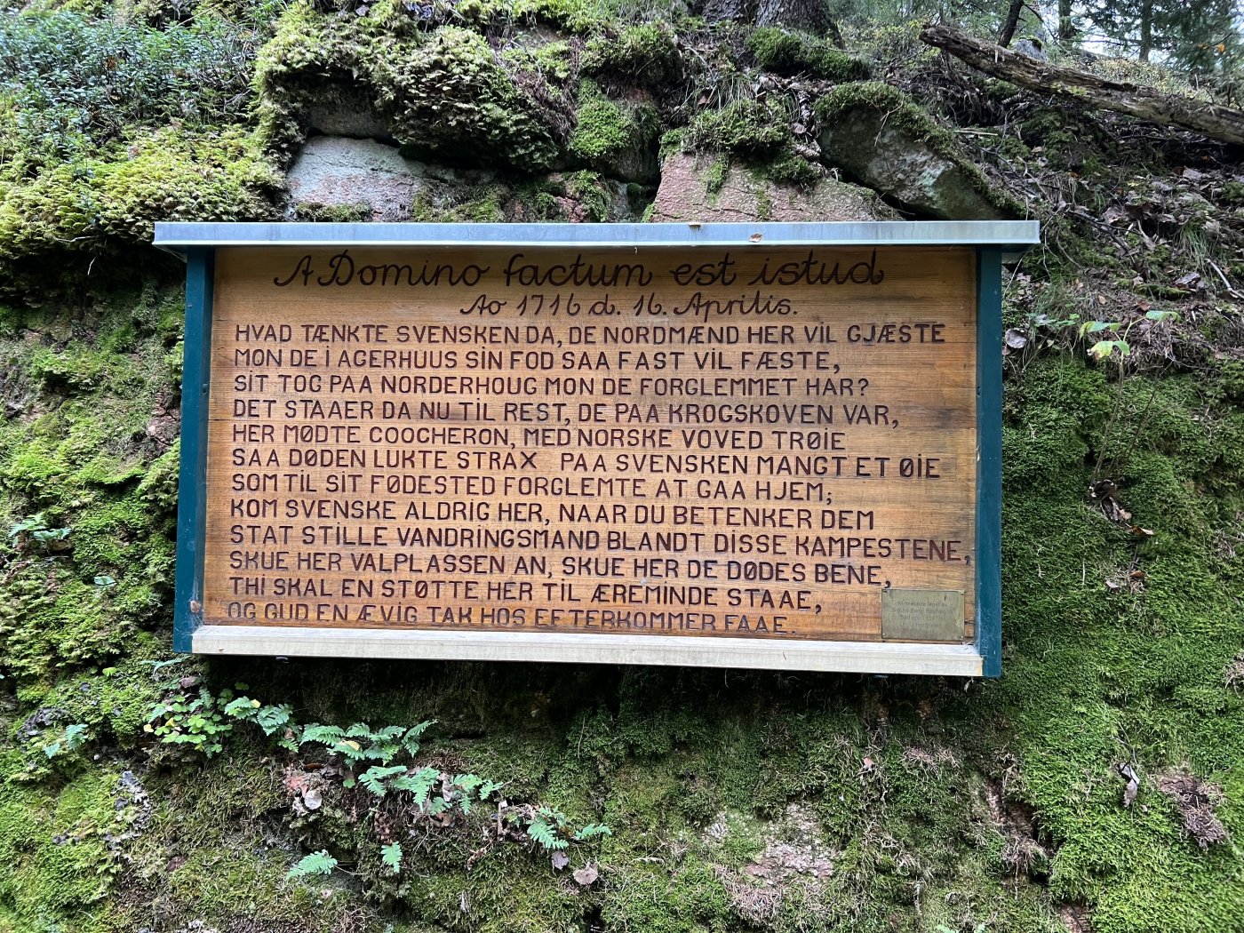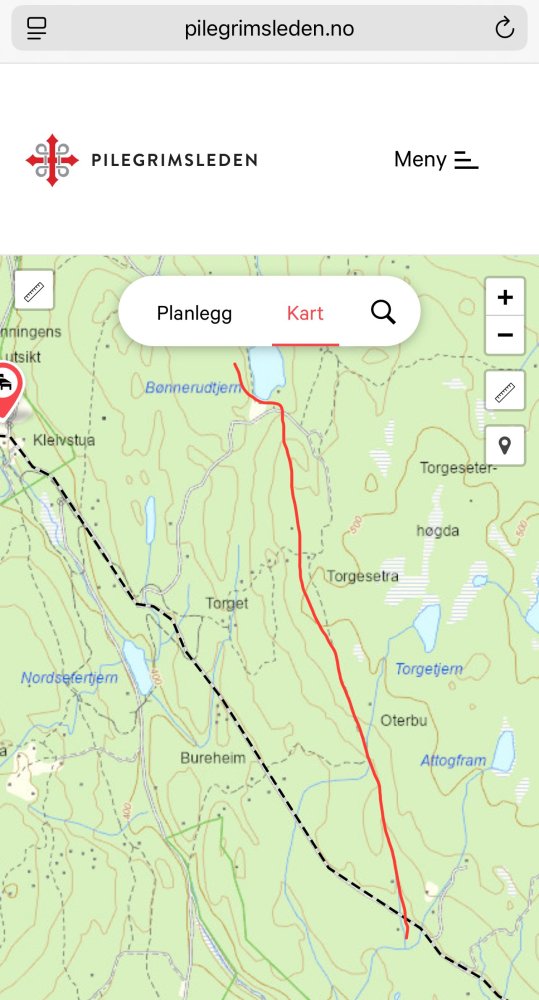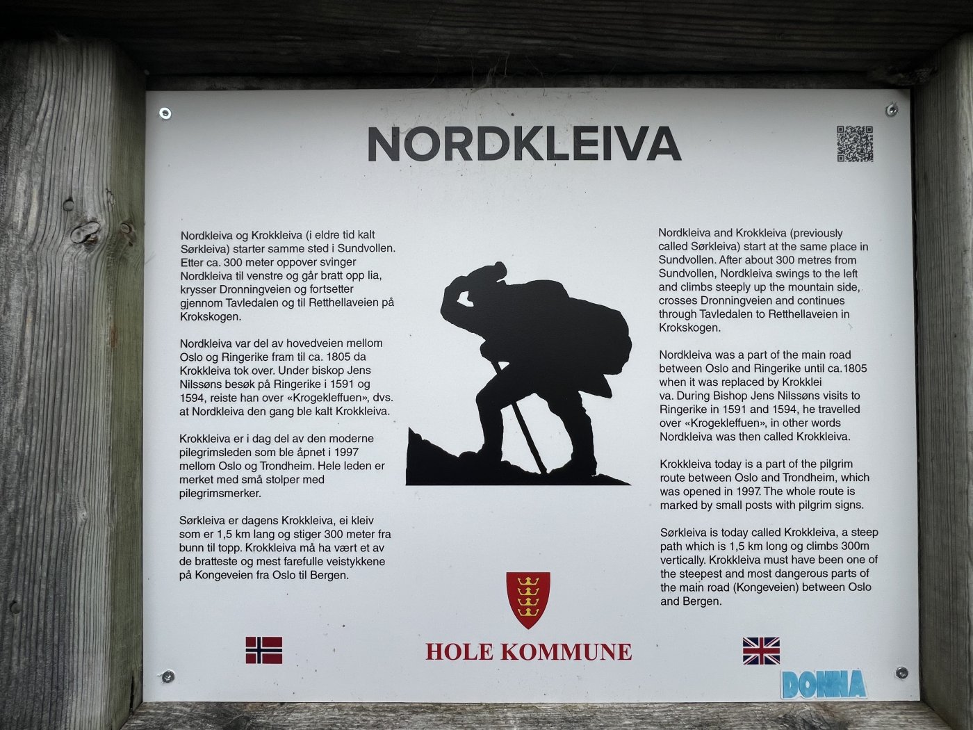 Nei, er ikke noe slik, Pilgrimsleden ble flyttet for en del år siden. Det var laget en omvei for å komme til St.Olavs kilde ved Retthella. Men tilnærmet alle gikk «Den bergenske kongevei» rett til Kleivstua og ned gamle kleiva. Infoskilt ned i Nordkleiva. Infoskiltet i Tavleskardet. De har fjernet de fleste av merkene, men noen henger igjen. Har prøvd å få de til å rydde opp, men uten hell. Var slik den gikk. Ekkel å gå ned den veien også. Bratt ned her og du går i en bekk…1 poeng