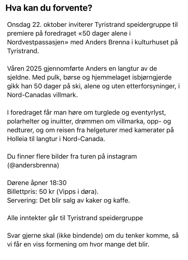 Så var det ny runde innom taudraget . Noen justeringer jeg gjorde forrige sesong var å korte det noe ned med to knuter. Den ene knuten, alpine butterfly med stor løkke viste seg å være megapraktisk som lett tilgjengelig håndtak i perfekt legnde når man skal kjøre nedover med pulken på siden av seg. Ikke noe mer styring for å finne riktig lengde å holde tauet i. Denne helgen med innevær og "manflu"-brakkesyke har det blitt noen flere forbedringer: Laget et "tileggstau" for taudraget på ca. 4m ferdig knytt med 3 store klumpete knuter langs seg. Tanken er å teste det ut i forbindelse med skigåing på bre i taulag. Ideen, inspirert av Isbre-boka som er aktuell om dagen er at man får litt større marginer med et lengre taudrag med knuter som kan bremse et fall og unngå pulk fra å falle ned i hodet-scenario (gitt at pulken også er festet i taulaget med en klemknute). Totalt blir lengden ca. 6m. Det er veldig styrete med langt taudrag ellers, så tanken er at dette enkelt kobles av/på eksisterende taudrag med en karabiner etter behov. Mer vektreduksjon på taudraget Det er litt overkill med BD Miniwire klatre-karabinerne jeg først lagde draget (inkl. hanefot på sele/sekk) med. Selv om de er lette (23,5g) er det potensiale å hente. Et knippe DMM XSRE Mini og XSRE Lock utstyrskarabinere er på vei med posten. Disse er ikke ment for klatring eller sikring av personer, men har en ganske høy bruddstyrke for størrelsen sin likevel (4kN). 8g (!) for de vanlige karabinerne og 10g for den med skrulås. Så slipper jeg tyn for å ikke bruke låsekarabiner nærmest pulken også Jeg innser at det er litt motsigende å snakke om bre og fall i det ene punktet, og nedgradering til svakere utstyrskarabinere i det neste. Likevel er nok innfesting i sele/sekk det svakeste punktet uansett. Tau til hanefot for sele/sekk sizet ned fra 6mm statisk tau til 5mm. Med disse endringene kommer hele taudragte + hanefot og karabinere til sekk/sele på ca. 218g, fra tidligere 303g. Alle monner drar! For ref. veier Fjellpulken sitt ferdige taudrag 430g.1 poeng