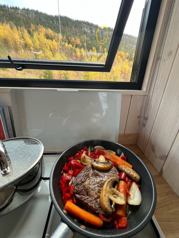 Da vant vi ei gratis overnatting med Dnt hytta på hjul. Men var kort varsel så fikk beskjed i går ettermiddag. Flott utsikt, er vel på cirka 280 m over det vil si cirka 220 m ned til fjorden. Vi ser Steinsfjorden og Tyrifjorden IMG_3239.mov Det er litt vind ute. Det er jo i prinsippet hei slags veldig lite hytte, med innebygget Cinderella do. Dagens er entrecôte med smør! Selve Mørkgonga. Helt hvordan det må ha fått den opp den smale veien skjønner jeg ikke helt… att.u-V6wF_kFX-d7pR9of12xt6jBuPJ44qM9L1LLvf02TQ.mp4 Ankomsten. att.yupYPdzhxGqePsFWI-FzBmehhdWF1-B3dM_B4N-iSaA.mp4 Omvisning inni hytta. Var ikke kaffekjele her, men hadde med et foldbart filter! 😇4 poeng