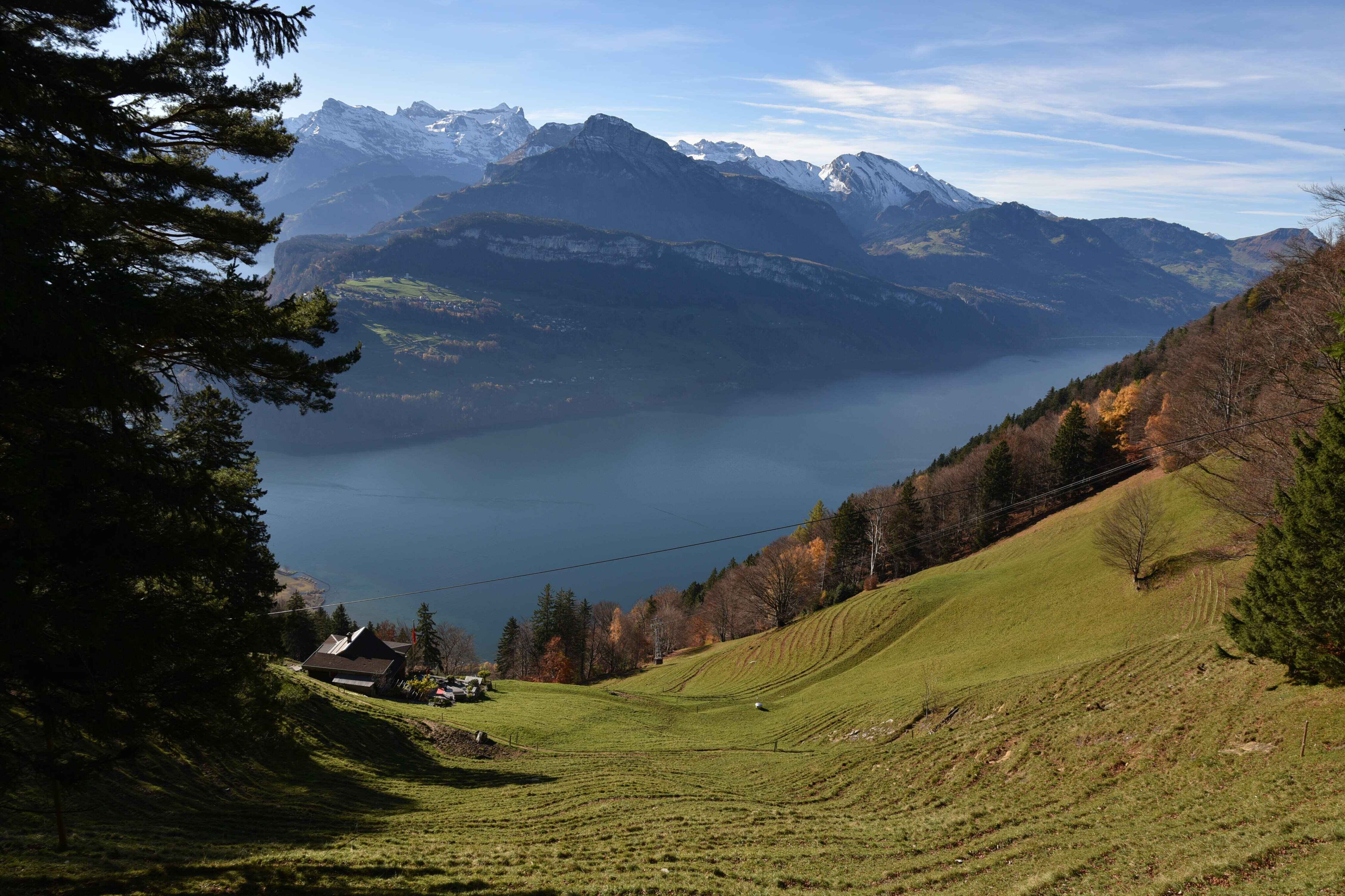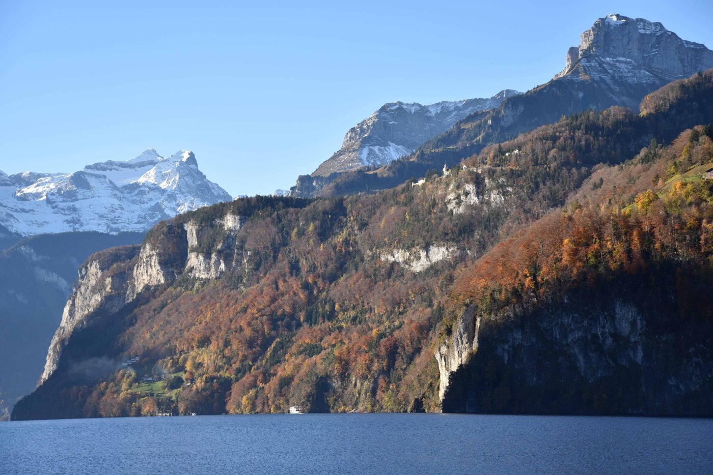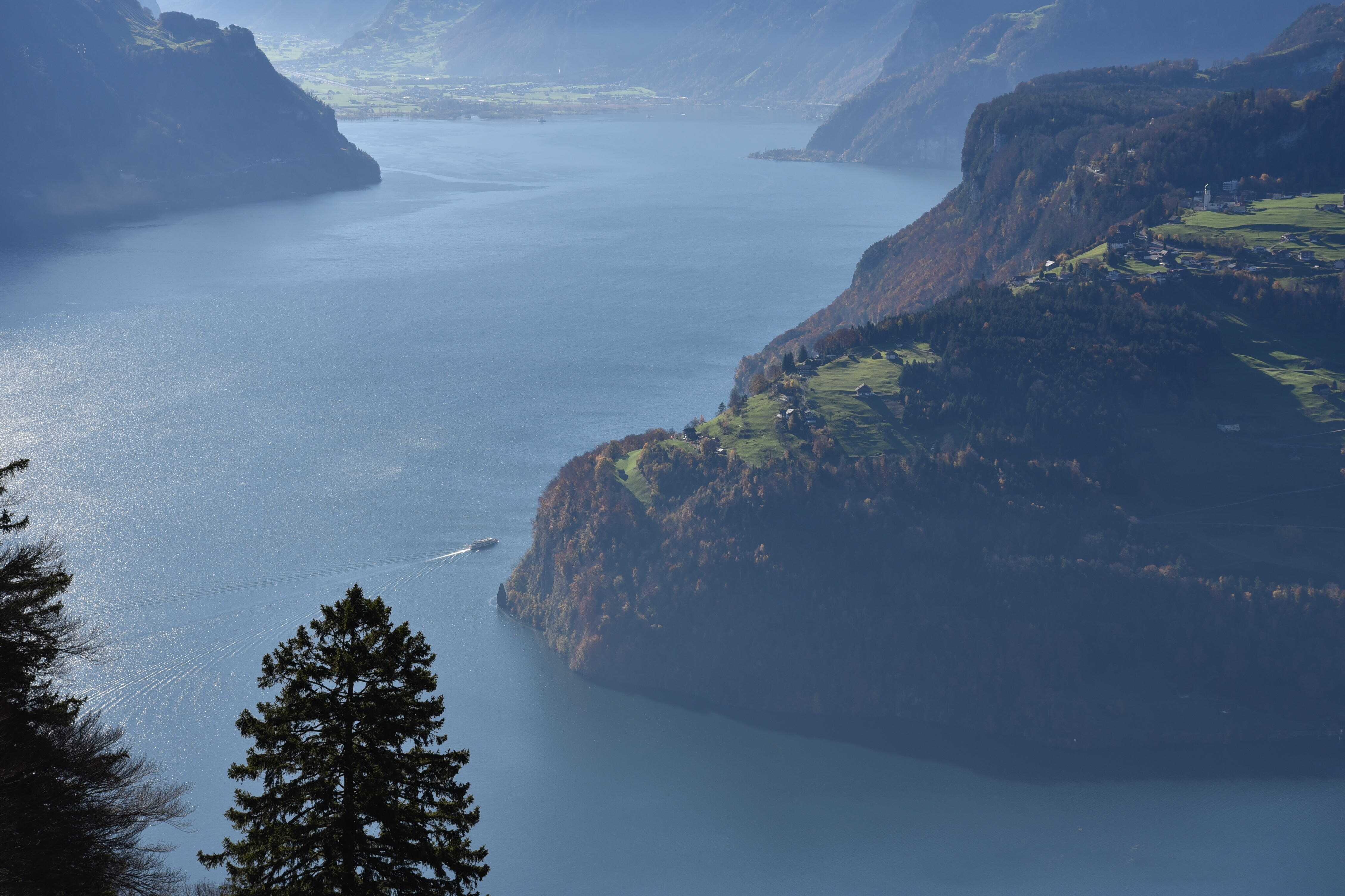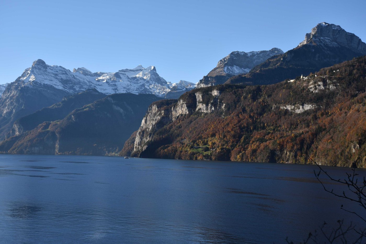 Noen ganger er det fint å dra til et vakkert sted og slappe av uten campingutstyr eller hyttereservasjoner – uten engang å kjøre bil for å komme dit. Bare hopp på en buss/tog/skip/taubane og nyt den vakre naturen. Jeg bestemte meg for å ta en slik tur 5. november til et sted som heter Brunnen i det sentrale Sveits, men jeg overså at dette var en spesiell dato i den sveitsiske kalenderen, nemlig Rütlischiessen. Det er da skyttere fra skytterforeninger over hele Sveits tar veien til Rütli-engen og deltar i en masseskytefestival. Tradisjonen markerer den (antatte) hendelsen i 1307 da representanter for tre kantoner rundt Vierwaldstättersee (Lake of Lucerne) kom sammen på Rütli-engen og sverget en solidaritetsed med hverandre mot Habsburg-dynastiet. Hendelsen regnes symbolsk som fødselen av den sveitsiske nasjonen, selv om det sveitsiske føderale charteret fra 1291 er blitt vedtatt som det offisielle grunnlaget for landet. Den enkleste måten å komme seg til Rütli på er med båt over Vierwaldstättersee fra Brunnen, så dagen for besøket mitt var spesielt travel ved skipsbryggen. Unnskyld at jeg har lagt ved noen bilder av det som skjer ved bryggen – selv om det ikke har noe med friluftsliv å gjøre. Det var bare en tilfeldighet at denne hendelsen var samme dag som besøket mitt i Brunnen. Tidlig morgenstemning. Utsikt sørover fra vannkanten ved Brunnen over Urnersee, den sørlige armen av Vierwaldstättersee (Lake of Lucerne): En gruppe borgere, hver bevæpnet med en nåværende eller historisk våpen eller pistol fra den sveitsiske hæren, går tålmodig inn i skipet for å krysse innsjøen: Innsjøenskipet «Schwyz» med sine tungt bevæpnede passasjerer nærmer seg landingsbryggen ved Rütli: «Schwyz» legger av gårde fra Rütli for et annet reisemål. Det vil ikke ta lang tid før lyden av masseskyting starter: Morgenlyset kryper sakte over Urnersee: Innsjøenskipet «Winkelried» med nok en last bevæpnede passasjerer nærmer seg Rütli-bryggen: Barn pleier å oppføre seg veldig bra når mamma er bevæpnet: Den ærverdige Karabiner 31 (K31) var standardvåpen som ble utstedt av den sveitsiske hæren fra 1933 til 1958. Den er fortsatt veldig populær blant sportsskyttere – og er fortsatt veldig presis!: Noen utsikter ned mot innsjøen fra Urmiberg/Timpel 1139 moh, som nås med en taubane fra Brunnen: De to «Mythen» sett fra Urmiberg – Grosse Mythen til høyre, Kleine Mythen til venstre. Disse dominerer utsikten over store deler av det sentrale Sveits. Toppen av Grosse Mythen er tilgjengelig via en sti fra den andre siden (Alpthal): Middagslys på Urnersee:1 poeng
