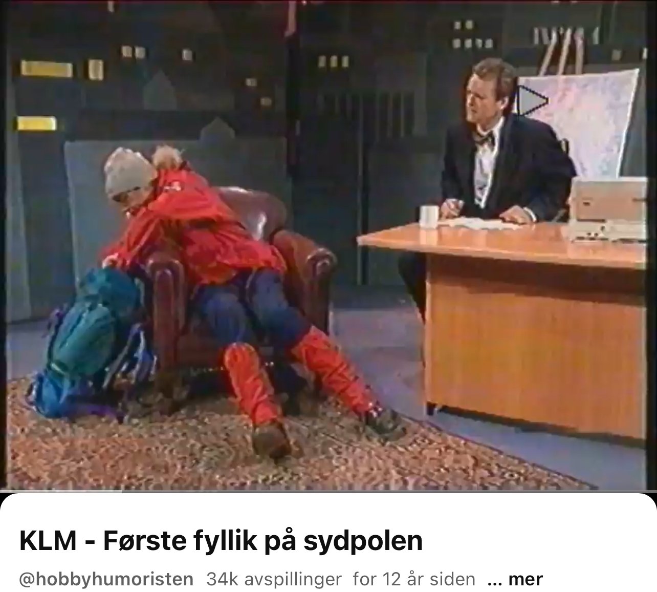 Første fyllik til sydpolen - vi som er vokst opp med KLM, fikk oppleve mye artige klipp. Sikkert ikke helt politisk korrekt i dag.🙈 Ut i vår hage- Sydpolensekpedisjon Det er et tilsvarende innslag i programmet ut i vår hage «Sydpolensekspedisjonen.»🫣 Av gode egenskaper de har er: Vant til å fryse Greie seg med lite mat. Finnes det flere slike? Noen som skal til Nordpolen?1 poeng