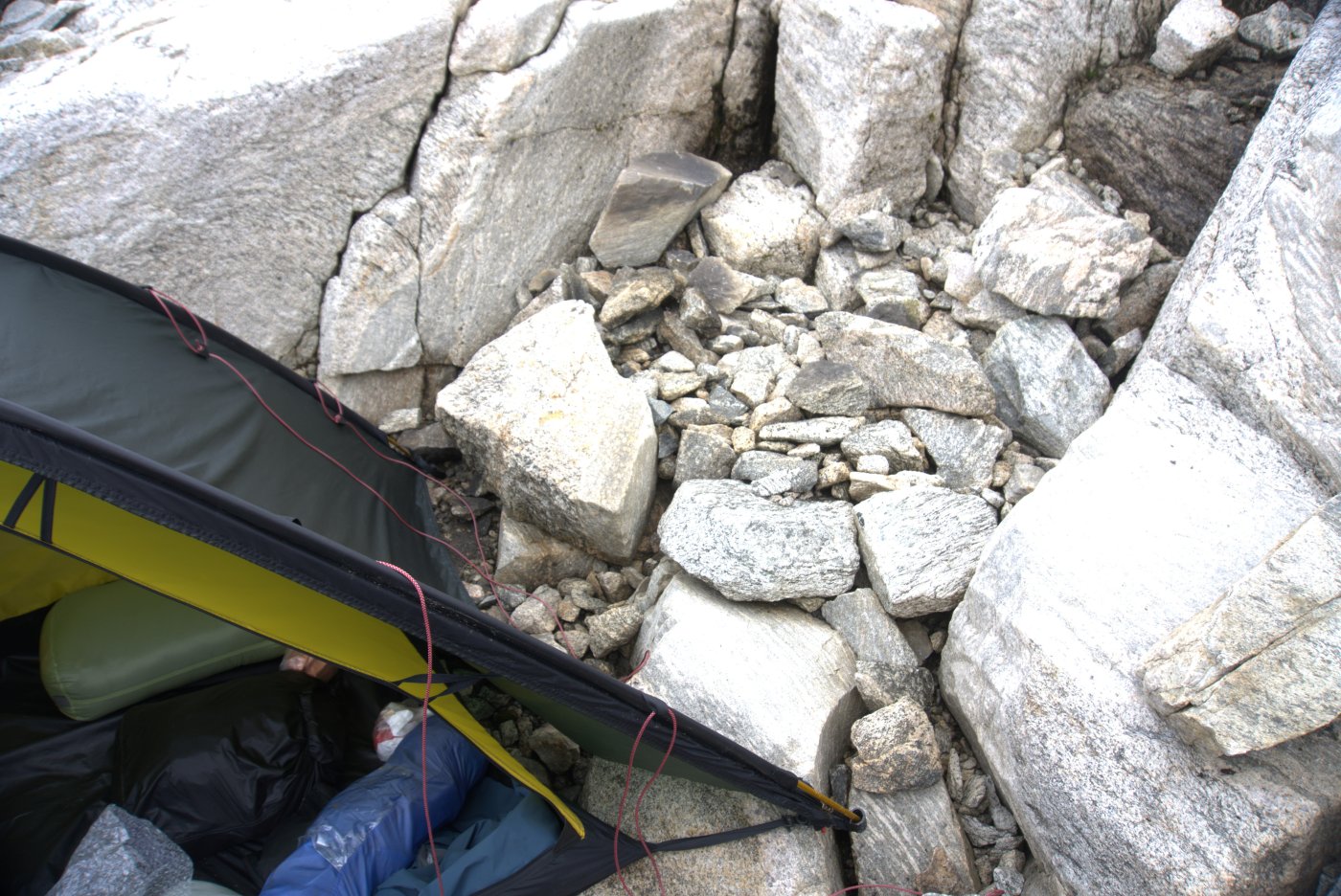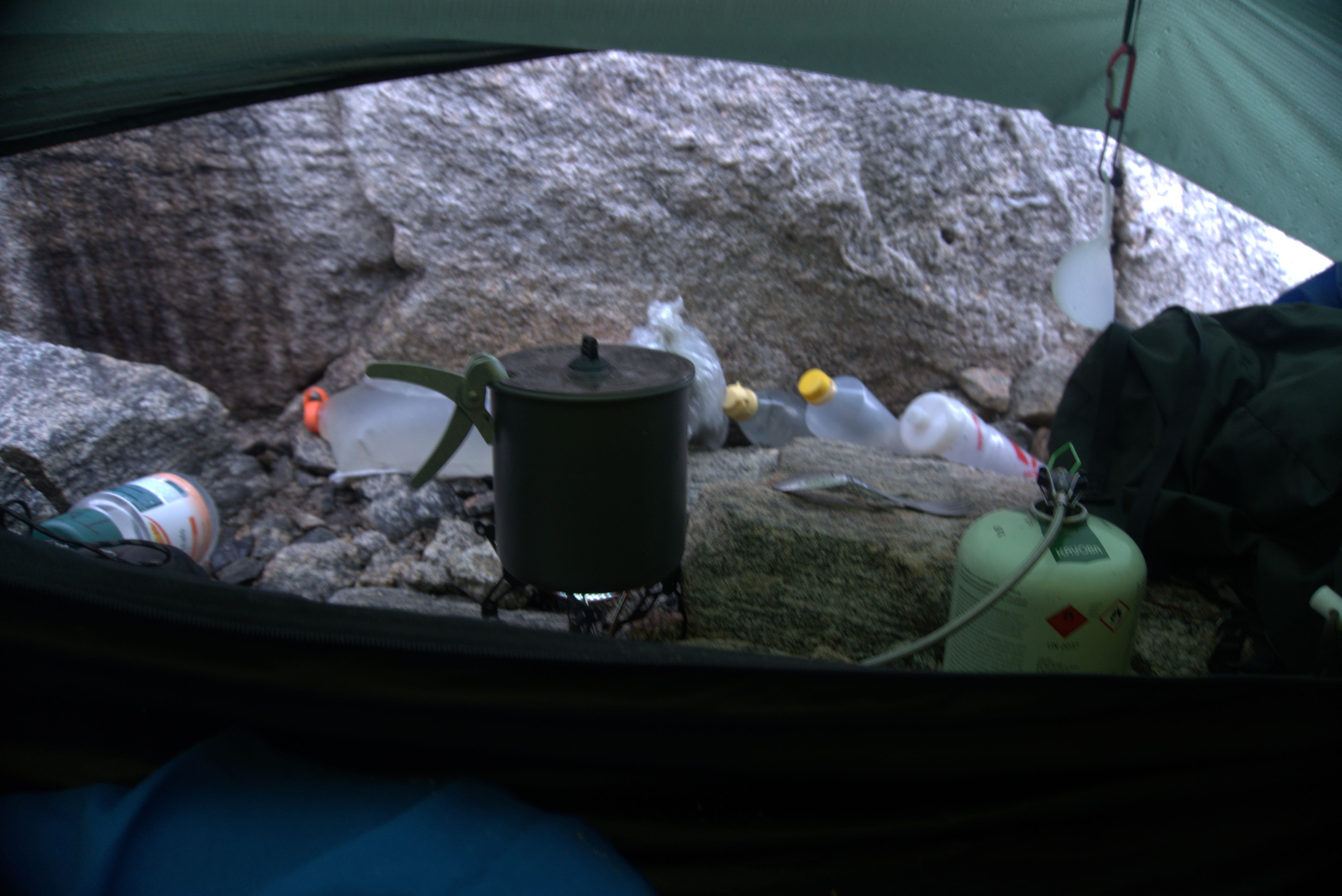 Jag fick ju sämsta vädret av de de 3 i Norge på "gamla dar" och var nog bra val med HB unna fick 3 nätter på ej planerade platser 2 berg och en "pöl"bakom ett berg. Fick sitta på huk och sätta in stänger i stångkanalerna för att ej frysa och tältet skulle blåsa bort. Täckningen på mobil telenor var ju inte bra men gick ju på öppna höga ställen i övrigt fick Garmin 67i klumpen visa vädergissningar och sms meddelanden. Men ett annat fristående tält som ej har för stort vindfång hade nog gått bra. Optimus vega med MSR bytta från köks från 1750 möh "vald"tältplats pga dimma över snöfält så man ej såg ledmarkeringen på andra sidan samt att om man vill uppleva en tur är det ju en fördel med iaf några 100 m sikt och ej gå kompassgång. Nya Nemo AS var ju ok även på berg fast när man skulle vrida på sig och ej kana av fick man ont i armbågarna. Inte ens 30D väv tålde att ligga an mot stenmuren på utsidan av hyllan men bara knappnålshuvud i plast storlek som får lagas med tejp på tur och sys hemma med laglapp. Det gick hål på de tunna montagevantarna under stenröjningen ned till plan yta och rensning på klipporna runt omkring. På bild syns lösa linor pga snart uppbrott men låg runt stenarna och uppe på klippan framför ingång ca 70 cm toltalt bredare hylla än tält.1 poeng