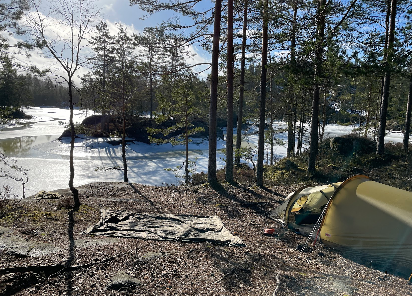 Jeg har solgt ett pent brukt Helsport Ringstind telt. Det har beskyttet meg mot regn og vind på flere turer. Dessverre kunne jeg ikke se ut når jeg satt oppreist i det. Ble litt sprø av å gni hodet i innerteltet. Nå er jeg en lykkelig eier av Hilleberg Unna. Nå kan jeg sitte oppreist med full åpning, og nyte utsikten.1 poeng