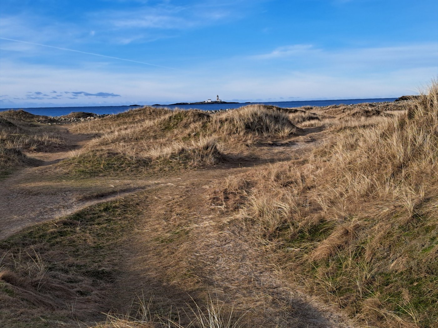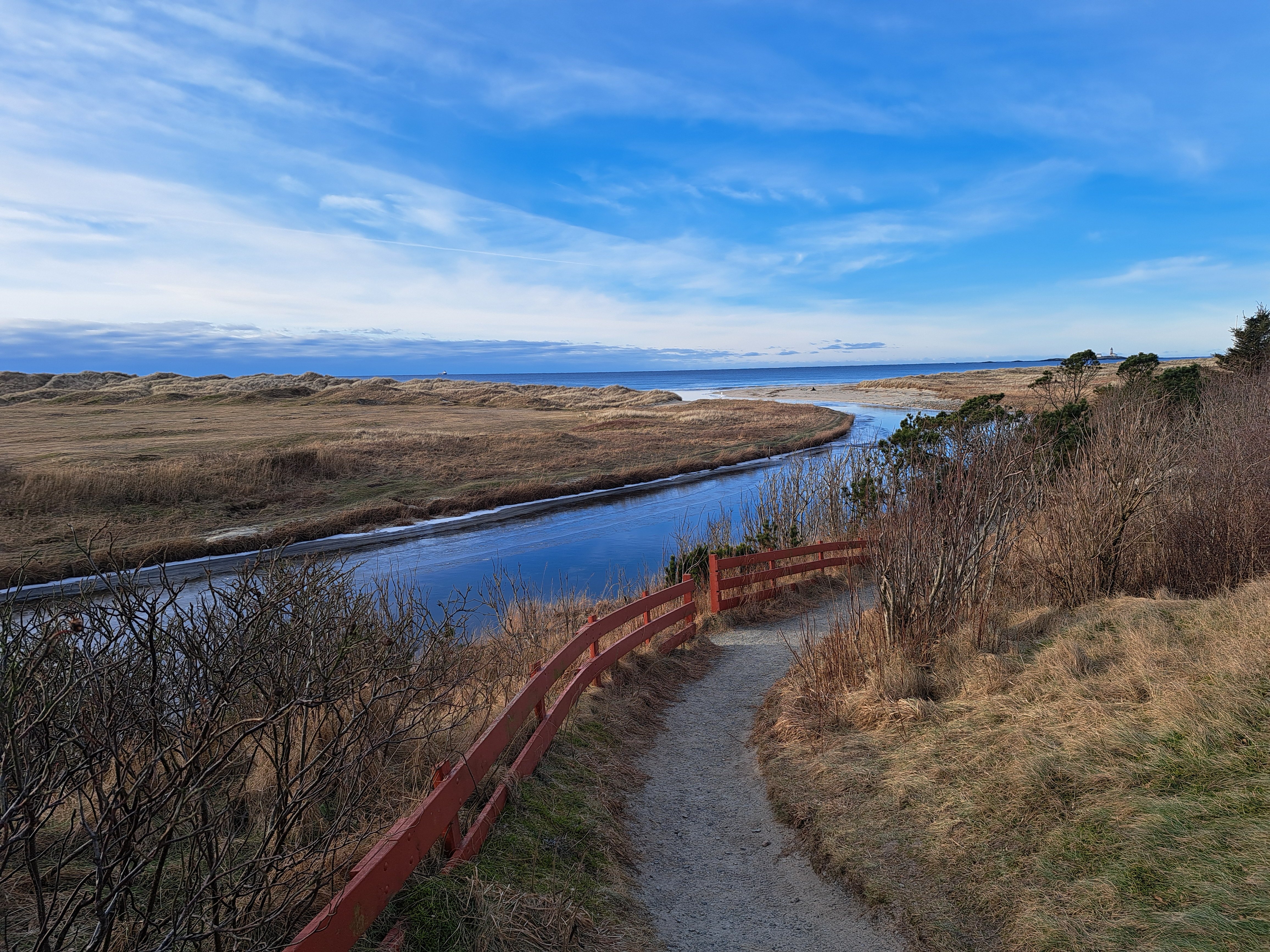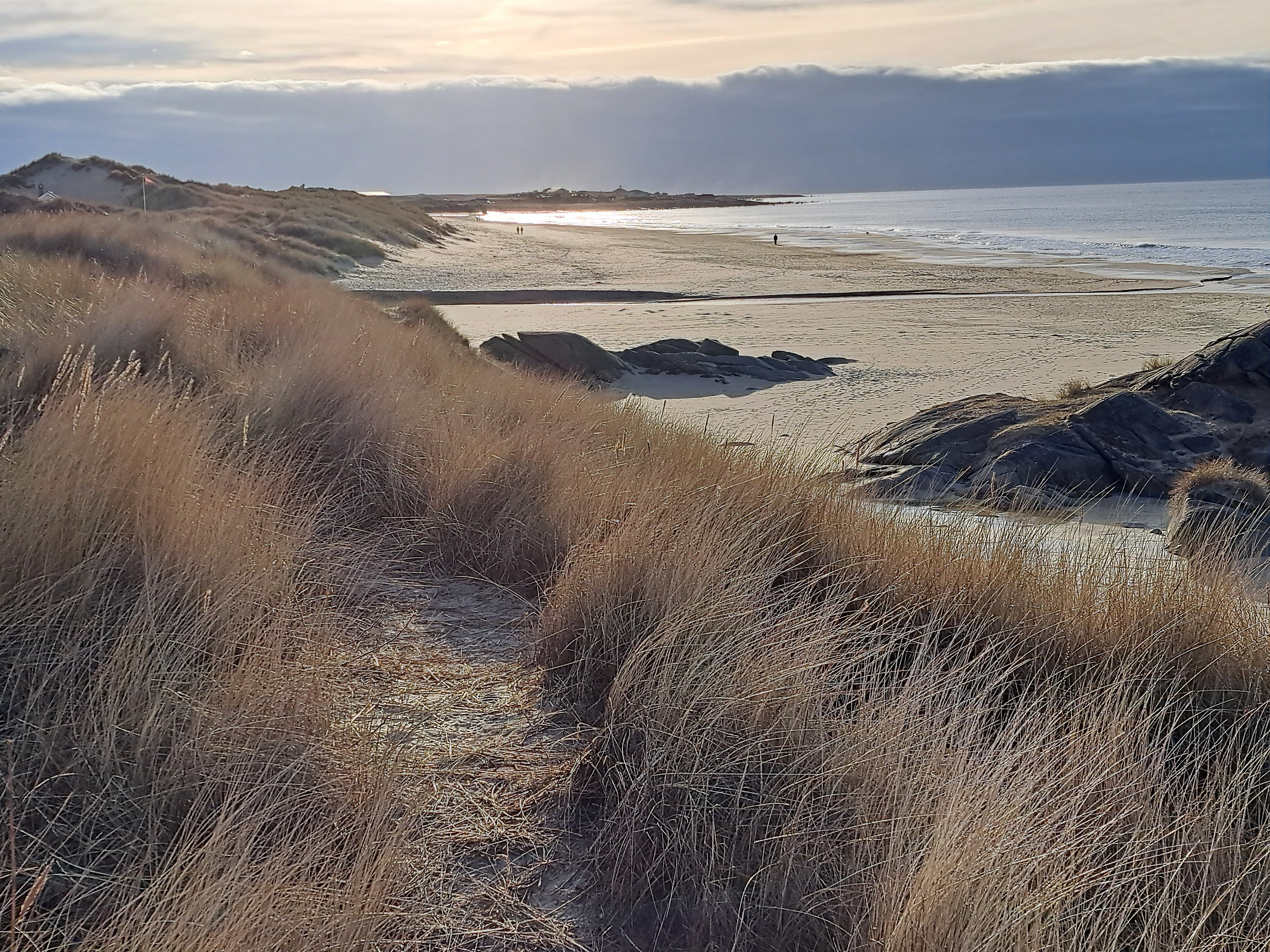 Fortsatt vinter med kuldegrader og vind. Det er fortsatt vinter. Siste turen gikk i det vanlige terrenget ut fra Gramstad, og der var det en hel del is i stien. Det var greit å komme fram, men det tok mer tid enn vanlig. Det var likevel greit å få sjekket at jeg fortsatt kan utfordre forholdene og komme meg på tur på tross av «litt» is. Nå er det ikke lenge til Bestyrerinnen og jeg skal på vår – etter hvert – vanlige tur til Gran Canaria. 14 dager i sol og sommer, med tur nesten hver dag. Det skal bli kjekt å igjen kunne gå i bare lite sommerklær. Fra Puerto Rico er det en skikkelig bakke opp til platået inn mot «Norskeplassen» og de andre «plassene» videre i terrenget. Det er fortsatt bakker, men mesteparten av turene går i nok så flatt terreng, og enten på grusvei eller god sti. Det er mer snakk om utholdenhet enn kondisjon på turen der nede. De blir ofte på 15 kilometer eller mer. Her hjemme er det en lang tur. Det kunne – på mange måter – passe bra med en sjekk av formen for slike lange litt flate turer før vi reiser. Da passer det fint med en tur i sjøkanten, og gjerne på sandstrand. Slike forhold har jeg jo bare 5 minutter fra kjøkkendøra. Planen var å gå strekket fra Hellestø til Sandsenden som er det sørligste punktet på Borestranden og tilbake. På vei nedover mot Hellestø, fant jeg ut at det egentlig er det samme hvor jeg starter, så lenge jeg likevel skal gå i samme spor begge veier. Det ville være likegreit å ta til Bore og så gå sørover før jeg snudde og gikk nordover mot Hellestø. Det ville spare meg for omtrent ti minutters kjøring... På parkeringsplassen ved Borestranden var det kaldt. Det blåste ikke mye, men med en temperatur på 4-5 kuldegrader, ble det fort hvite fingre. Det gikk fort det første stykket sørover til Sandsenden. Nå kom vinden fra sørøst, slik at jeg hadde den fra siden på omtrent hele turen. Heldigvis er det sanddyner som dekker for nettopp østavind. Det ble til og med litt varmt i sola, der vinden ikke fikk tak. Likevel ble det en kald opplevelse stor sett. Nå er det heldigvis ikke vanskelig å kle kulden ute, og jeg blir jo svett uansett temperatur. Sola står alt merkbart høyere på himmelen enn rundt årsskiftet. Det er likevel mye «solnedgang». Jeg har funnet ut at telefonen takler slike bilder mye bedre enn fotografiapparatet. Det gjør om mulig en liten forskjell. Nå har jeg gått denne turen et par ganger den siste tiden. Det er jo egentlig litt kjedelig å se strand og sjø. Det er jo likevel noen ting som gjør at jeg synes det er flott å gå her. Feistein fyr, gjør seg selvsagt alltid på bildene. Helt nede ved Hellestø (selve støet) var det brent ned et område med nyperoser. Disse er uønsket, og ble antakelig plantet for å beskytte sanddynene. Nå er også marehalmen importert for å beskytte sanddynene, men den er ikke svartelistet. Det hadde egentlig gått greit på turen. Det siste stykket på vei tilbake til bilen, kunne jeg kjenne at det – tross alt – hadde vært en ganske lang tur. Jeg vurderte å ta en ekstra tur til Fuglingene, men tilbake ved parkeringsplassen, virket det ikke helt greit. Nå er appen på telefonen grei å ha. Den kunne fortelle meg at jeg hadde brukt omtrent tre timer på 15- 16 kilometer. Det er omtrent 5 kilometer i timen, men da nesten uten bakker. Farten er noe over 11 minutter på kilometeren. Noe som ikke er spesielt imponerende, når marsjmerke kravet er 9 minutter på kilometeren – med en sekk på 12 kilo pluss våpen.6 poeng