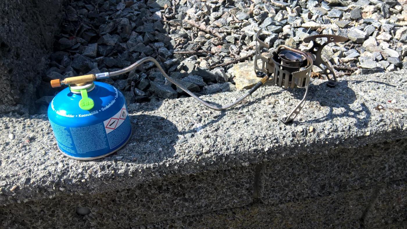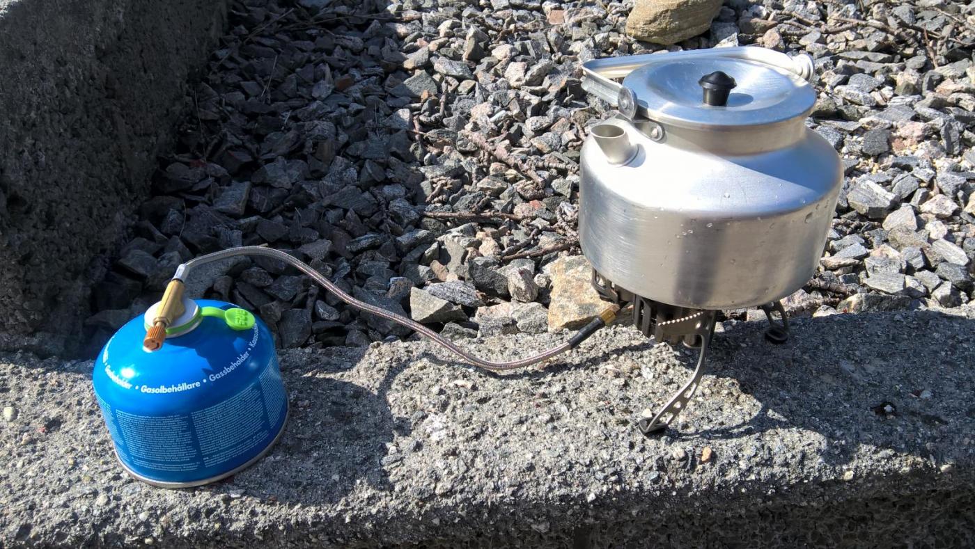 Testet brenneren på gass. Gikk greit. Spytta noe parafin som var i slangen før den ble ren for det. Burde se rødfargen av varmen...