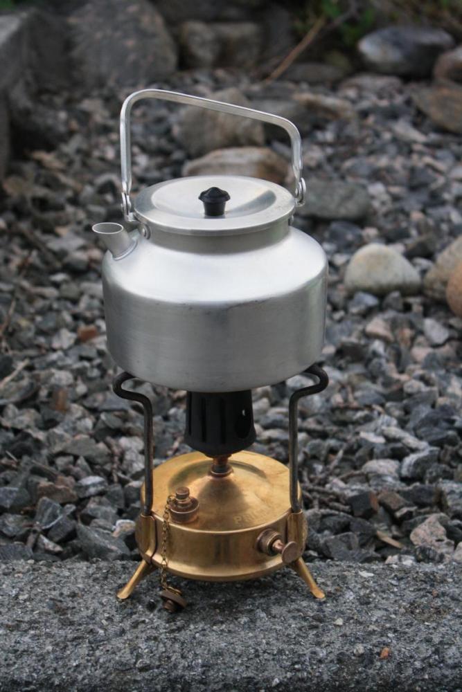 Da fikk jeg full fyr i primusen takket siste tipsene. Spesielt ang. lufteskruen. Noen bilder av forsøket. Måtte teste et kokesett som jeg husker jeg arvet. Og måtte jo koke litt vann også.- 31 svar