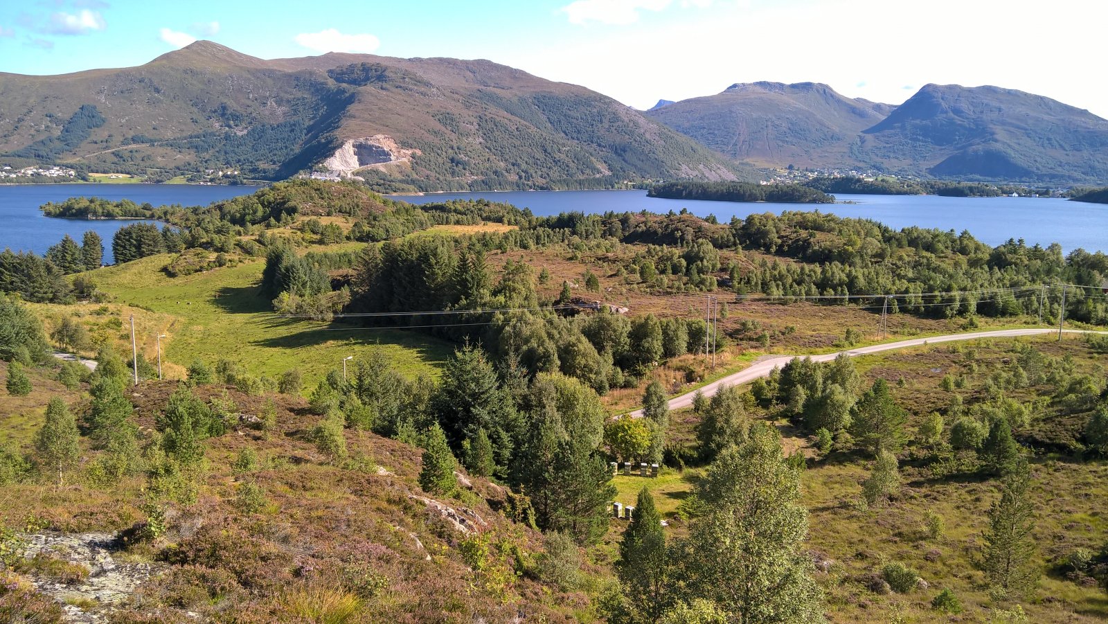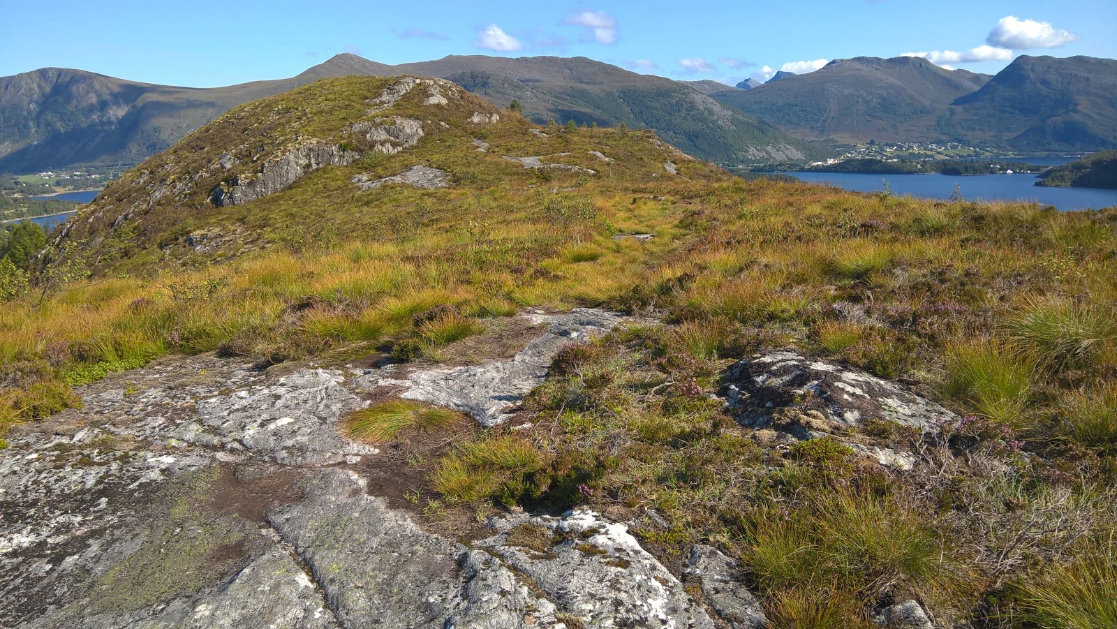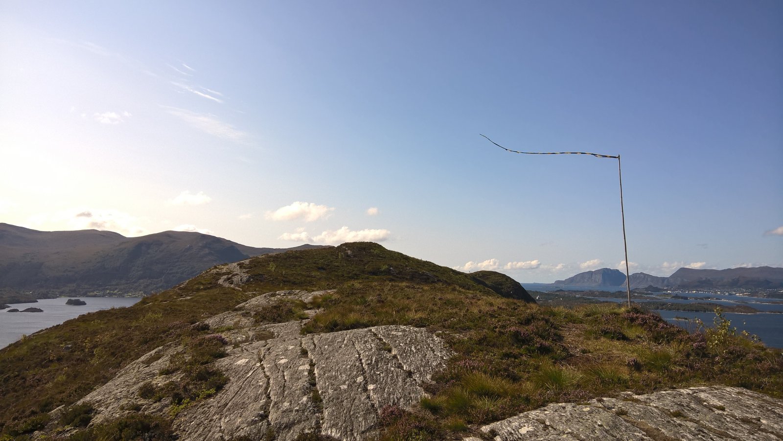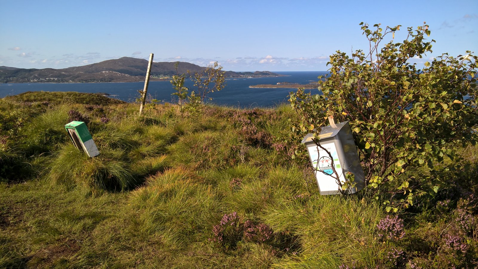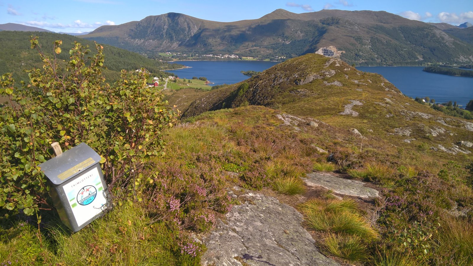 En rask tur oppå Røyrafjellet i dag. 123 meter over havet så høyt var det ikke. 600 meter til første post. 350 meter til neste post etter det. Til enden av løypa var det cirka 1 kilometer fra start. Så 2 kilometer totalt. Brukte en Microsoft Lumia 640XL mobiltelefon til å ta bilder. Gjengir best farger på sollys av en eller annen merkelig grunn. Kart: https://kart.finn.no/?lng=5.79279&lat=62.29937&zoom=16&mapType=normap Da begynner turen... Måtte forbi et "par" bi-kuber, ble ikke stukket på frem eller tilbake veg. Noe småsvett og smånervøs når jeg passerte. Opp i høyden og kvitt summende bier... Såret i fjellet er Kvalneset knuseverk. Litt til venstre sees Flåna fjelltopp, med Garnestua fjelltopp bak. Haddal til høgre. Med Kongsvollen og Blåtind fjelltopper bak deri gjen. Småbruk på Ertesvåg... Bussen på vei rundt Dimnøya. http://no.wikipedia.org/wiki/Dimna Heile øya: http://no.wikipedia.org/wiki/Dimna#/media/File:Dimna_Hasundhornet.jpg Enda et stykke på vei igjen... Noen stemningsbilder. Først til høgre. Og så til venstre. Kristofferholmen (bakerst) og Eliasholmen (fremst). Her var det et handelsted drevet av Christopher Rønneberg. https://borgarseta.wordpress.com/2013/07/20/kriksholmen/ Tror paraglider folket flyr herfra, ja: Første posten ut er faktisk fra Hødd av alle idrettslag. Dem har rota seg ut blant "dimnakorrane". Flott utsikt til havet i allefall... På tide å gå til neste fjelltopp... Et lite tilbakeblikk på der jeg var... På med krabbegir igjen... Blikkvågane på Dimna... Folk ute i båt idag... Andre post ut er Hasundgot's trimlotteri for reg. medlemmer... Begge postene, venstre er normal loggbok og trimlotteriet til høgre... På tide med ny loggbok, den gamle var helt full og i filler. En notisbok var lagt inn som nødløsning. Bare ned til enden og snu og gå tilbake samme veien...