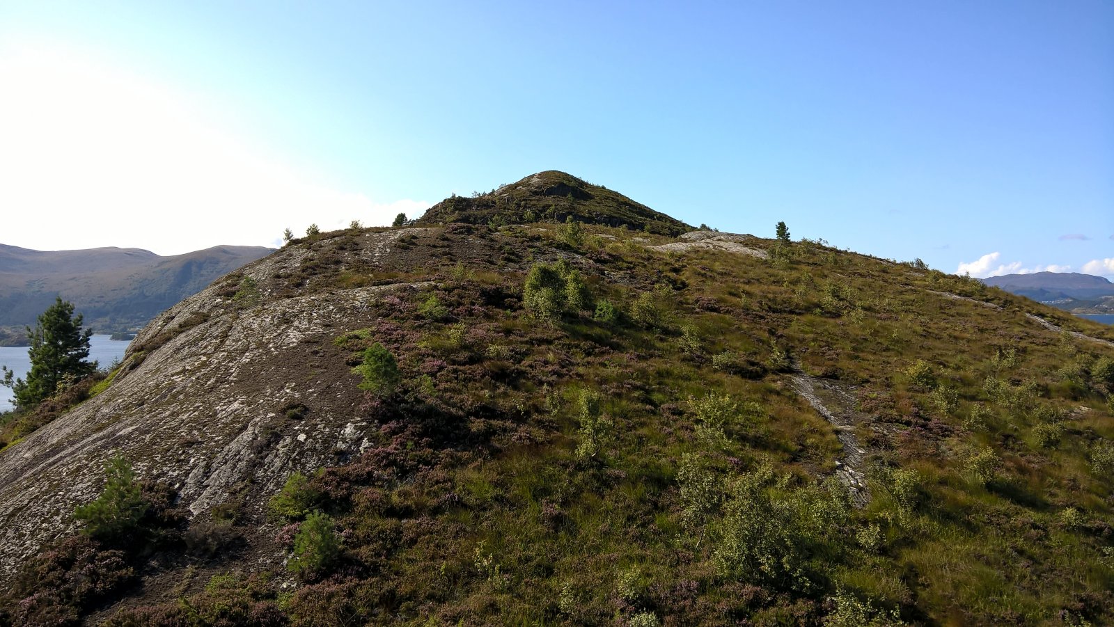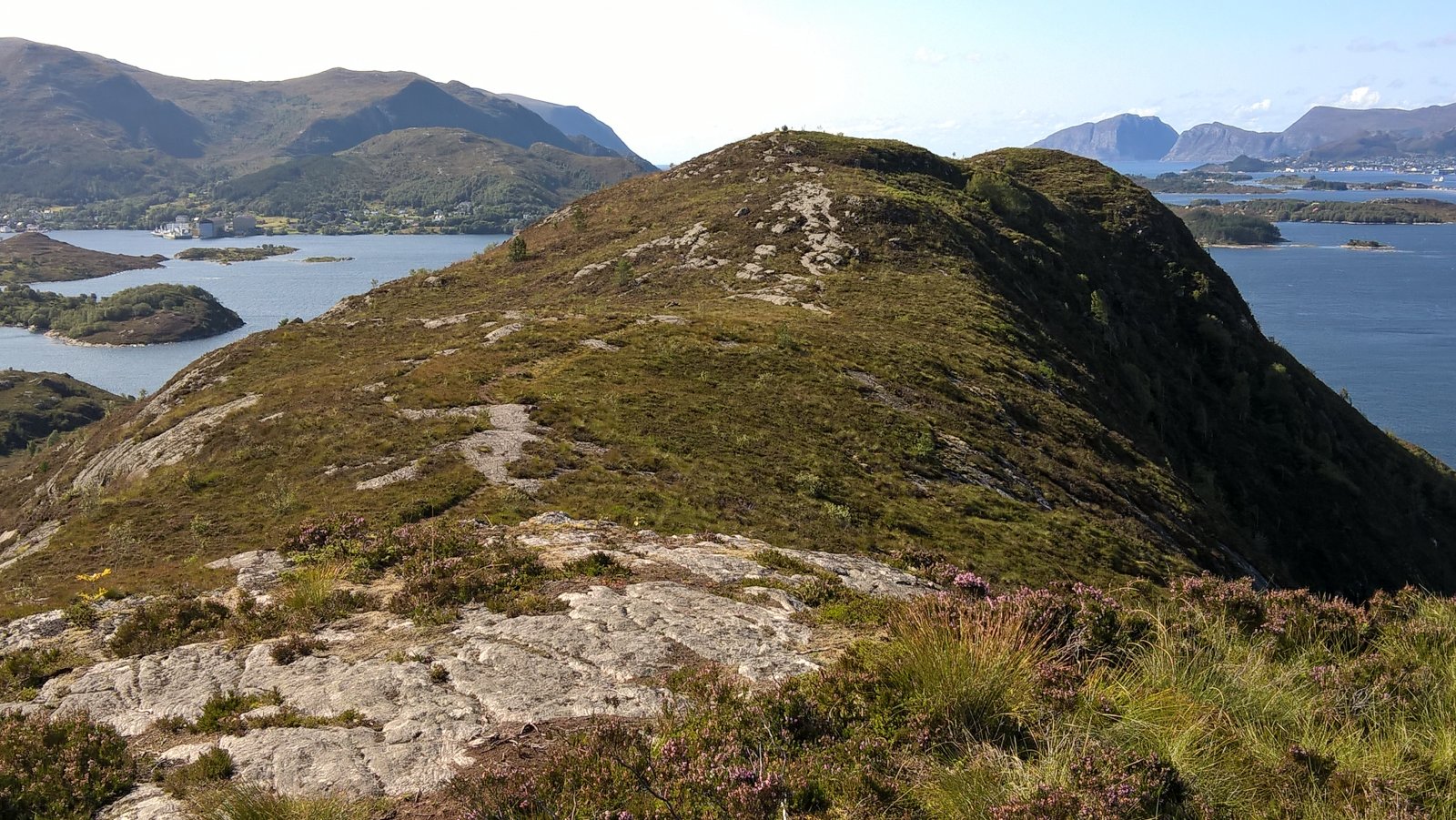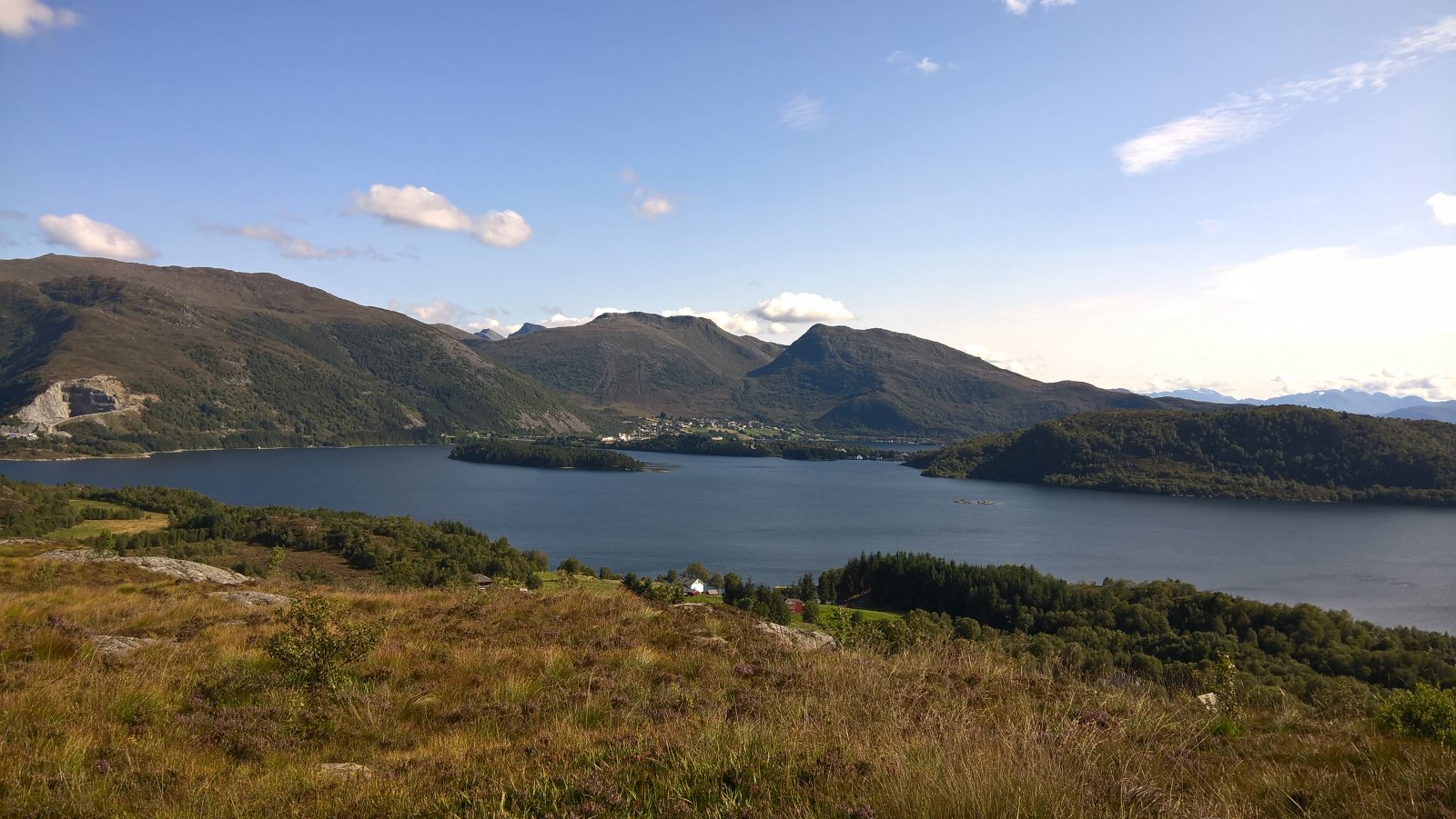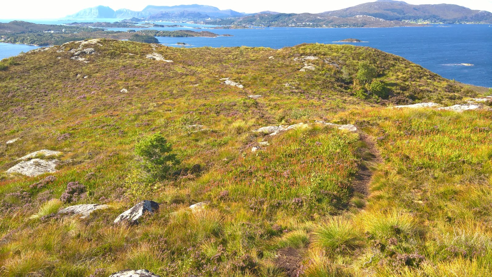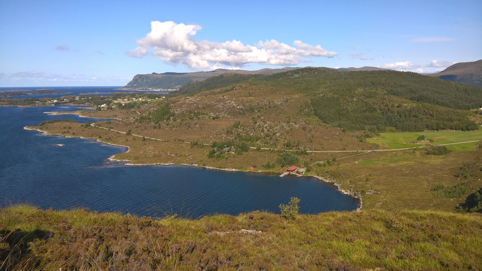 En rask tur oppå Røyrafjellet i dag. 123 meter over havet så høyt var det ikke. 600 meter til første post. 350 meter til neste post etter det. Til enden av løypa var det cirka 1 kilometer fra start. Så 2 kilometer totalt. Brukte en Microsoft Lumia 640XL mobiltelefon til å ta bilder. Gjengir best farger på sollys av en eller annen merkelig grunn. Kart: https://kart.finn.no/?lng=5.79279&lat=62.29937&zoom=16&mapType=normap Da begynner turen... Måtte forbi et "par" bi-kuber, ble ikke stukket på frem eller tilbake veg. Noe småsvett og smånervøs når jeg passerte. Opp i høyden og kvitt summende bier... Såret i fjellet er Kvalneset knuseverk. Litt til venstre sees Flåna fjelltopp, med Garnestua fjelltopp bak. Haddal til høgre. Med Kongsvollen og Blåtind fjelltopper bak deri gjen. Småbruk på Ertesvåg... Bussen på vei rundt Dimnøya. http://no.wikipedia.org/wiki/Dimna Heile øya: http://no.wikipedia.org/wiki/Dimna#/media/File:Dimna_Hasundhornet.jpg Enda et stykke på vei igjen... Noen stemningsbilder. Først til høgre. Og så til venstre. Kristofferholmen (bakerst) og Eliasholmen (fremst). Her var det et handelsted drevet av Christopher Rønneberg. https://borgarseta.wordpress.com/2013/07/20/kriksholmen/ Tror paraglider folket flyr herfra, ja: Første posten ut er faktisk fra Hødd av alle idrettslag. Dem har rota seg ut blant "dimnakorrane". Flott utsikt til havet i allefall... På tide å gå til neste fjelltopp... Et lite tilbakeblikk på der jeg var... På med krabbegir igjen... Blikkvågane på Dimna... Folk ute i båt idag... Andre post ut er Hasundgot's trimlotteri for reg. medlemmer... Begge postene, venstre er normal loggbok og trimlotteriet til høgre... På tide med ny loggbok, den gamle var helt full og i filler. En notisbok var lagt inn som nødløsning. Bare ned til enden og snu og gå tilbake samme veien...