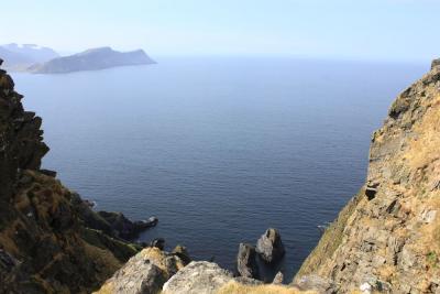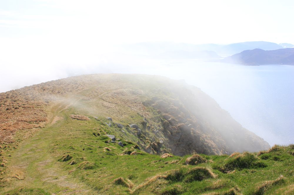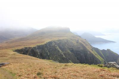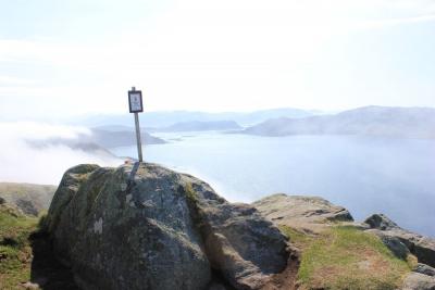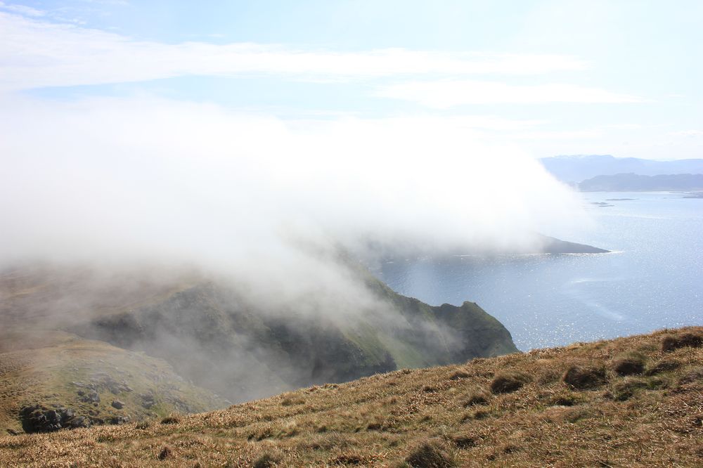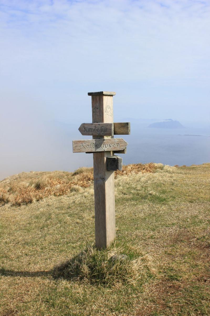 En kjapp tur til Rundabranden på fugleøya Runde i Herøy Kommune på Sunnmøre. --- 500-600 meter å gå fra denne store parkeringsplassen til stien oppover begynner. Stien begynner her. Ikke tråkk i forbudte områder. Stien begynner fint asfaltert. Så blir den til grus. Senere til slitt gress tråkk. Porten er fin. Fjærbelastet lukke mekanisme nederst. Mange slike fine skilt stolper som viser vei på fjellet på øya. Noen gjørmete parti var der også. Utlagte plankebroer sikrer tørre sko. Noen vann er det på Runde. Men, ikke drikk av dem. Du vil få bendelorm på grunn av måsene som driter i vannet. Kaldekloven Utenfor er det rakt i havet. Målet for turen, Rundebranden (300 moh). Fra et annet nettsted og i 360 grader panorama Velbrukt sti fra Kaldekloven. Kaldekloven Tåken dekker Kaldekloven. Fortsatt et stykke igjen til Rundebranden (300 moh). Tåken sniker seg over terrenget. Snart fremme på Rundebranden (300 moh). Flotte skiltstolper er satt opp over alt. Fremme på Rundebranden (300 moh). Håper bildene faller i smak...