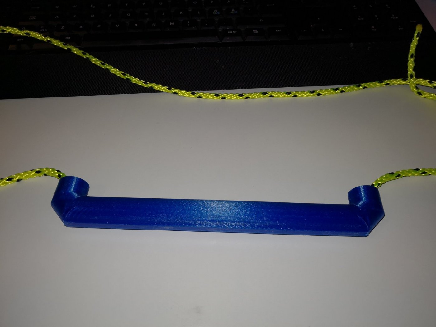 Eneste grunnen til at jeg ikke laga runde bend var at jeg fikk det ikke til i Inventor Så gadd jeg heller ikke plages lenger dermed ble de 2x45 grader Printa ut en prototyp først med redusert infill og dårligere kvalitet for å teste. Den ble såpass sterk at jeg har god tro på at den i full kvalitet med 100% infill ikke vil by på rare problemet når det kommer til styrke. Jeg liker å bruke taudrag siden det gir så mye mer frihet og "mykere" gange enn stivt drag. Jeg har en god slump stikk i mitt tauoppsett og dermed demper det mye når jeg går. Jeg bruker også en litt stor carabin nært pulken slik at når det blir slakk så sklir tauet raskt under pulken å bremser før jeg blir overkjørt. Den fjæra i fjellpulken sitt drag syns jeg blir mest irriterende når jeg har godt lastet pulk, det blir litt mye støt når man bunner fjæra.