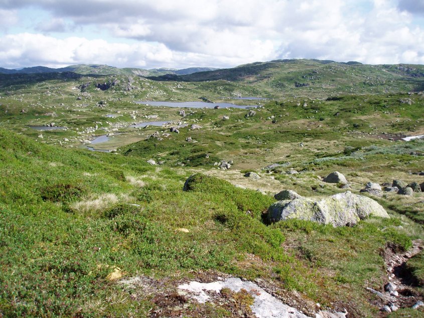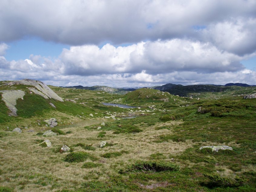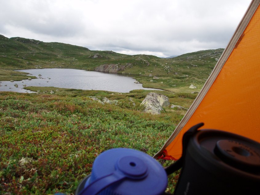Vel, Måtte ha meg en tur ut på heiene nå. Kontoret begynte å føles veldig trangt Jeg er vel egentlig ingen utstyrsfreak og det var mange år siden jeg har investert i noe særlig turutstyr, men i år hadde jeg fornyet "lageret" med nytt MSR Hubba telt og ny Jetboil primus. Var spent på å prøve disse. MSR Hubba teltet fikk Edititors Choice award i Backpacker magazine, og imponerte meg stort med kun 1.3 kg. Veldig romslig og bra. Jetboil primus imponerte ikke noe mindre. Deilig følelse og å starte denne om morgenen og ha rykende fersk kaffe 1-2 minutt senere. Utrolig liten, lett og rask. Kan legge til at jeg sparte utrolig mye penger på å kjøpe disse via nettbutikk fra USA. Teltet har jeg funnet hos Sportsnett til 3990, men fikk det fra USA for rundt $200, og primusen selger her i Kristiansand for ca 1300-1400 kr tror jeg på Aage Johanessen, men fikk den for $70-80 fra USA. Hadde en nydelig tur i området mellom Brokke-Suleskar veien og Ljoslandsområdet. Parkerte ved Øyuvsbu og gikk i et slags trekant nedover mot Gaukhei videre østover mot Josephsbu og så nordover igjen til bilen. Slapp unna det verste regnet. Måtte dele denne tråden opp i 2 for å få med alle bildene.