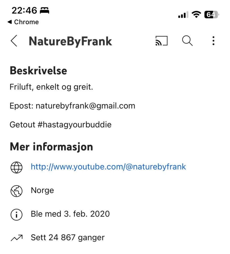 Når har jeg sagt det? Det er i beskrivelse det må stå. Jeg kikket bare på beskrivelsen på videoen og der sto det ikke noe og når jeg ser på kanalen din står det ikke noe heller. Jeg syns det er helt ryddig at du kjøper utstyr og tester ditt eget utstyr. Du skriver over her : Alt som postes her er i mitt privat eie og innkjøpt personlig For meg som potensiell seer er det viktig info og det kan gi kanalen din større kred sånn sett om du flagger det som det.