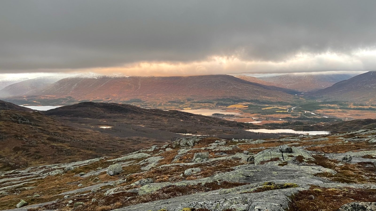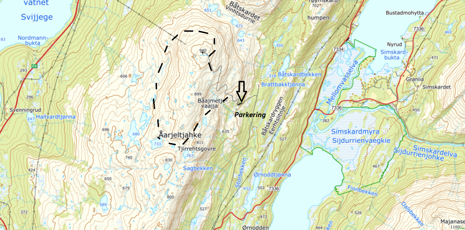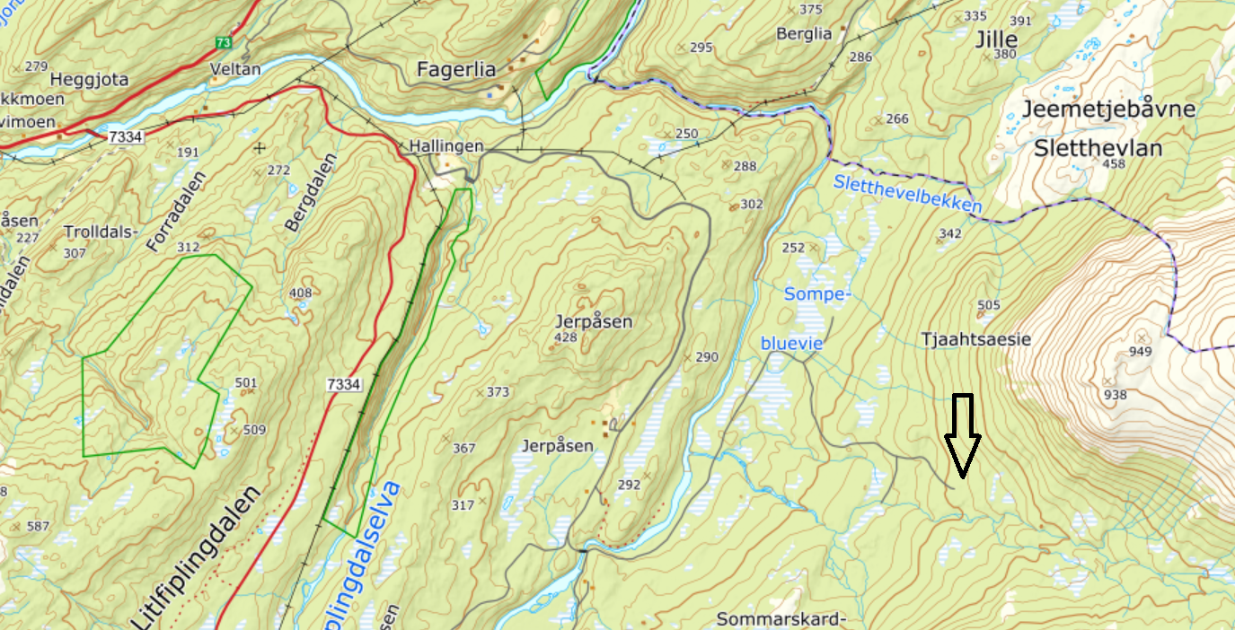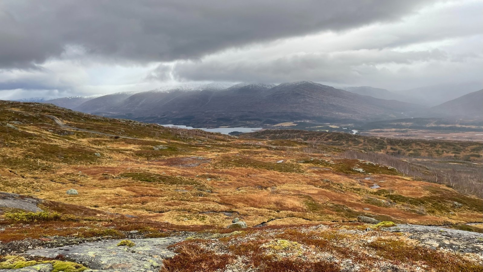 Noen få bilder fra en liten tur ved masta på Kappfjellet. (Kappfjellet ligger egentlig mye lenger nord og her lokalt blir det bare kalt senderen eller Linken, men det egentlige navnet er kanskje Åarjeltjahke?). Det er vei opp hit som kjøres på eget ansvar. Det er 2 bommer på veien. Nytt av året er at det er en bom nederst som blir stengt når veien ikke er farbar. Den sto åpen når jeg kom men stengt (men ikke låst) når jeg dro. Litt opp i lia - ved ca 600 moh er det en bom der all ferdsel med bil er forbudt, unntatt for "Televerkets biler". Veien oppover er veldig fin, og mange kjører nok forbi denne bommen også. For tiden er det ikke mulig å låse denne bommen siden den er ødelagt.. Lørdag 05.11.2022 Jeg hadde egentlig tenkt meg på Majanasen eller Sladderfjellet, som ligger på motsatt side av dalføret, men det var meldt ufyselig vær med kuling og snø i høyden der, så derfor falt valget på en liten tur på 10-12 km rundt masta her i høyden. Bilen er parkert og jeg har kommet et stykke opp. Ser rett i mot Simskardet og Børgefjellet til høyre. Det er drivende regn og litt vind, men helt ok å gå i fjellet. Det er mange flotte fiskevann oppå her og et fantastisk turområde borte fra trafikken i Børgefjell. Lett tilgjengelig - spesielt med små barn er det helt unikt. En 30-40 tamrein ligger nede ved vatnet her. Ser at en av de får øye på meg og de andre blir alarmert og de forlater sin rolige tilværelse ved vannet her. Livet som rein har vel sine utfordringer også.. Fjellterreng av det beste slaget - spennende område.. 500 høydemeter nedenfor går E-6 - nybygd og flott, men jeg må si at originalen er flottere! Planen er å gå ned i Båtskardet og rundt til bilen (navnet kommer fra at man livnærte seg med å bygge båter i dalen, og fraktet de ut med hest i gjennom disse skardene når de ble solgt på våren). Jeg trekker i stedet oppover og nærmer meg mer og mer selve masta. Masta er inntyllet i tåke og skyen ligger som et svart teppe rett over hodet mitt på denne turen. Det ligger et flott lys over Simskardet og området jeg trasket i for et par dager siden Så plutselig kommer jeg inn på veien som jeg har parkert på 300 høydemetre nedenfor. Det er helt naturstridig at det ligger en vei her, men samtidig har den en stor samfunnsmessig betydning mhp kommunikasjon og sendere. Kan ikke annet enn å tenke på at når ungene var små trillet vi barnevogn helt opp på toppen så litt bra er det jo. En fin tur i dag og.. Noe å tenke på når man blæs forbi på E-6 rett nedenfor? En fin tur -