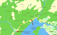 En filleting, men allikevel. Det er ikke anlagt noen skikkelig parkeringsplass i Tosbotn for Lomsdalen. Det kommer. Beklageligvis er det vedtatt kraftutbygging av Bjørnstokkelva, og når de er ferdige med den utbyggingen blir det parkering ved kraftverket der... Man bruker å sette bilen i veikanten ved Borkamo - ved en busstopp. Jeg foretrekker å gå opp i fra Bekkevoll - og setter i bilen i veikanten ved en gjengrodd skogsbilvei - merket med hvitt i kartet. Noe krevende start, men det er like godt å hive seg uti det