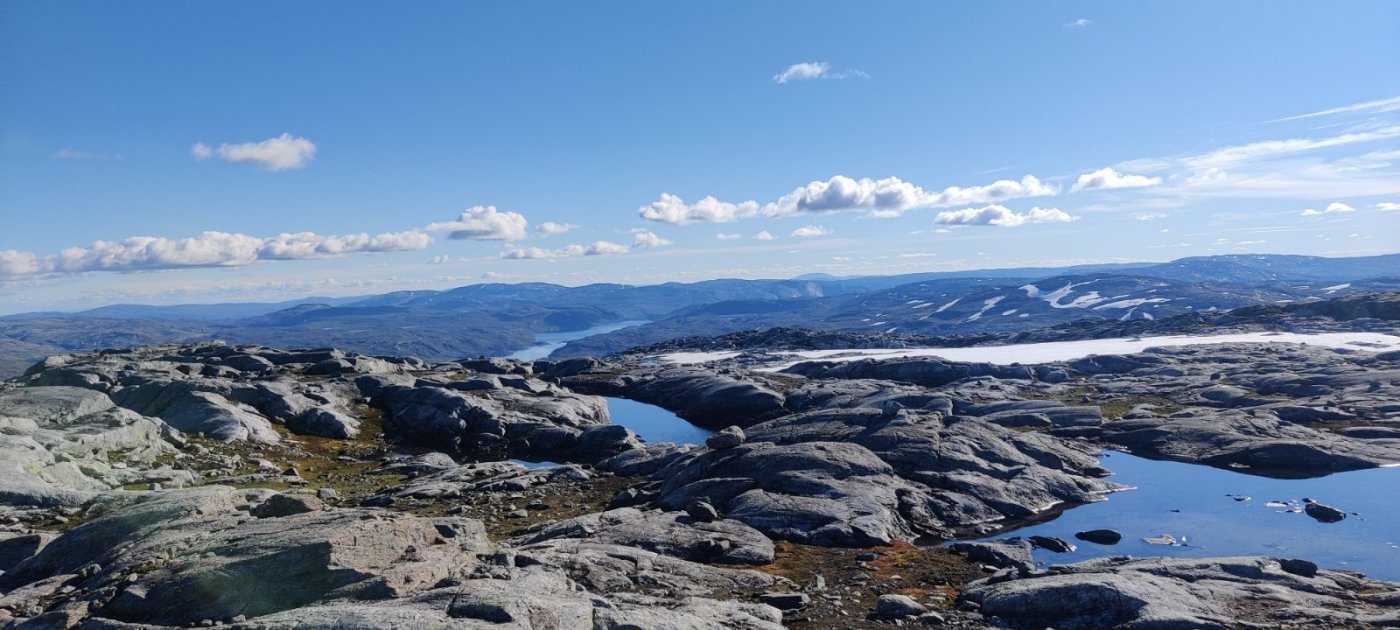 20. Generellt må jeg si at den siste tidens værtype har gjort meg litt betenkt. Sitter nå ved Stora Blåsjø og det var meldt sol i dag men i stedet styrtregner det nå. Varslene stemmer ikke og været er villere og våtere enn det var før. Syns det er kommet en ny dimensjon i ferdsel som kanskje ikke har vært så fremtredende som før. Om det blir veldig til vær/regn er det jo mulig å gå Thomasvatn, sløkskardet, ø.rørskardvatn, biseggvatnet på nordsiden og videre. Aller beste alternativ er kanskje å se om det er mulig å krysse kjukkelelva med båt (skyss) ved elveoset. Sjekk om hyttene er utleid - om de er utleid er båtene ofte i bruk. Grane j@f og Vefsn j@f. Har ikke opplevd området ved jengelen som myrete. Mer fjellterreng med mye blåbærlyng - frodig.