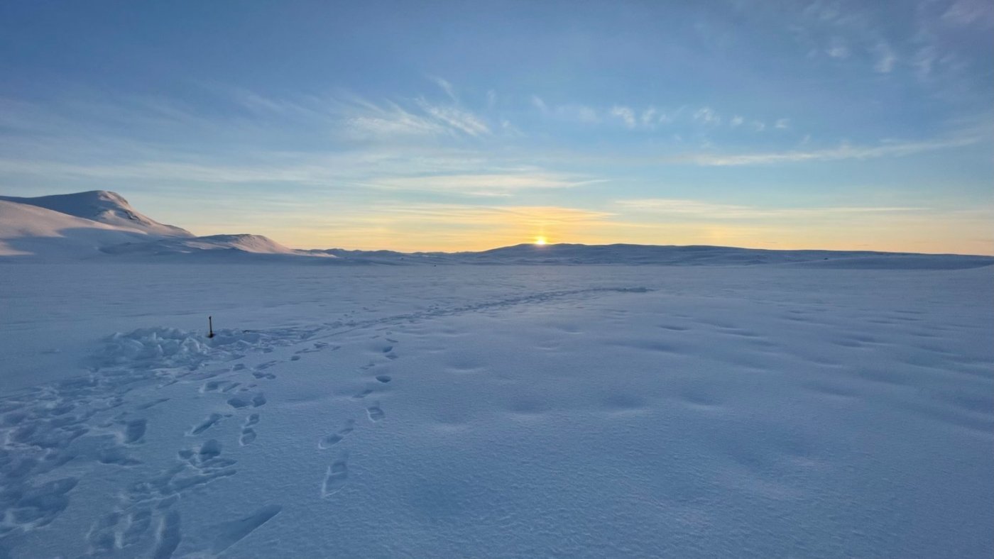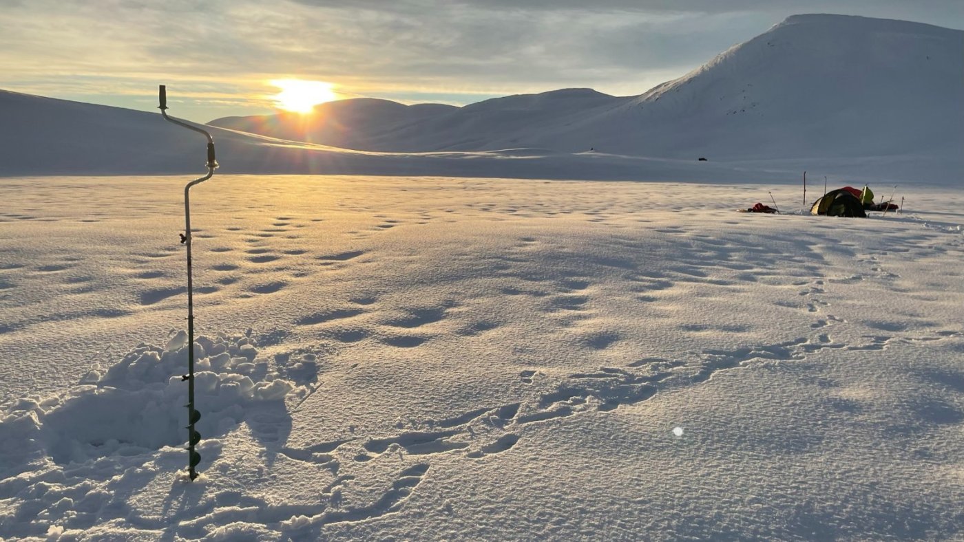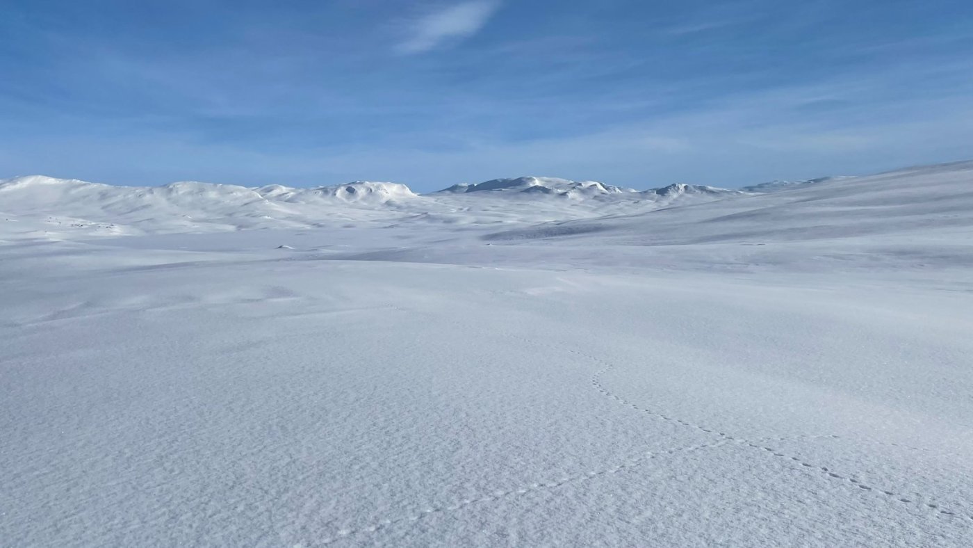 Jeg og broderen hadde en fin tur inn i Børgefjell her for et par uker siden. Det er ganske utrolig å planlegge en tur mange måneder i forveien og ende opp med knallvær 5 dager i strekk. Planen er å gå inn til Jengelen fra Thomasvatn - campe der - og gå rundt i området. Strekket er ca 15 km en vei i et lettgått terreng. 12 mars 2022 Oppstart fra Thomasvatn på formiddagen i et nydelig vær. Hardt føre. Oppsynet har akkurat kjørt inn forsyninger til hyttene der inne så det er også scooterspor, men hardt nok fra før nå. Storelvhøgda er første naturlige pausested - 300 høydemeter over startstedet, men det gikk ganske lett med langfeller. Videre innover Orrekdalen går det greit. Det mimres om både fjellforumtur i samme området, og andre turer i dette flotte fjellområdet. Orrekvatnet Endelig Jengelen med Jengelfjellet i bakgrunnen. Et fin del av Børgefjell Etter at teltene er oppe får vi borret i isen og den er kun 170 cm tykk. Jeg hadde på forhånd vært spent på istykkelsen og om det var nok med en forlenger til teleskopboret mitt, men det viste seg å gå bare bra. Det er ganske greit siden vi kan grave ned 20-30 cm for å finne overvann - lett å fylle kjelene/flaskene med vann. Vi bruker kvelden til å sette ut noen snører. Jengelen er litt lur siden det er vanskelig å se hvor det er grunner, så for å unngå å bore i en stein telter vi ved en skrent der jeg vet det er dypt på nedsiden. 13 Mars 2022 En fantastisk morgen ved Jengelen. Det er mange minusgrader på natta. Etter frokost er det sondering for andre fiskeplasser. Jeg angrer på at jeg ikke tok med et kart som viser grunnene.. Fisk får vi også - noe som denne videoen viser I litt rotete orden kommer noen flere bilder fra området disse 4 dagene... Jengelskardvatnet Mot Kvigtinden - Lesskjukkelen Mot Gaukarn - de store hvite vidder! Jengelhytta rimelig nedsnødd... Kveldstur over mot Blyvatnet og Trøndelag. Godt å sitte i teltet og fyre i primusen og se månen gli forbi glugga Morgenstund samme sted noen timer senere Så er det bare å bryte seg på heimtur. Opp en kneik før det er ned mot Orrekvatnet. Det er her steinhardt føre, og vi må av med skiene i enkelte partier for i det hele tatt komme oss frem. Så er vi tilbake til stedet vi hadde første pause 5 dager tidligere. Ned mot Thomasvatn gikk det smått og vi måtte gå på et isete og hardt spor nedover.