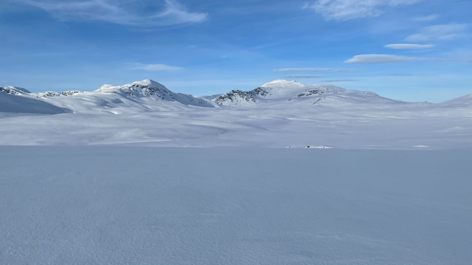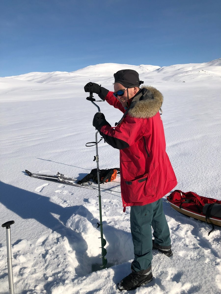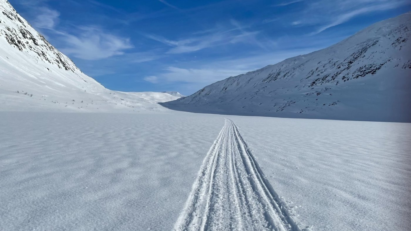 Jeg og broderen hadde en fin tur inn i Børgefjell her for et par uker siden. Det er ganske utrolig å planlegge en tur mange måneder i forveien og ende opp med knallvær 5 dager i strekk. Planen er å gå inn til Jengelen fra Thomasvatn - campe der - og gå rundt i området. Strekket er ca 15 km en vei i et lettgått terreng. 12 mars 2022 Oppstart fra Thomasvatn på formiddagen i et nydelig vær. Hardt føre. Oppsynet har akkurat kjørt inn forsyninger til hyttene der inne så det er også scooterspor, men hardt nok fra før nå. Storelvhøgda er første naturlige pausested - 300 høydemeter over startstedet, men det gikk ganske lett med langfeller. Videre innover Orrekdalen går det greit. Det mimres om både fjellforumtur i samme området, og andre turer i dette flotte fjellområdet. Orrekvatnet Endelig Jengelen med Jengelfjellet i bakgrunnen. Et fin del av Børgefjell Etter at teltene er oppe får vi borret i isen og den er kun 170 cm tykk. Jeg hadde på forhånd vært spent på istykkelsen og om det var nok med en forlenger til teleskopboret mitt, men det viste seg å gå bare bra. Det er ganske greit siden vi kan grave ned 20-30 cm for å finne overvann - lett å fylle kjelene/flaskene med vann. Vi bruker kvelden til å sette ut noen snører. Jengelen er litt lur siden det er vanskelig å se hvor det er grunner, så for å unngå å bore i en stein telter vi ved en skrent der jeg vet det er dypt på nedsiden. 13 Mars 2022 En fantastisk morgen ved Jengelen. Det er mange minusgrader på natta. Etter frokost er det sondering for andre fiskeplasser. Jeg angrer på at jeg ikke tok med et kart som viser grunnene.. Fisk får vi også - noe som denne videoen viser I litt rotete orden kommer noen flere bilder fra området disse 4 dagene... Jengelskardvatnet Mot Kvigtinden - Lesskjukkelen Mot Gaukarn - de store hvite vidder! Jengelhytta rimelig nedsnødd... Kveldstur over mot Blyvatnet og Trøndelag. Godt å sitte i teltet og fyre i primusen og se månen gli forbi glugga Morgenstund samme sted noen timer senere Så er det bare å bryte seg på heimtur. Opp en kneik før det er ned mot Orrekvatnet. Det er her steinhardt føre, og vi må av med skiene i enkelte partier for i det hele tatt komme oss frem. Så er vi tilbake til stedet vi hadde første pause 5 dager tidligere. Ned mot Thomasvatn gikk det smått og vi måtte gå på et isete og hardt spor nedover.