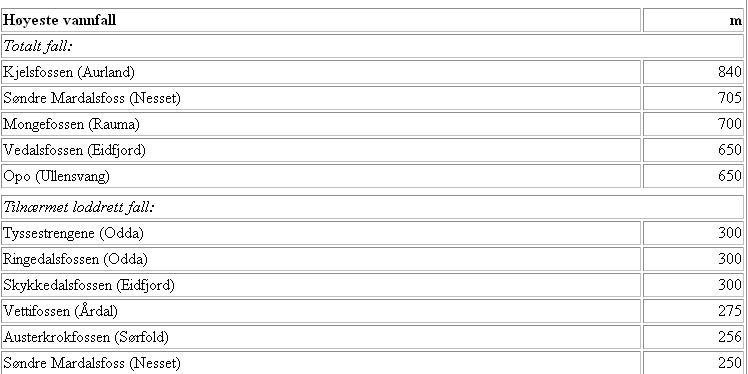 Statistisk sentralbyrå opererer med følgende liste..Litt i tvil om definisjonene her.. Totalt fall og Tilnærmet loddrett fall...