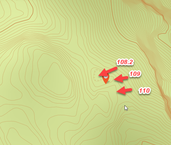 15. Egentlig et litt morsomt eksempel det der Kalvetjern, for høyden er 530,4 til 530,2 alt etter hvor man klikker i tjernet, og myrkanten er 530,1 f.eks. så det er litt naturstridig. Satt å så på et kart hjemme og uten disse forsenkingskurvene vil det være umulig å se om en steinur går nedover eller oppover..