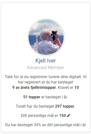 For 20 pluss år siden begynte jeg mitt friluftsliv i fjellene her med den lokale fjelltrimmen, som har eksistert siden 1990. I tidligere tider var det knapt nok stier, og folk visste knapt nok hvor de skulle gå på disse fjellene rundt her, men oppslutningen var formidabel. Nå er det rødmerkede løyper og etablerte parkeringsplasser på de fleste toppene. Personlig fant jeg fort ut at jeg ønsket å gå opp mine egne stier og at fjelltrimmen kanskje ikke var krevende nok, men nå etter 30 år er jeg selv en av pådriverne for dette. Jeg begynte rimelig kjapt å sondere rundt dette med å få til en elektronisk registrering for bestigning på fjelltoppene, og så at det var flere leverandører av dette. Fellesnevneren var app på telefon, og gebyr til ett eller annet selskap for å drifte dette, samt at det som oftest var ganske dyrt, men ble dekket av friluftsråd e.l. Etter en viss sondering, fikk jeg tak i domenet fjelltrimmen.no, som jeg syntes passet perfekt for oss og jeg engasjerte @Martin Aronsen for å lage en applikasjon basert på samme motor som fjellforum, til nettsiden for registrering. Etter at vi startet med dette tok det fullstendig av, og nå i disse koronatider, når man ikke skal benytte gjestebøker, så har populariteten økt. Vi har nå 900 medlemmer og rimelig høy aktivitet og godt over 100 bestigninger daglig i godværs perioder.. Vi har 3 forskjellige måter man kan registrere fjellturer på: Hjemmefra på egen PC etter tur. Kan kun gjøres en gang pr fjelltopp, og kun årets topper. Kommer alltid opp KL 12:00 Fra egen telefon, nærmere enn 100 meter fra varden. Mest benyttet. Kan benyttes på alle toppene som har vært med i fjelltrimmen siden 1990. Man kan se sin egen posisjon i nettsiden, og også se hvor man er i forhold til gpx ruten som er lagt inn for hver fjelltopp. QR kode. Dette alternativet blir innført i disse dager, og vi får trykket små metallskilt som folk kan scanne som blir skrudd fast i boksene på toppene. Nettsiden har ellers statistikk, både felles og egen, samt at man kan ha egne mål, eller egne bedriftsidrettslag som kan konkurrere mot hverandre, slik at de som er med i den gruppen kan se hvordan de ligger an i forhold til andre i samme bedrift f.eks. Dette emnet lager jeg for å promotere denne enkle måten å gjøre elektronisk trimregistrering på. Ingen app som må vedlikeholdes, eller kostbare gebyrer. Jeg har valgt å legge siden på samme server som fjellforum der fjelltrimmen dekker sin egen andel, men om man velger IPS så kan man kjøpe det for 45 USD i mnd med inntil 65 brukere online samtidig. Det er utrolig mange som har begynt med fjelltrimmen etter at vi begynte med elektronisk registrering. En viss konkurranse har det nok også blitt blant enkelte, men det viktigste er å komme seg ut.