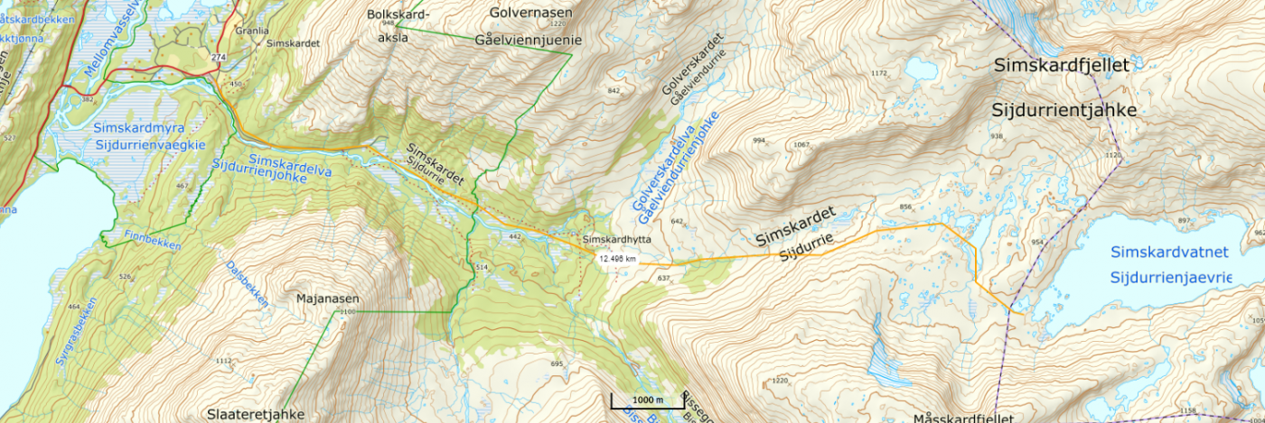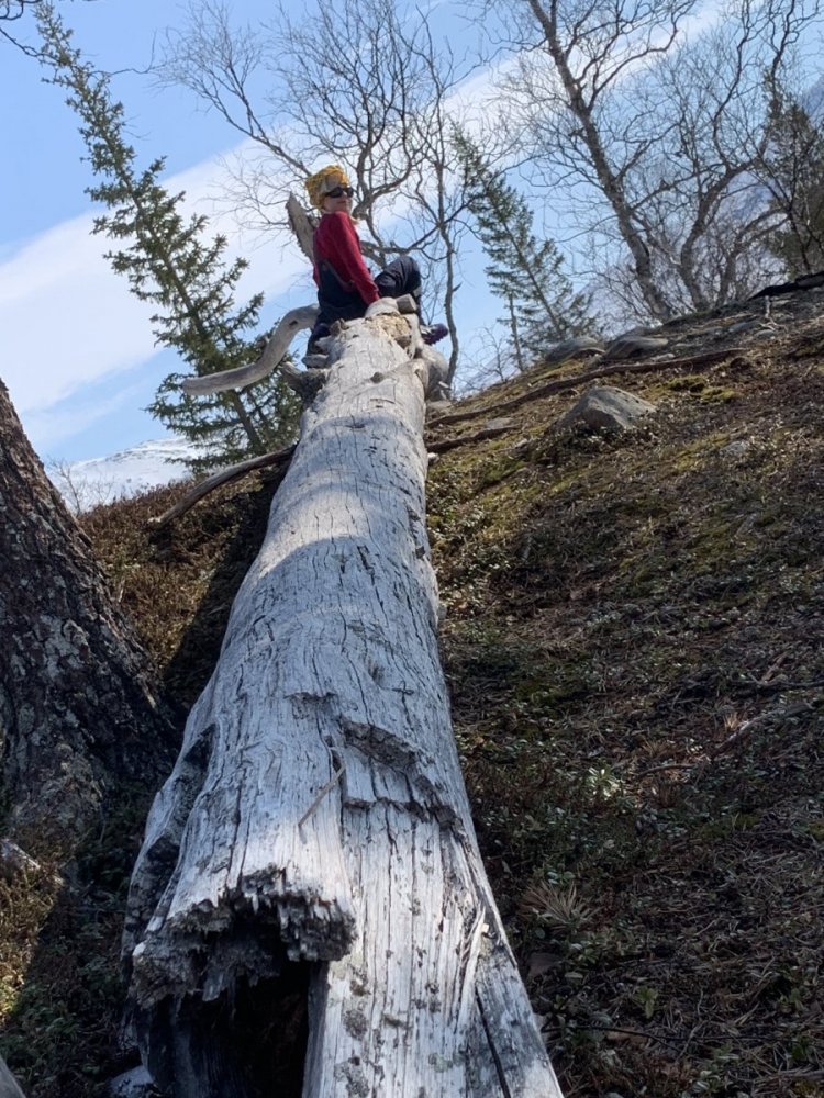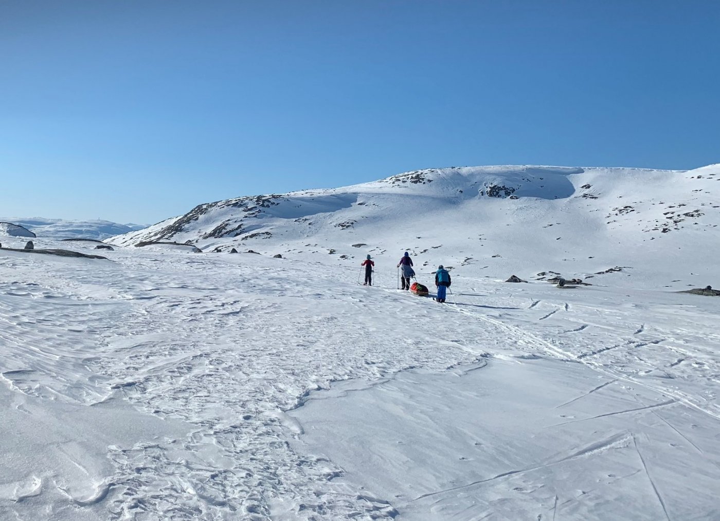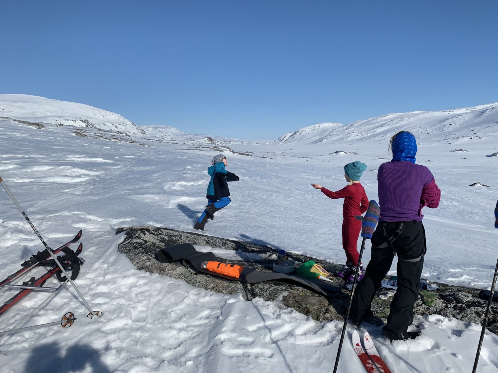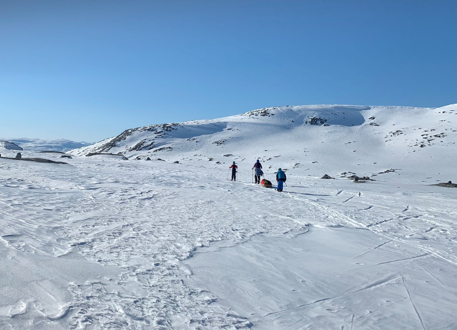 Vi har tilbragt mye tid inne på land den siste tiden. Selve Børgefjell er som vanlig ikke så lett tilgjengelig, og det er jo en dags marsj å komme inn til et fiskevann der inne. For oss er ikke fiske hovedmålet, vi fisker mye ellers, men å komme oss på tur og lufte teltet litt som en avveksling. Det er egentlig mye styr å pakke for vintertur med 2 barn, og det tar like mye tid om man skal være ute 2 dager som 7 dager. Det er bare maten som er forskjellen stort sett. Vi har fundert på alternativer, men finner ut at vi skal klare å gå ruten Simskardet, Simskardvatnet - Måsskardvatnet, Biseggskardet og ned igjen. Så det er planen når vi legger av gårde tirsdag morgen. Vi holder god fart og er snart ved sommerparkeringen der det er drikkepause. Vi har 2 pulker som er ganske lette, og en 8 åring på pinneski og rødswix og en 10 åring på Åsnes Mountain Jr (og senere kortfeller). Ho med rød-swix holder best fart, med egen sekk og dukke i sekken. Biseggen og Kvigtinden i bakgrunnen. Vi kommer til Golverskardelva - hytta til Statsskog ligger overfor her.. Det er virkelig flott natur her inne og furuene er et flott skue. Noe å titte på når man tråkker oppover i varmen. Vi finner en teltplass en km etter hytta. Vi innser at pulkene blir for tunge for oss, for å klare runden som planlagt. Vi tenker heller å telte her og ta en dagstur inn til Simskardvatnet dagen etter. Vedlagte kart viser omtrent hvor vi gikk. Simskardvatnet er for øvrig fisketomt i henhold til Lars Monsen sin bok fra Børgefjell, men han om det... Vi tar kveld i teltet veldig tidlig og når solen begynner å varme i teltet dagen etter er det godt å få i gang primusen og kaffen. Det er frost om natta, men ikke mange minusgrader. Vi pakker en pulk med termoser og sitteunderlag og legger avgårde med mål om å se Simskardvatnet, der jeg har vært mange ganger før. Gutten med sine Åsnes Junior har en stor fordel oppover her med sine kortfeller, så vi må vente på ho med rød swix, men ingen klager! Solen steker veldig, så snøen blir stadig mykere. Etter litt mer slit er vi oppe ved Simskardvatnet - hele 920 meter står vi på, og det er med en viss stolthet jenta kaster skiene. Det er et flott skue der oppe, og vi bruker lang tid på lunsj her oppe. Full vinter enda her oppe. Det er nesten naturstridig å stå her i april og savne shorts og T skjorte. Solen er hard og vi drar på buff og luer for å skjerme solbrillene. Etter en lang pause oppå her satte vi kursen nedover igjen. Nå venter en spennende nedkjøring, og spesielt for henne med 1 meter lange ski er dette en ny utfordring. Vi holder godt driv nedover og skiferdighetene er på topp. Eller forholdene er veldig gode. Selv med pinneski går det i god fart. Neste dag renner vi ned til bilen - ca 7-8 km. Føret er skarpt på morningen etter frostnatta, men det går bra Jenta tar pulkem et godt stykke. Denne pulken er lett å trekke, i motsetning til den andre. Ved nasjonalparkgrensen er det en lang furustokk som ungene bruker å disse på, så de vil absolutt ha en pause her. Rett etter denne pausen treffer vi slekt som er på tur med 2 hunder som drar jenta med pulken på slep helt til bilen. En minneverdig og artig påsketur.