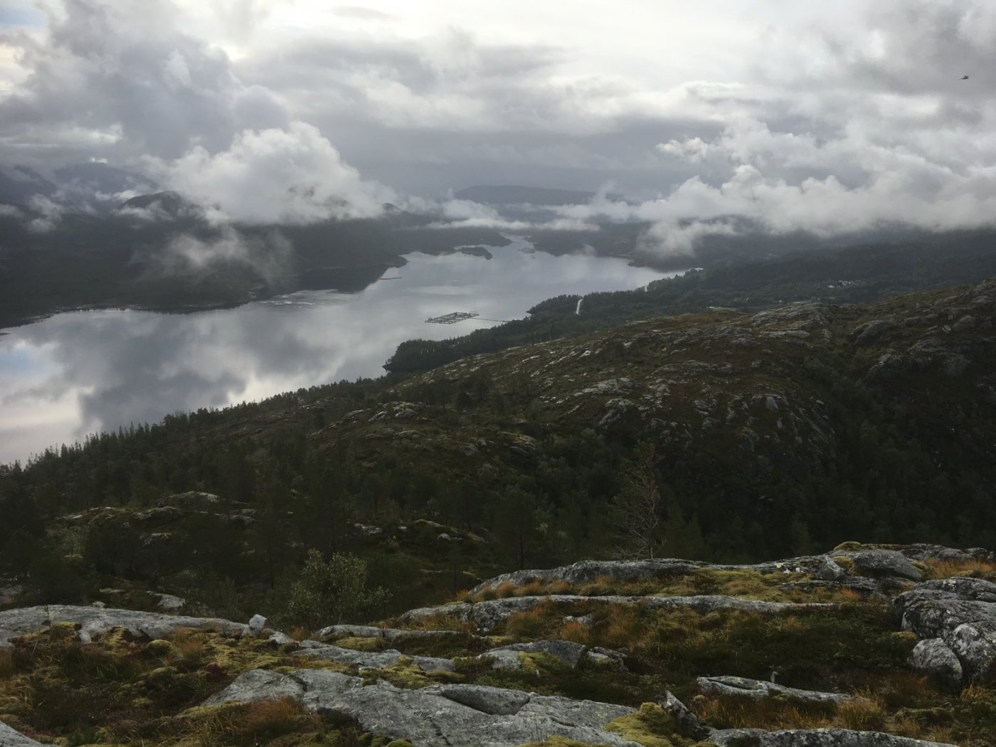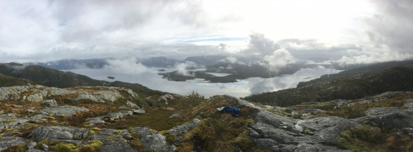 20. Sitter å ser bort på sømnas høyeste knaus (lysingen)på 648 fra Bjørufjellet - 307. Skulle egentlig dit men veien var stengt på grunn av asfaltarbeid . Så det ble Mardalsfjellet i stedet som er 435 og dette på 307. Det er mye igjen av dagen så peiler meg mot et par til. Går opp GPS spor.. Så ble det ett fjell til - Ramntinden Sømna 240 flotte meter opp. Regnet kommer hvert øyeblikk.