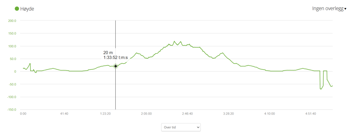 Jeg har finstudert en del på høydemåleren på Garmin Fenix 7- sett videoer etc, og blir fortsatt ikke helt klok på hvordan høydemåleren fungerer. Pr i dag har jeg den innstilt på automatisk. Rutinen er at jeg nå kalibrerer ved start av turen med GPS og sjekker at høyden ser fornuftig ut. For eksempel - denne 5 timers turen på ca 20 km. Det er tur retur samme vei - dvs egentlig skulle høyre og venstre side av midten være identisk. Startet i korrekt høyde (17 m), men etter som atmosfærisk trykk endret seg (tydeligvis) har hele kurven gått ned med en 70-80 meter! Samtidig har klokken målt på meteren hvor jeg har befunnet meg. Er det ikke mulig å få den GPS målte høyden som målt høyde hele tiden. -