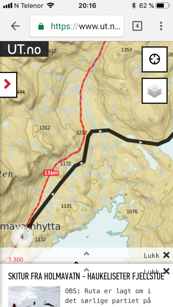 1. Jeg lurer på om "man" blir lurt litt på grunn av tekniske årsaker. Løypa er lagt om på grunn av skredfare og når jeg zoome inn på kartet på tlf er distanse 15 merket på sommerløypen.. I teksten er den 19