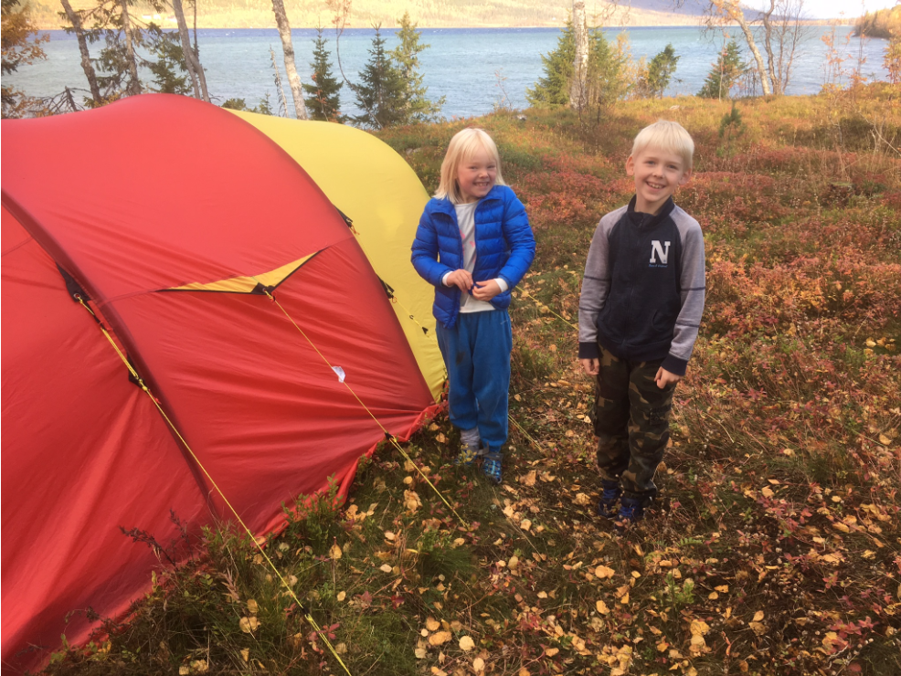 13. Fine dager her inne ved grensen til Børgefjell. Enormt med tyttebær. Vi plukket 16 liter på under en time.. Ungene hadde sin aller første teltnatt helt alene - noe vi er imponerte over. De hadde med seg en telefon og ringte inn 0640 når de våknet. I dag gikk turen til gapahuken ved Antons plass.. en forholdsvis vindstille plass i denne for tiden så vindfulle dalen. Det blæs fra alle kanter..
